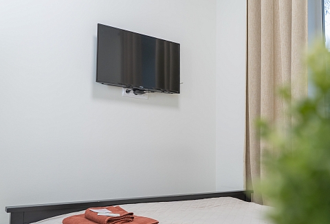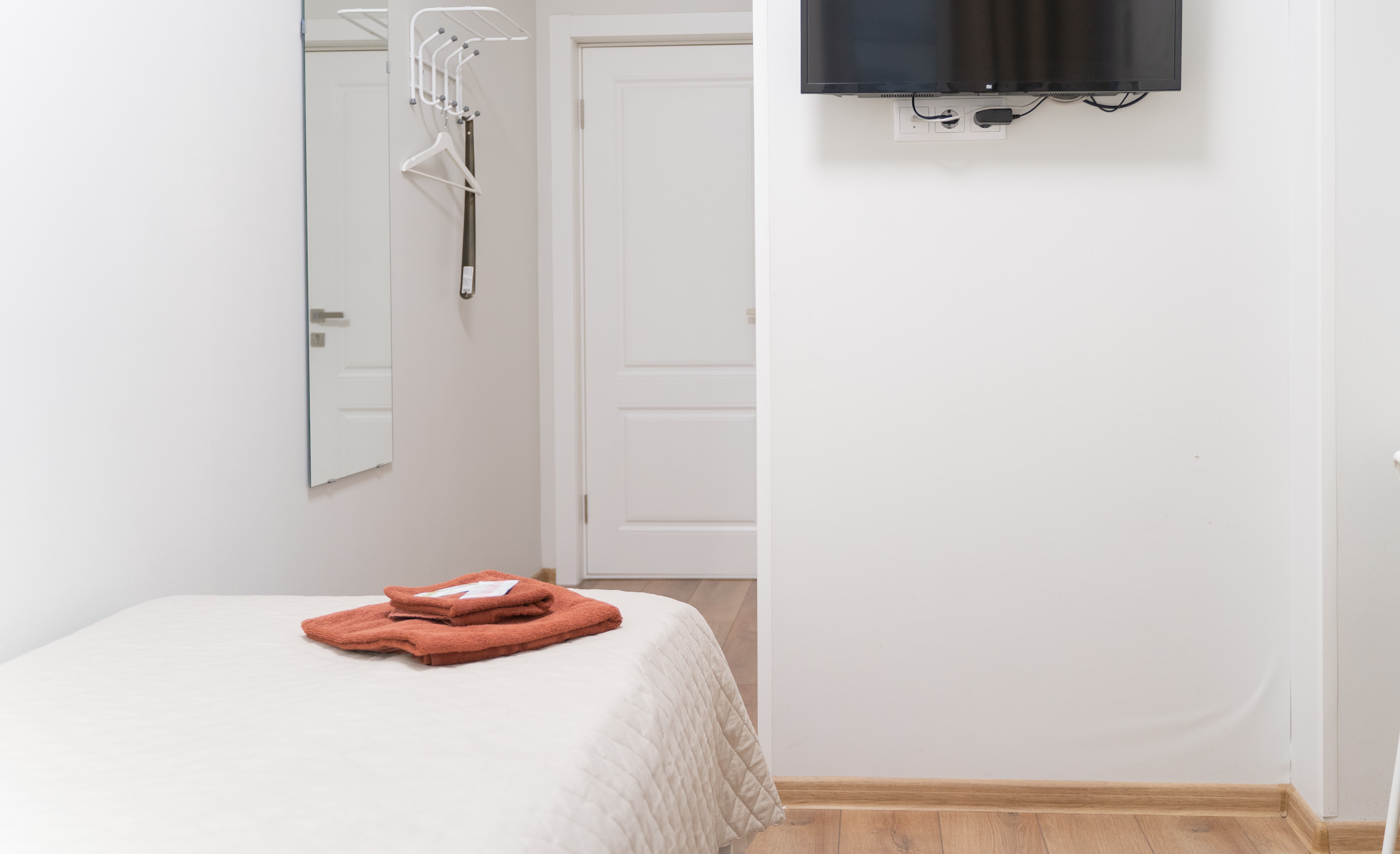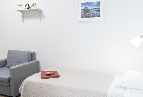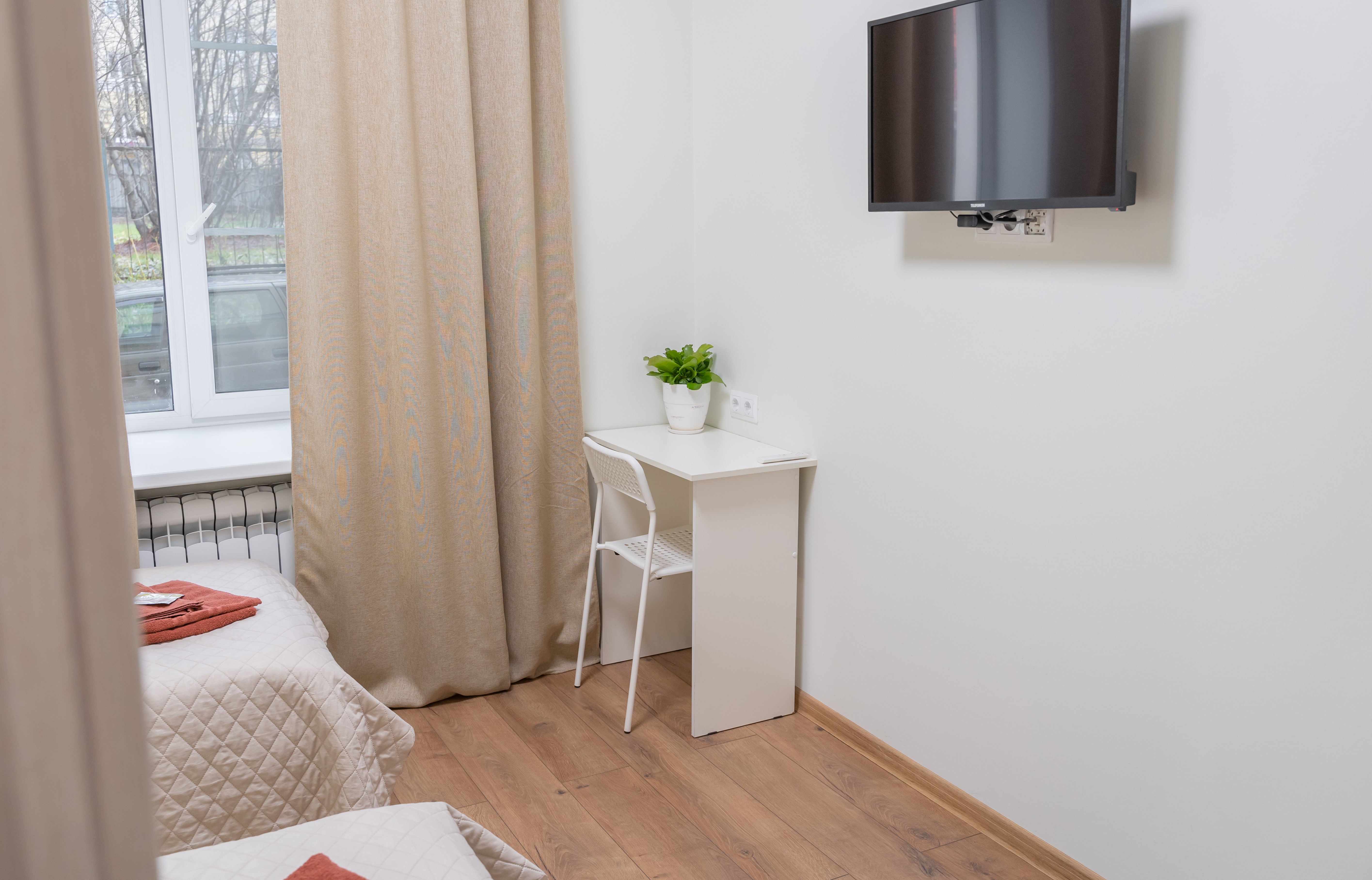 В номере: кресло-кровать, кровать односпальная, стол, стул, телевизор