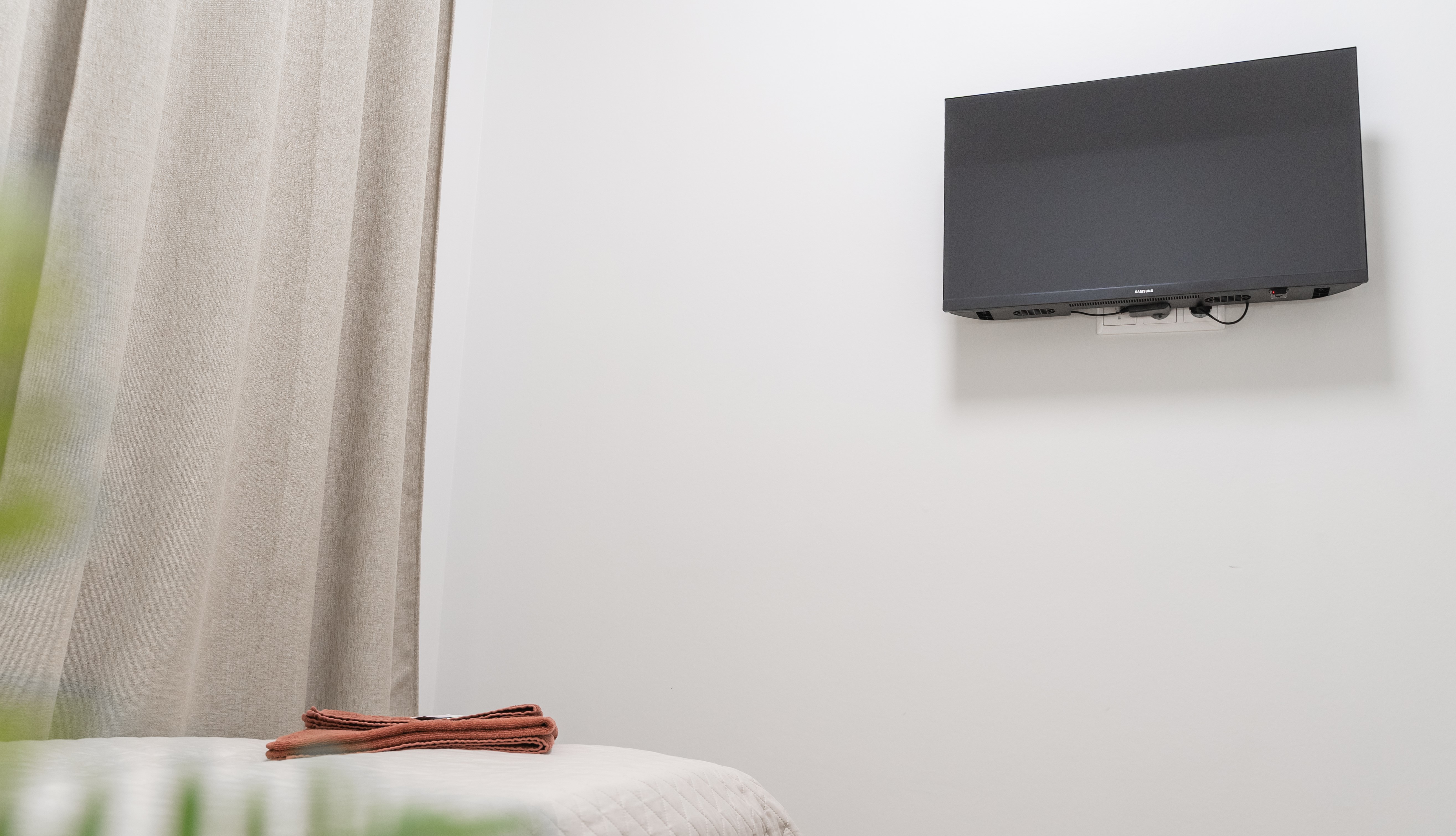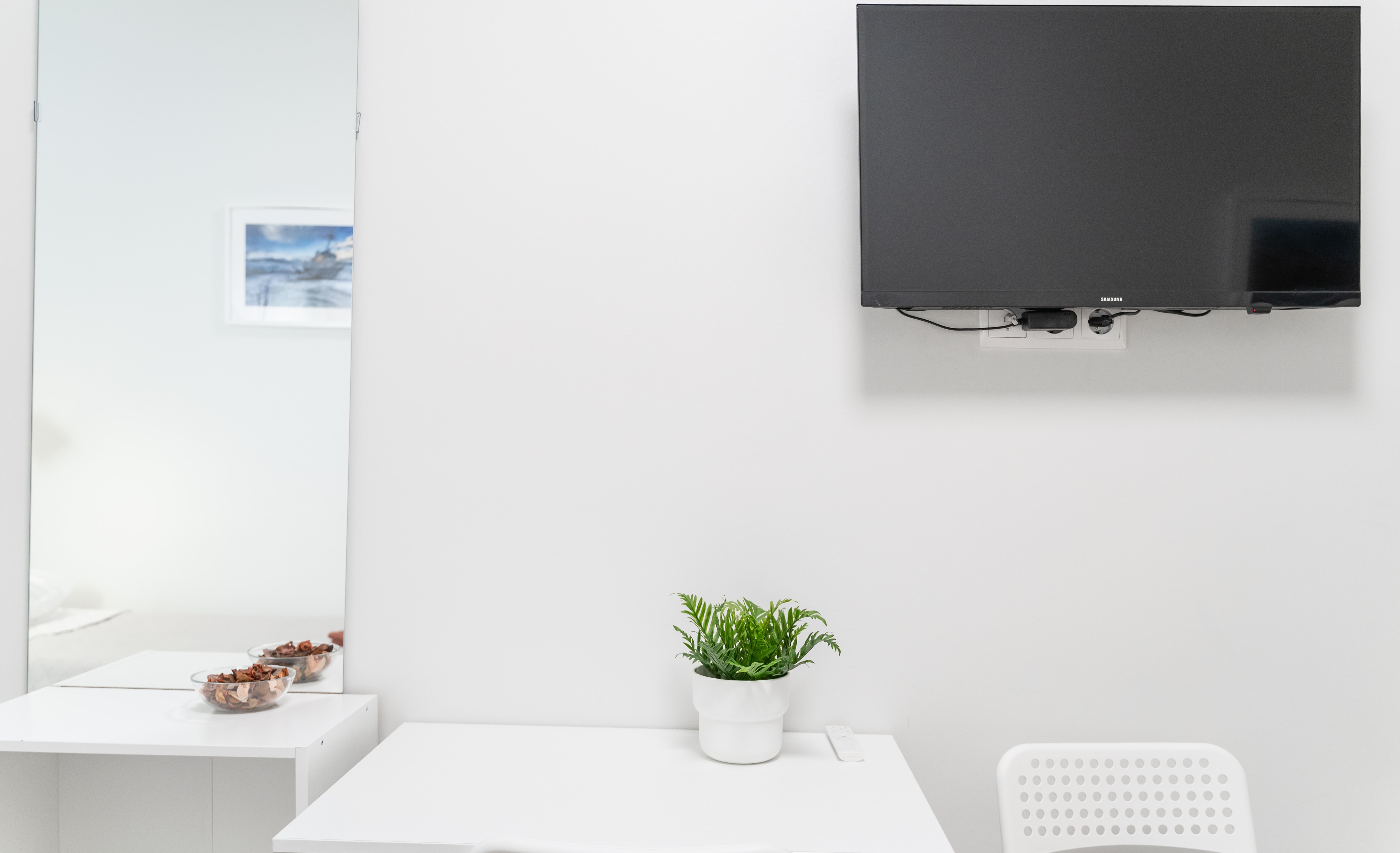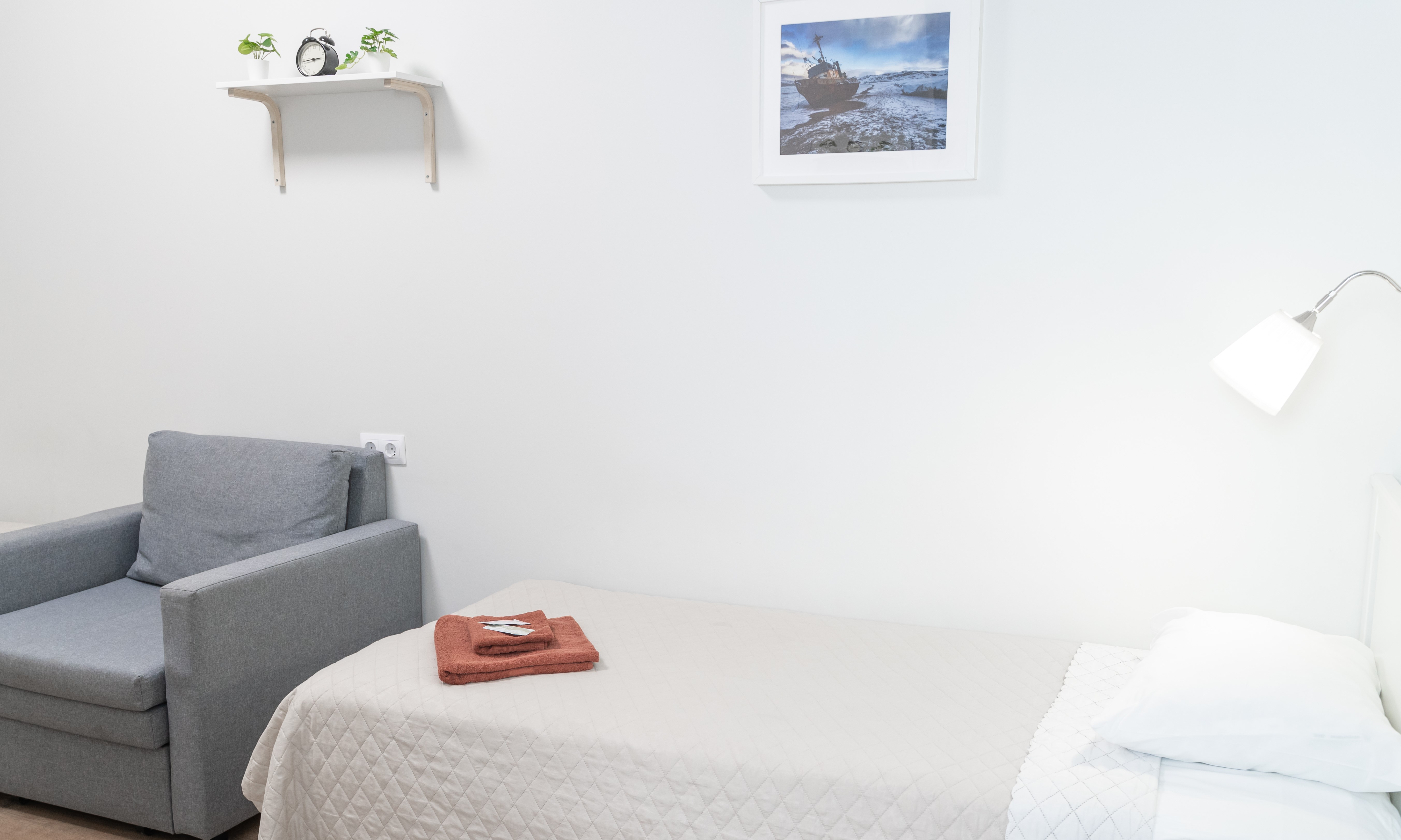 В номере: кресло-кровать, кровать односпальная, стол, стул, телевизор