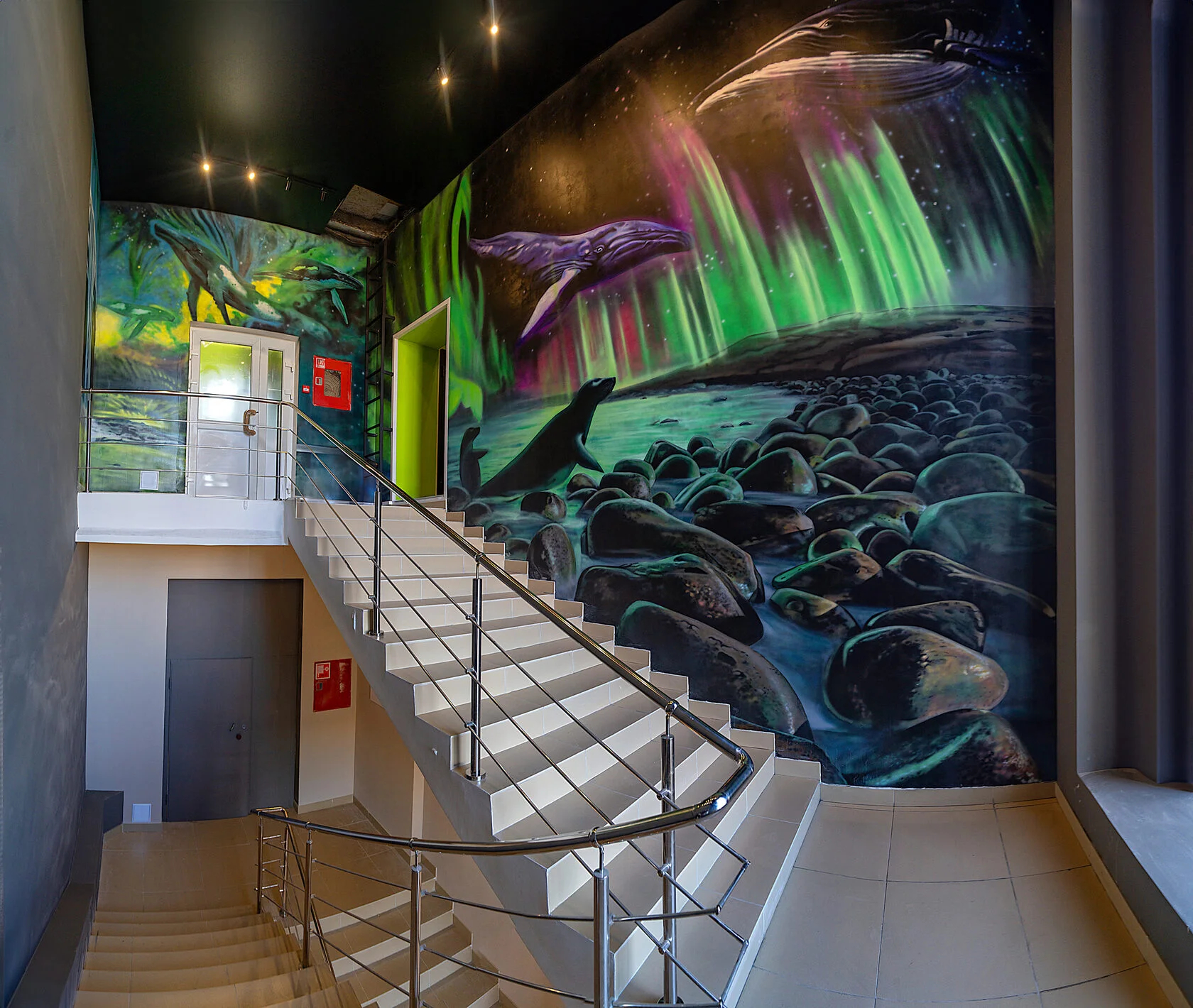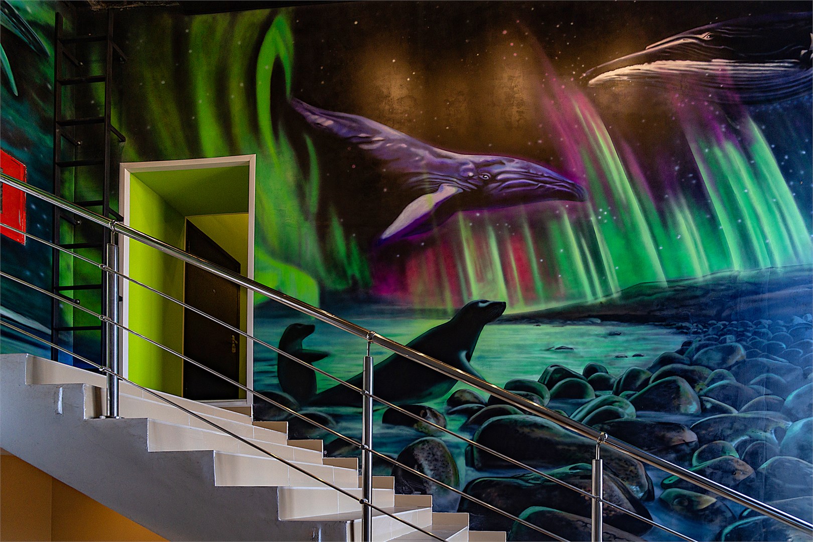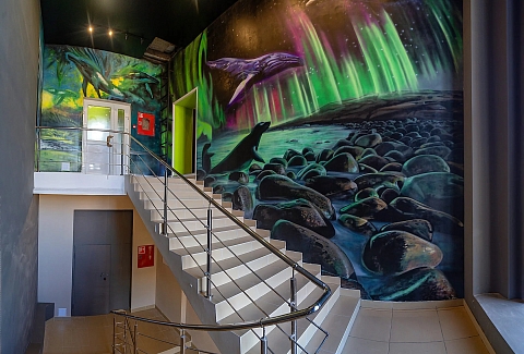 Каждый номер оснащён кроватями с ортопедическими матрасами телевизором, электрочайником, микроволновой печью, посудой на две персоны, небольшой кухонной зоной с раковиной, набором полотенец и постельным бельем.В пешей доступности расположены разнообразные магазины, банкоматы, аптеки. Всего в 5 минутах ходьбы находится торговый центр «Мурманск Молл», где можно интересно и с пользой провести время.