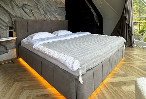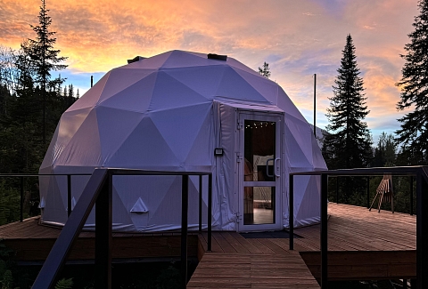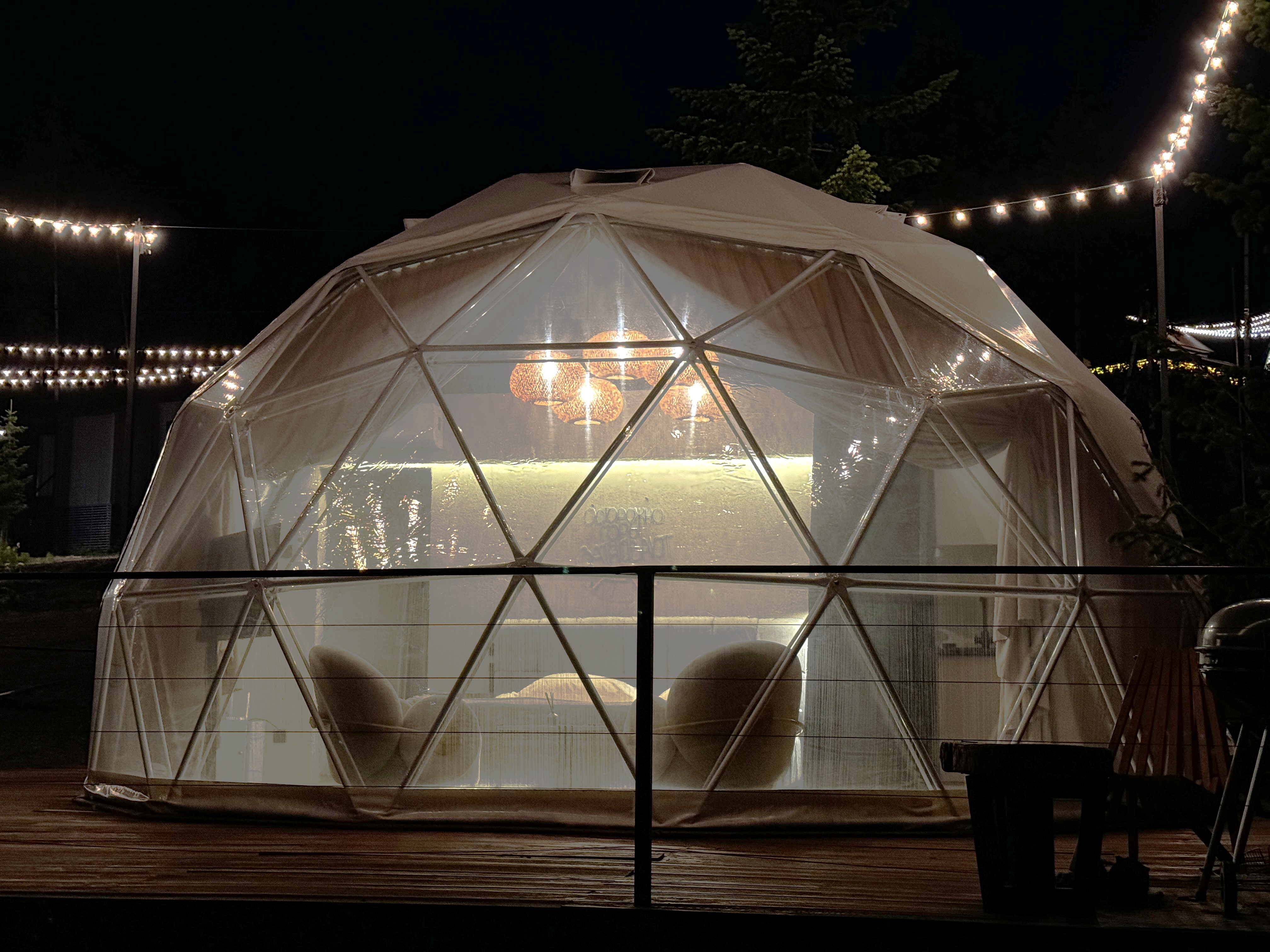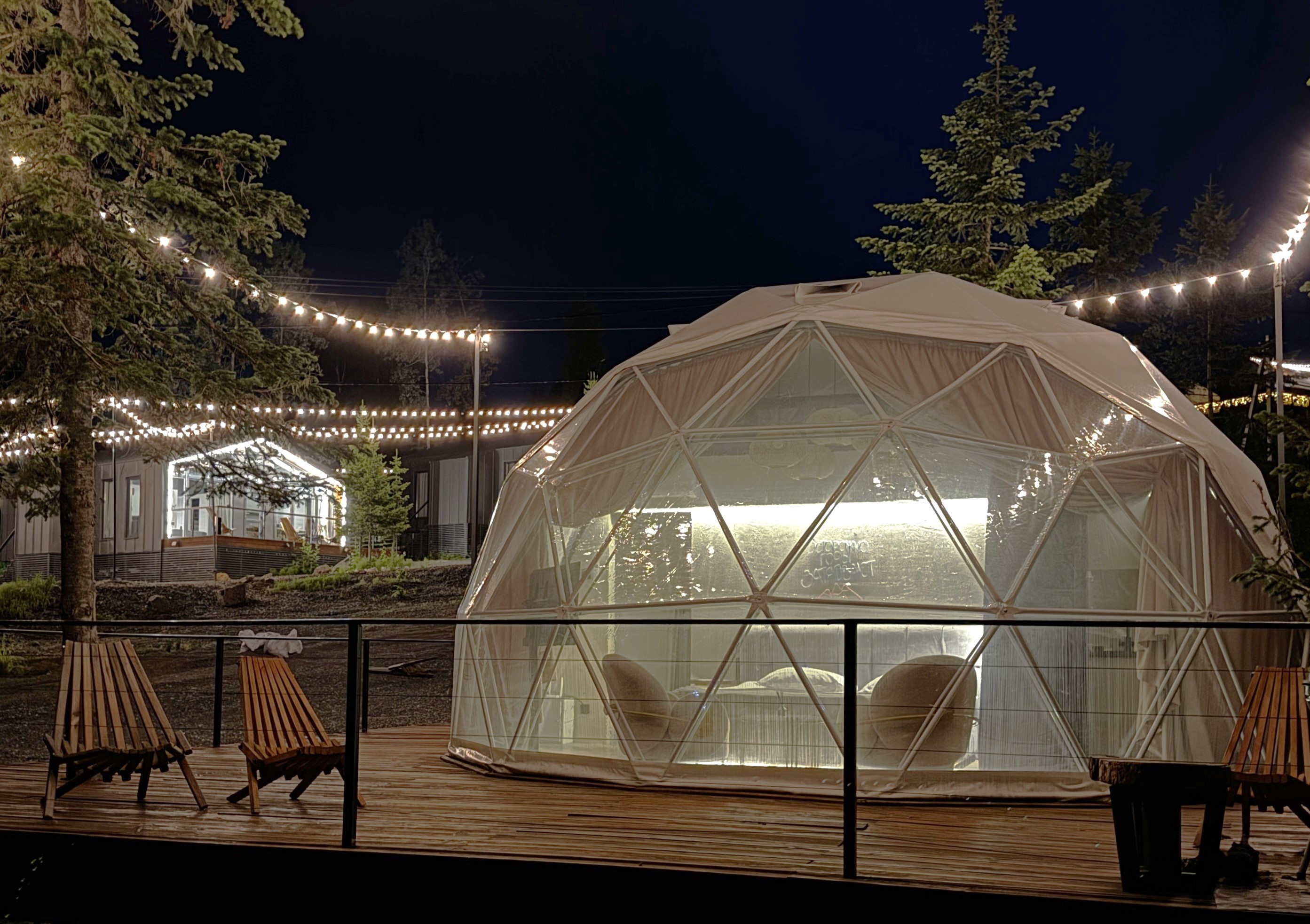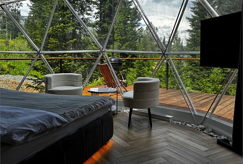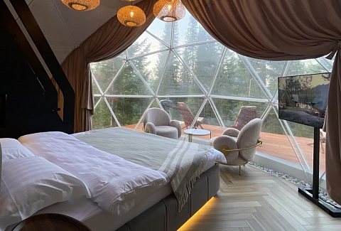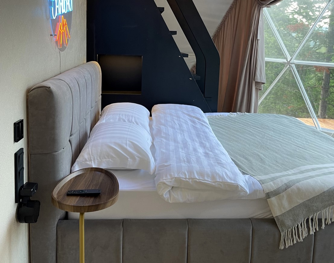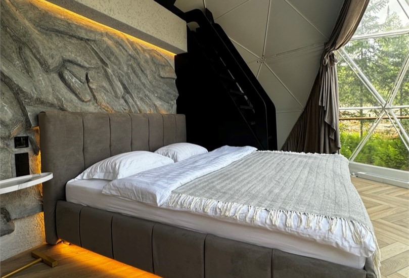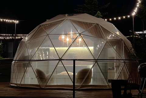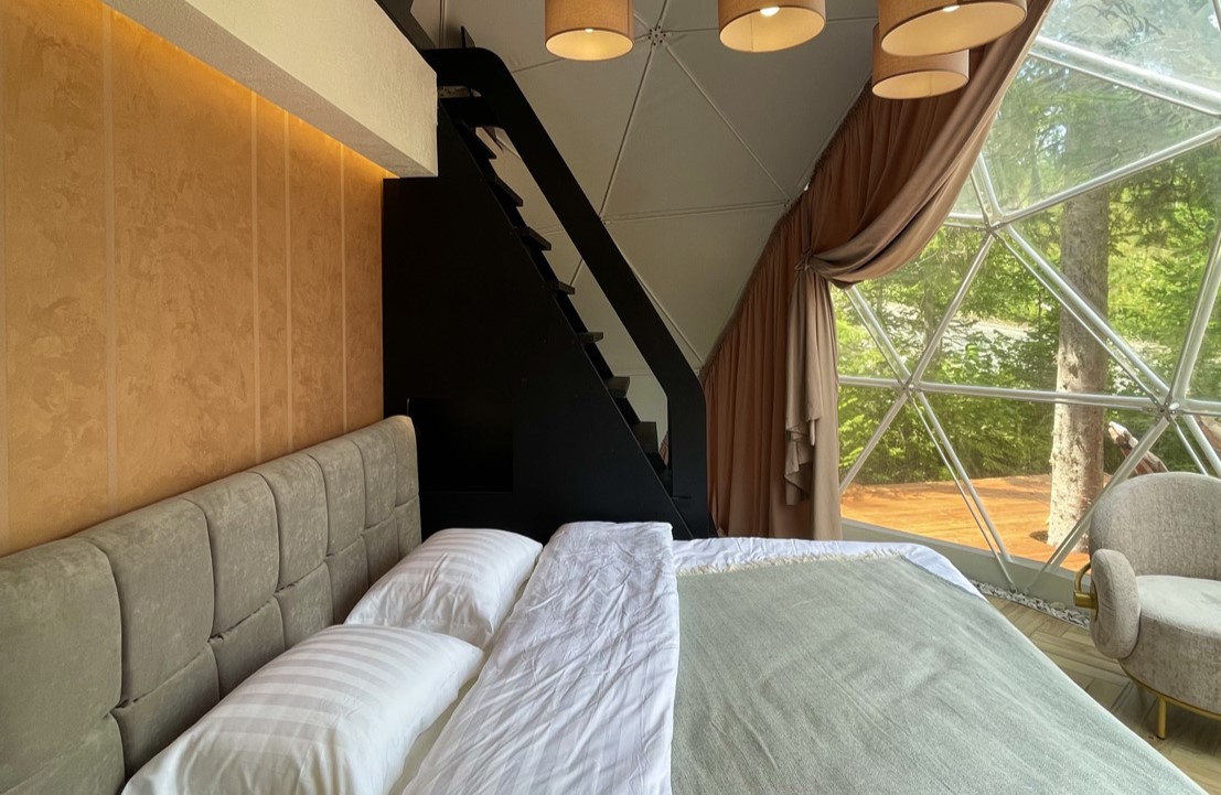 В самом поселке неплохо развита инфраструктура, работают продуктовые магазины, аптеки, кафе. Ближайший крупный город - Новокузнецк - в 2,5 часах пути, там же расположен железнодорожный вокзал и аэропорт. Отель представляет собой комплекс уютных купольных домов, расположенных в окружении природы. Каждая купольная сфера сочетает в себе современный стиль и природную эстетику, создавая гармоничное пространство для проживания. В домах предусмотрено все, что нужно для проживания – теплый пол, кондиционер, удобные двуспальные кровати на первом и втором ярусе, оборудованная мини-кухня с посудой, набором столовых принадлежностей, холодильником и плитой; персональные санузлы с душевыми кабинами, туалетными принадлежностями, фенами и пушистыми полотенцами. Для дополнительного удобства установлена Яндекс Станция и доступ к безлимитному wi-fi. Во всех домах - терраса с креслами и гриль-зоной. На территории работает открытый бассейн с подогревом. Для личного транспорта гостей предусмотрена парковка. Для отдыхающих с детьми до года по запросу в номер можно установить кроватку-манеж. Также в отеле будут рады гостям с воспитанными домашними питомцами мелких пород, их пребывание согласовывается заранее.