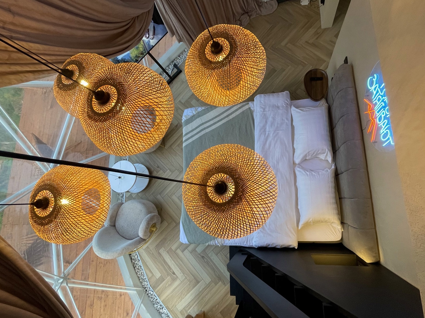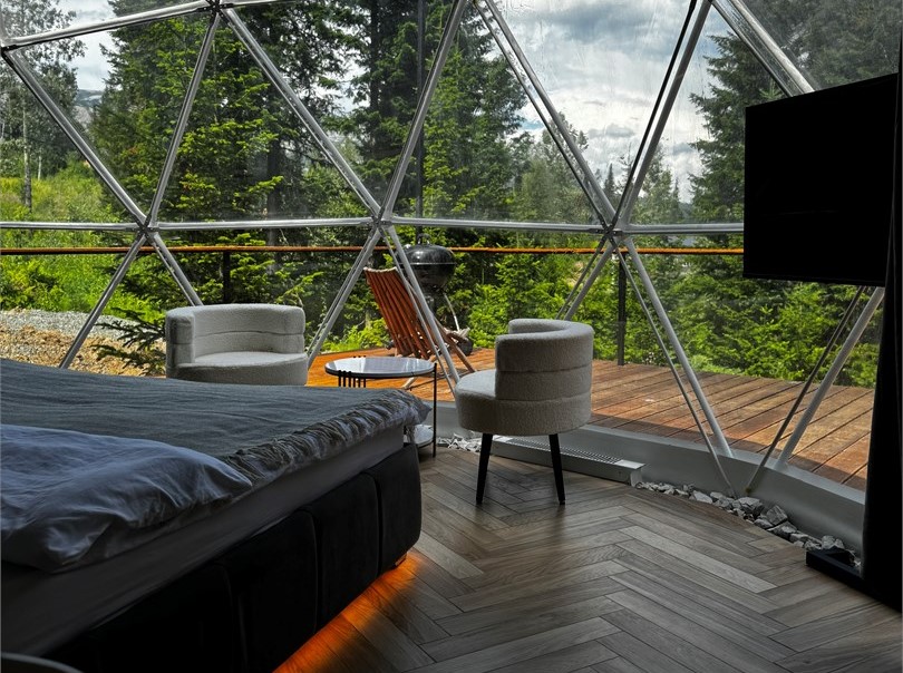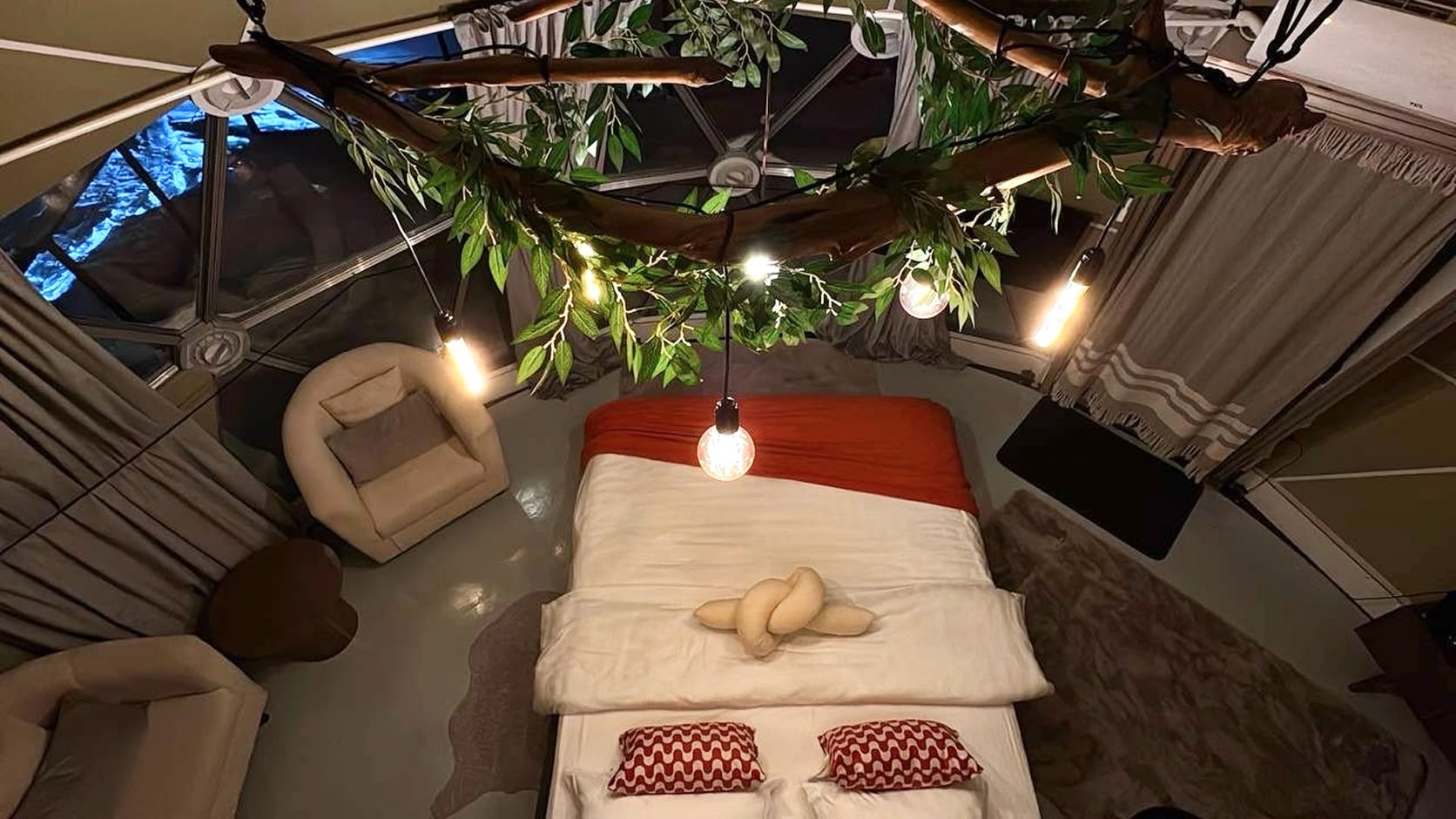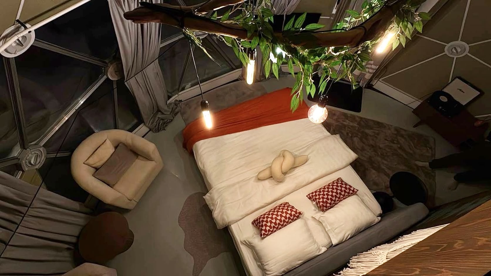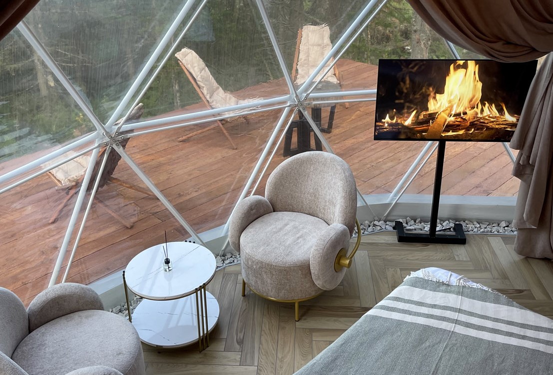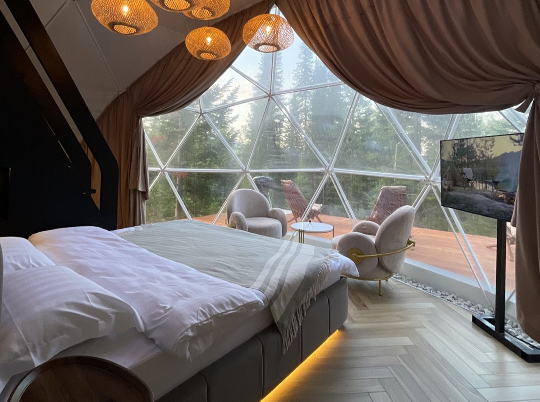 В самом поселке неплохо развита инфраструктура, работают продуктовые магазины, аптеки, кафе. Ближайший крупный город - Новокузнецк - в 2,5 часах пути, там же расположен железнодорожный вокзал и аэропорт. Отель представляет собой комплекс уютных купольных домов, расположенных в окружении природы. Каждая купольная сфера сочетает в себе современный стиль и природную эстетику, создавая гармоничное пространство для проживания. В домах предусмотрено все, что нужно для проживания – теплый пол, кондиционер, удобные двуспальные кровати на первом и втором ярусе, оборудованная мини-кухня с посудой, набором столовых принадлежностей, холодильником и плитой; персональные санузлы с душевыми кабинами, туалетными принадлежностями, фенами и пушистыми полотенцами. Для дополнительного удобства установлена Яндекс Станция и доступ к безлимитному wi-fi. Во всех домах - терраса с креслами и гриль-зоной. На территории работает открытый бассейн с подогревом. Для личного транспорта гостей предусмотрена парковка. Для отдыхающих с детьми до года по запросу в номер можно установить кроватку-манеж. Также в отеле будут рады гостям с воспитанными домашними питомцами мелких пород, их пребывание согласовывается заранее.