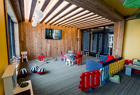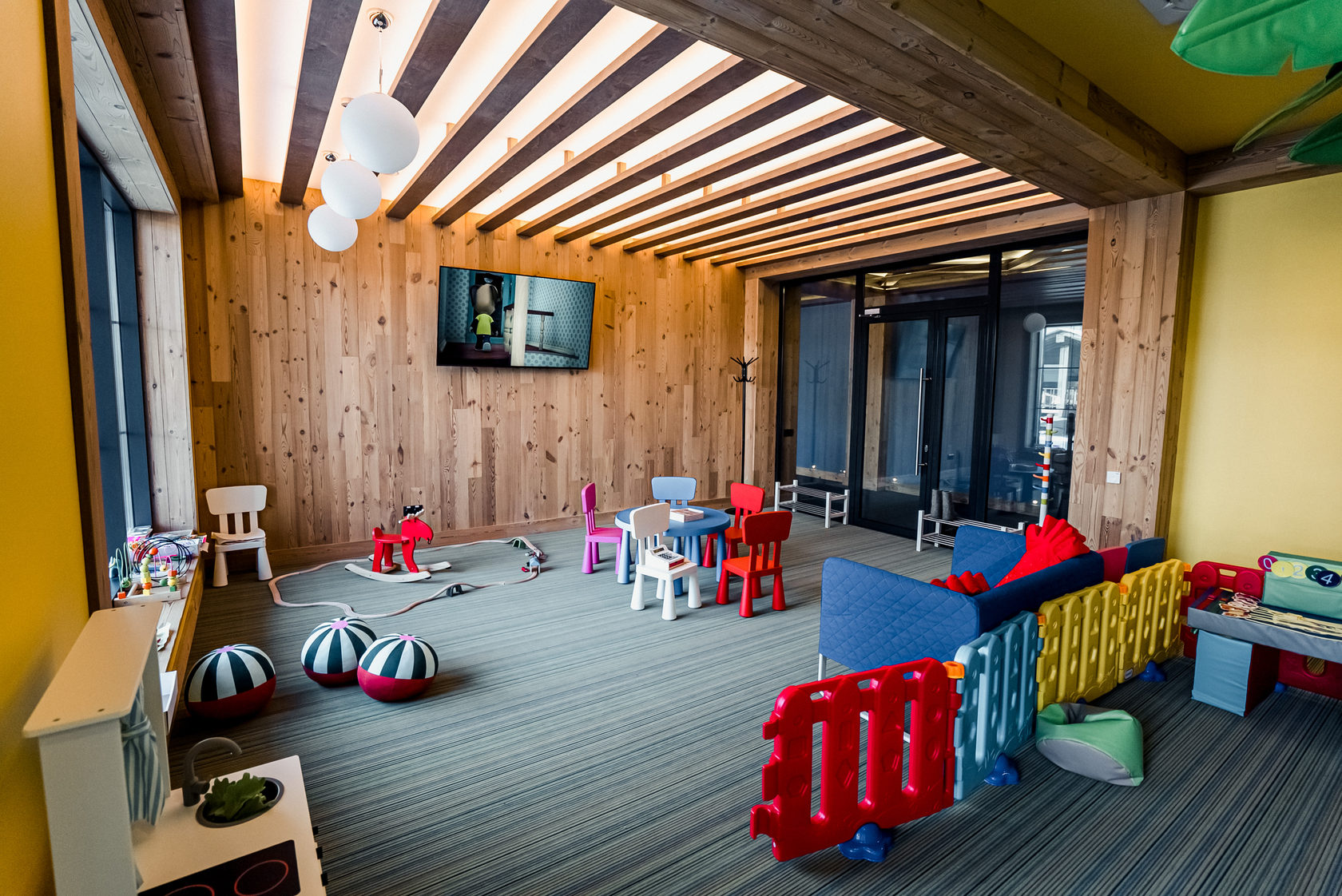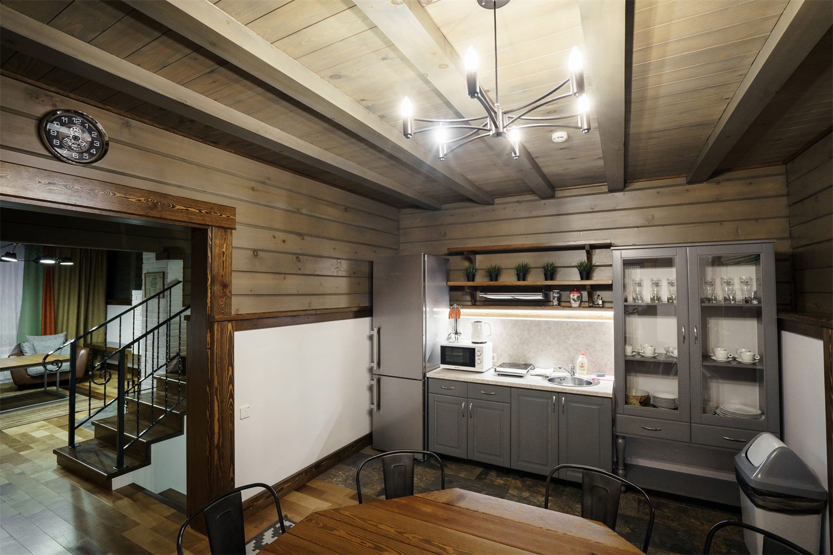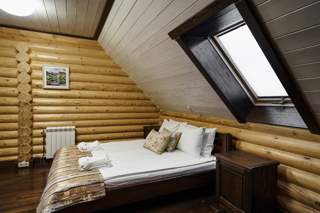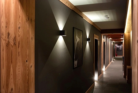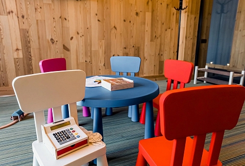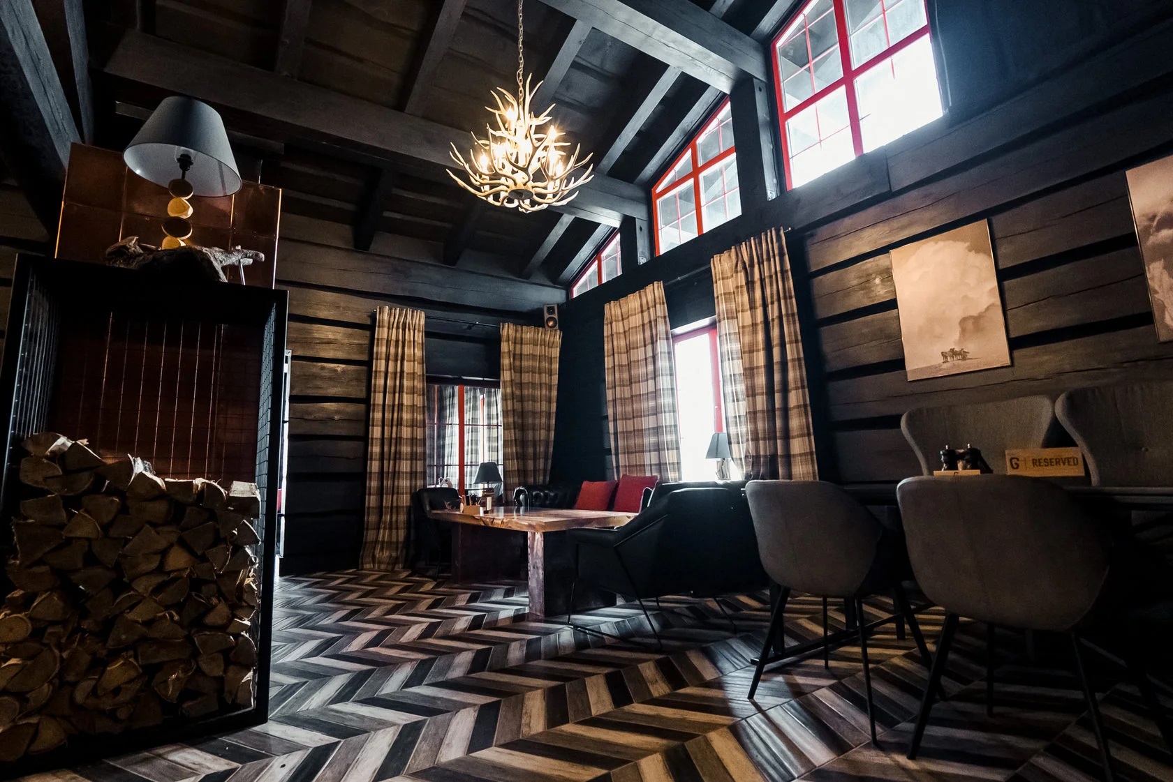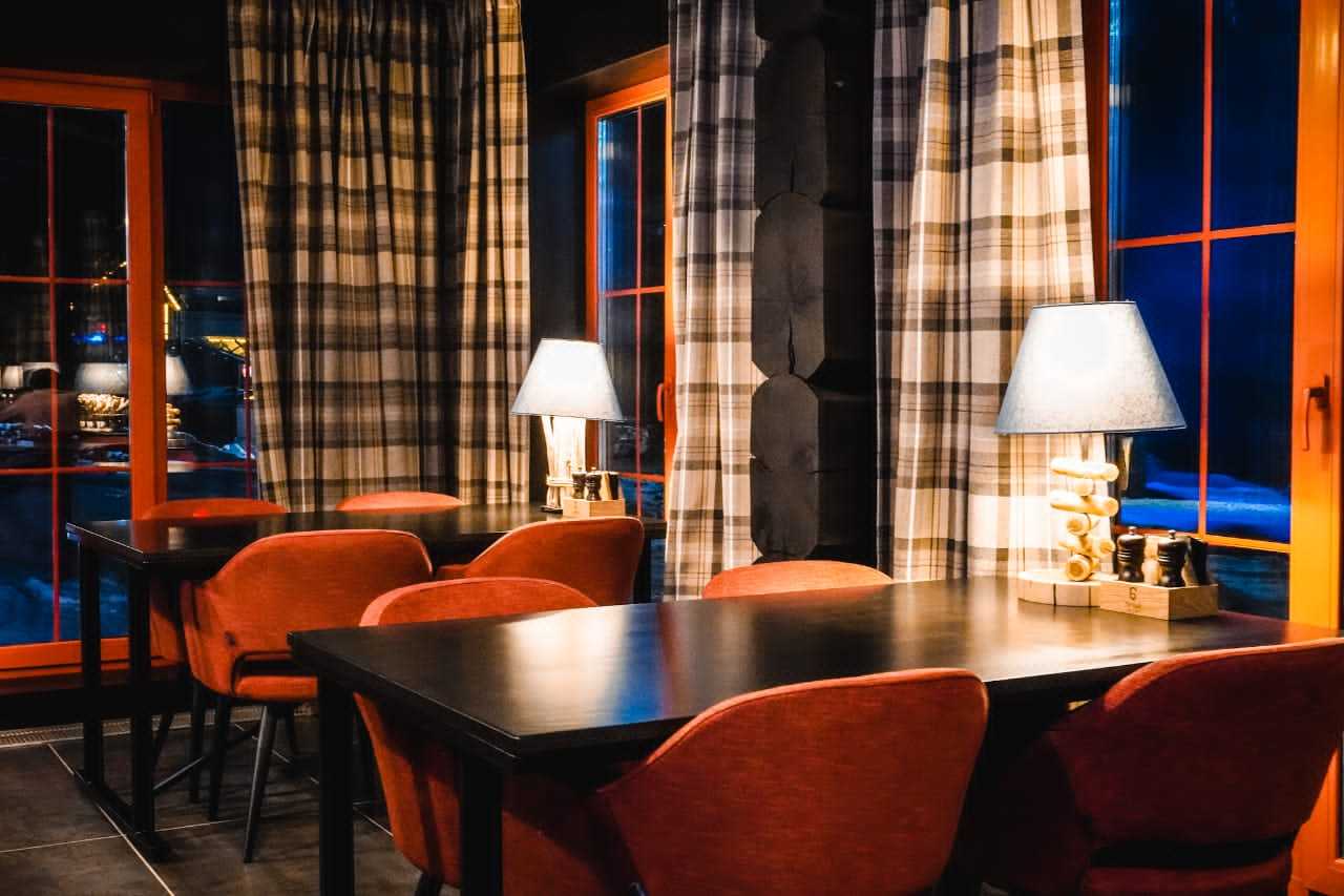 В поселке работают несколько кафе, баров и магазинов. Отельный комплекс состоит из 3 корпусов – 5, 3 и 2 этажа соответственно. В первом основном корпусе находится ресепшен, ресторан и пивоварня, караоке-бар, детская комната кинотеатр и скалодром. В 3 минутах ходьбы от основного корпуса расположен корпус №2. Здесь находится парковка для снегоходов и теплый переход в отель из парковки. Также рядом с первым корпусом стоит корпус №3 из деревянного бруса – более экономичный вариант размещения. Номерной фонд отеля представлен несколькими категориями комфортности, в дизайне которых использованы современные интерьерные решения. Каждый номер оборудован ванной комнатой, удобной мебелью, ТВ, холодильником. Также на территории есть два коттеджа шале, оснащенные кухонными зонами и удобные для размещения компаниями. В числе услуг на территории отеля – баня на дровах, работает круглосуточно. Также круглосуточно работает прачечная самообслуживания. На всей территории отеля и в номерах доступен беспроводной интернет Wi-Fi.