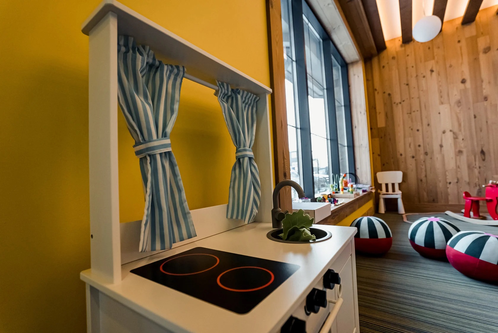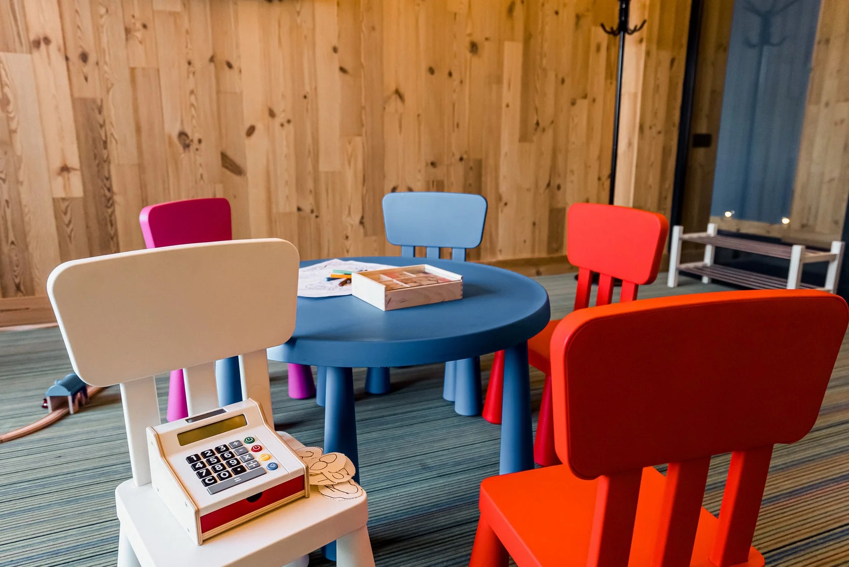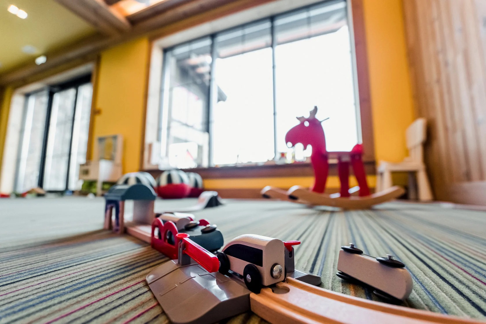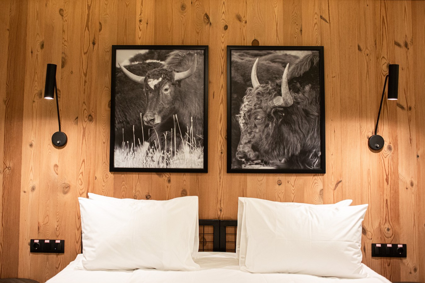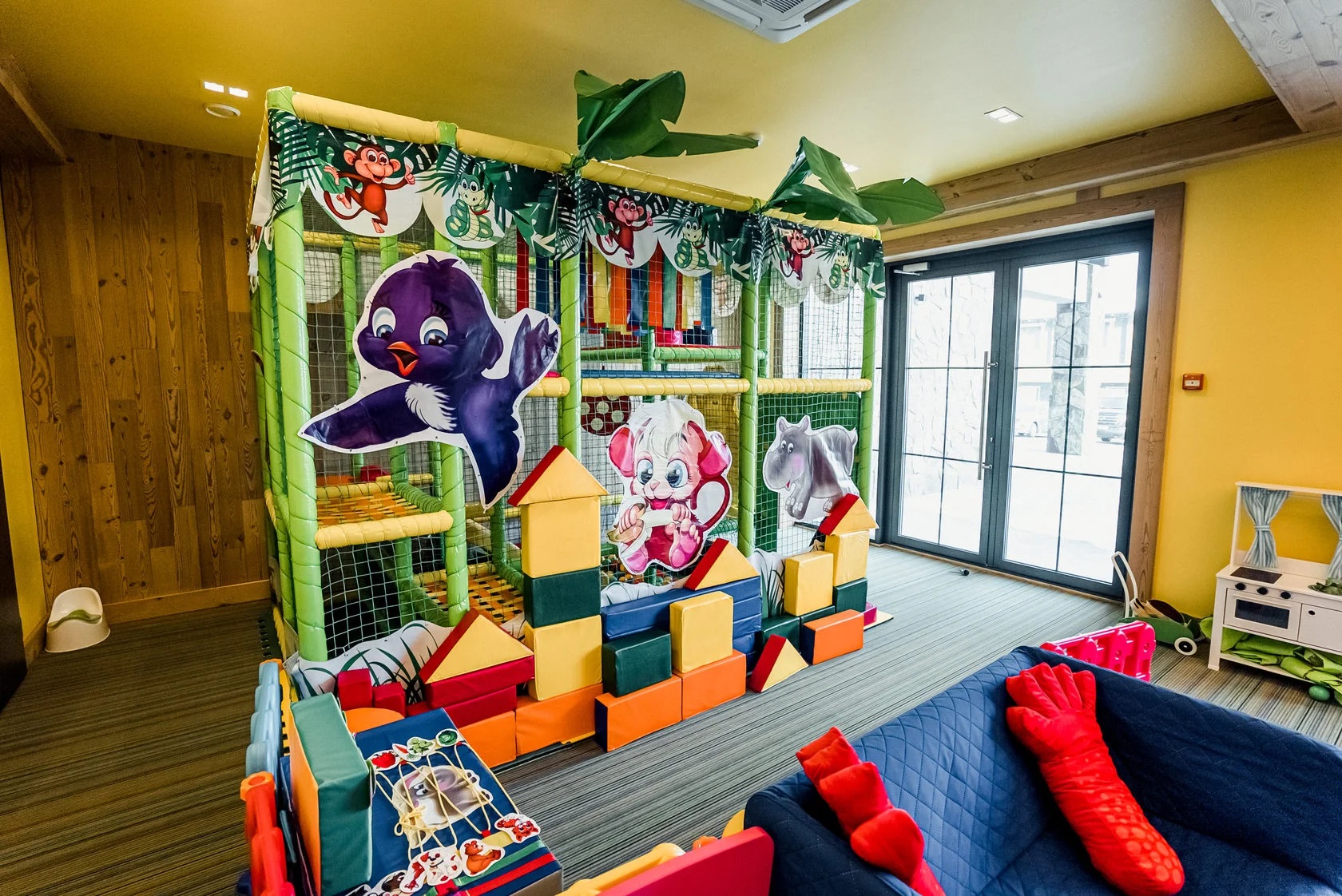 В поселке работают несколько кафе, баров и магазинов. Отельный комплекс состоит из 3 корпусов – 5, 3 и 2 этажа соответственно. В первом основном корпусе находится ресепшен, ресторан и пивоварня, караоке-бар, детская комната кинотеатр и скалодром. В 3 минутах ходьбы от основного корпуса расположен корпус №2. Здесь находится парковка для снегоходов и теплый переход в отель из парковки. Также рядом с первым корпусом стоит корпус №3 из деревянного бруса – более экономичный вариант размещения. Номерной фонд отеля представлен несколькими категориями комфортности, в дизайне которых использованы современные интерьерные решения. Каждый номер оборудован ванной комнатой, удобной мебелью, ТВ, холодильником. Также на территории есть два коттеджа шале, оснащенные кухонными зонами и удобные для размещения компаниями. В числе услуг на территории отеля – баня на дровах, работает круглосуточно. Также круглосуточно работает прачечная самообслуживания. На всей территории отеля и в номерах доступен беспроводной интернет Wi-Fi.