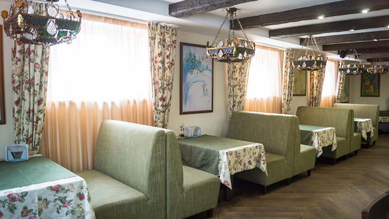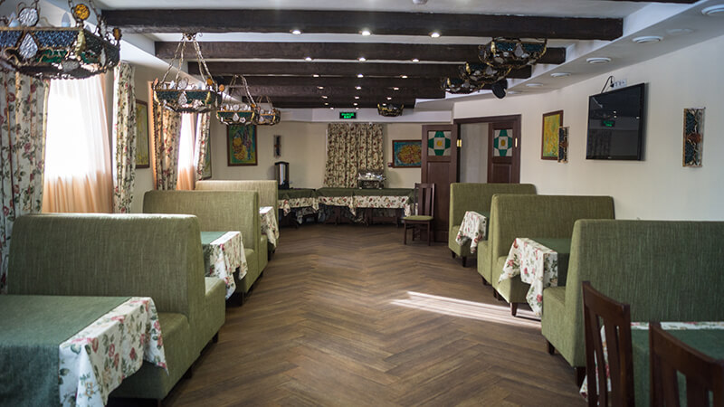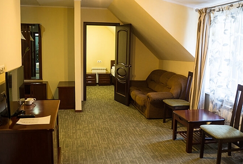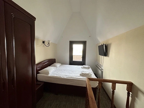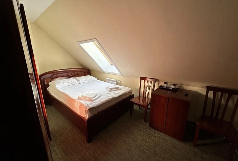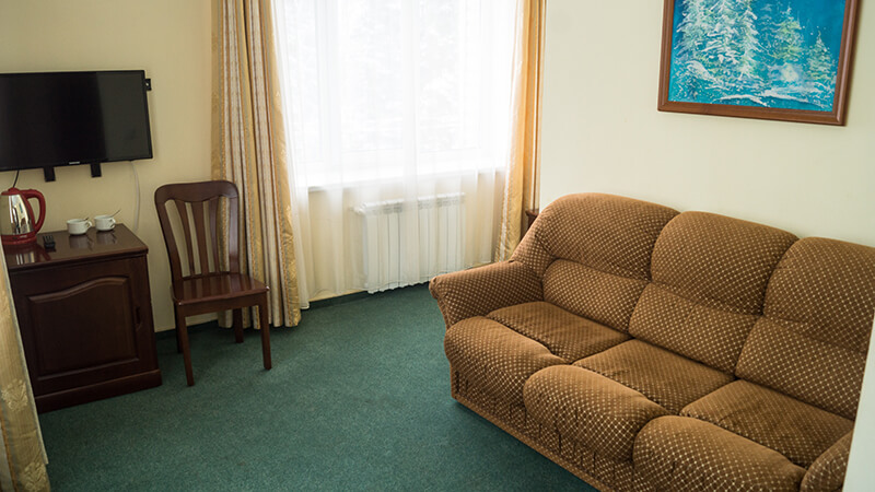 Жилой фонд, рассчитанный на 60 человек, предлагает гостям 28 номеров разной категории комфорта. В каждом номере независимо от уровня имеется индивидуальный санузел с душем, необходимая мебель, телевизор.На цокольном этаже работает небольшой ресторан с хорошим выбором блюд европейской кухни. При желании отдыхающие могут арендовать мангал и решетки для барбекю. Для гостей на машинах предусмотрена охраняемая парковка, а детям предоставляются кроватки-манежи и стульчики для кормления.Для гостей отеля предусмотрен удобный трансфер до подъемников и обратно - незаменимый плюс для спортсменов и любителей горнолыжного спорта. Также действует специальная скидка на прокат снаряжения и ski-pass.