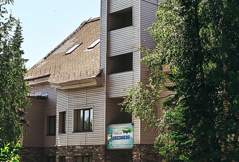 Greenberg hotel разместился на территории популярного горнолыжного курорта Шерегеш, расположенного в Кемеровской области в 160 километрах от железнодорожного вокзала Новокузнецка. На курорте хорошо развита инфраструктура — работают кафе, рестораны, магазины. В 10 минутах ходьбы от отеля находится канатная дорога Sky Way с посадочной станцией, до центра горнолыжного комплекса около километра.Трехэтажный корпус отеля с мансардным этажом находится между поселком и подножием горы Зеленая.