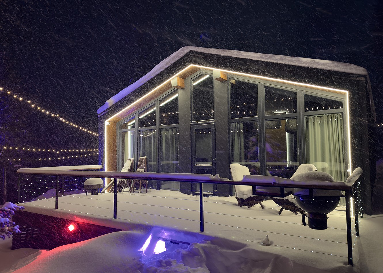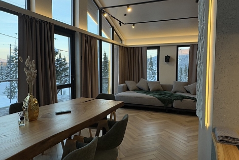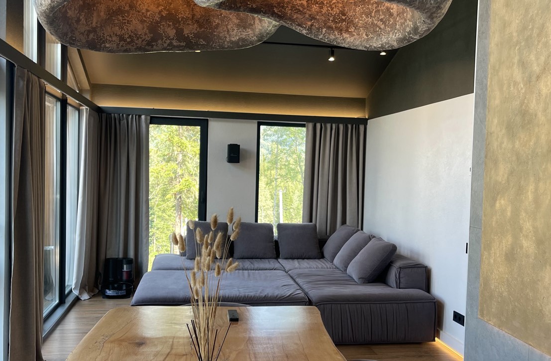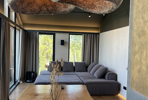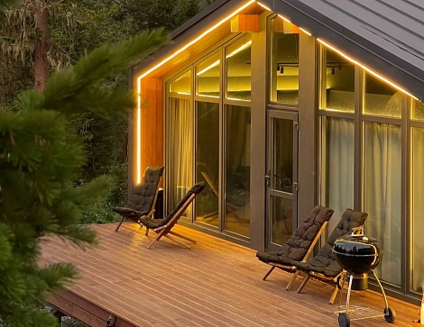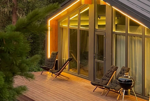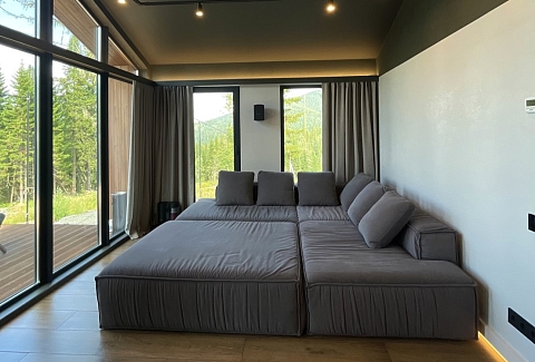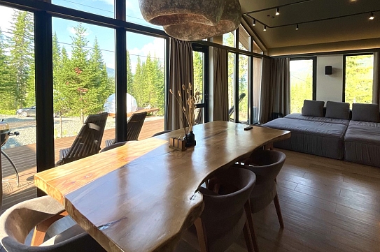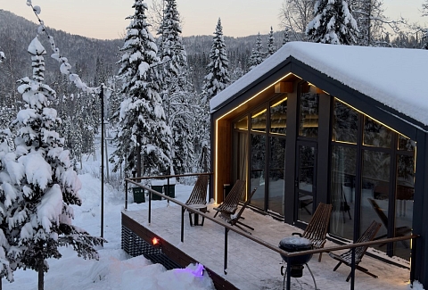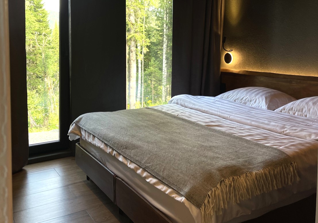 Гостевой дом предлагает комфортабельный отдых в уютных и стильных домах барнхаусах премиум-класса. Дома выполнены в скандинавском стиле с панорамными окнами, из которых открываются живописные виды на лес и горы. В домах предусмотрено все, что нужно для проживания – теплые полы, кондиционеры, удобные кровати и диваны, оборудованная кухня с посудой, набором столовых принадлежностей и бытовой техникой; персональные санузлы с душевыми кабинами, туалетными принадлежностями, фенами и пушистыми полотенцами. Для дополнительного удобства установлена Яндекс Станция и доступ к безлимитному wi-fi. В домах Gold и Silvеr – собственная терраса с шезлонгами и грилем, уголь и розжиг для которого предоставляются. В гостевом доме имеется просторная парковочная зона для автомобилей гостей. Для отдыхающих с детьми по запросу в номер можно установить кроватку-манеж. Также в гостевом доме будут рады гостям с питомцами, их пребывание согласовывается заранее.