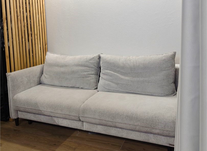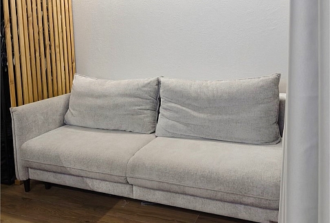 В номере: диван раскладной, кровать двуспальная, кухонная мебель, стол, стулья, шкаф, гладильная доска, кондиционер, кофемашина, микроволновая печь, набор посуды, плита электрическая, стиральная машина, телевизор, теплый пол, умная колонка, утюг, холодильник, электрочайник