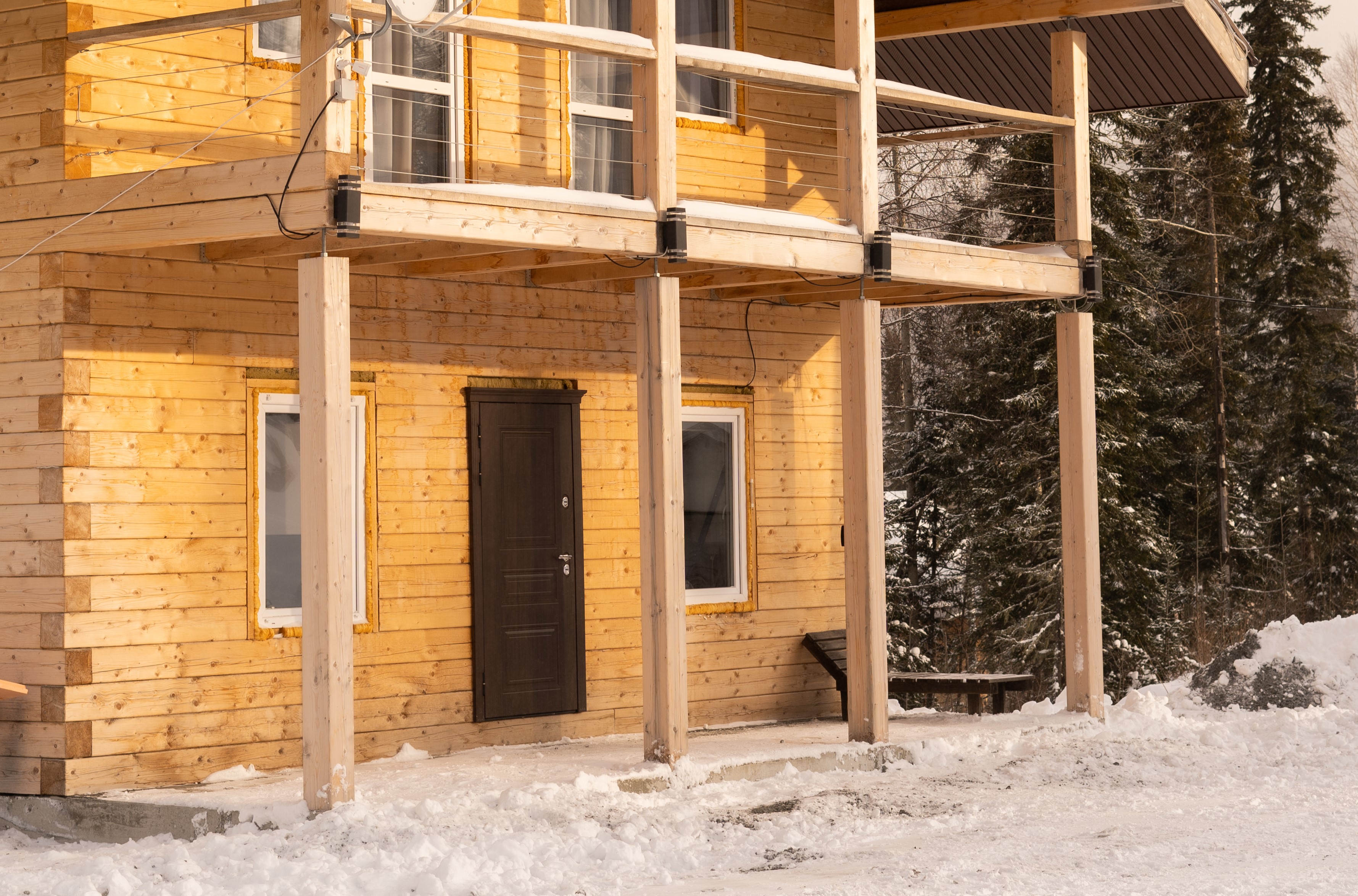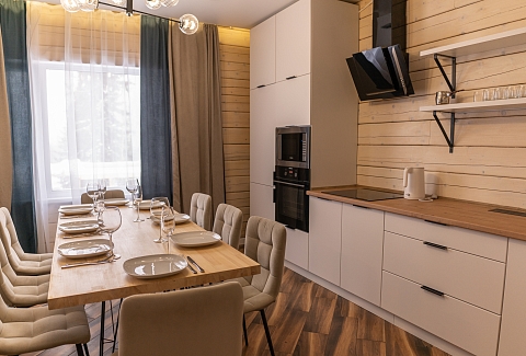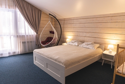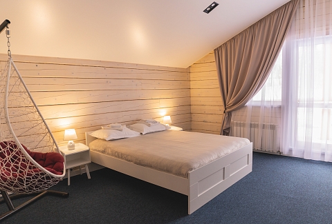 А дорога до Новокузнецка, аэропорта и железнодорожного вокзала займет в среднем около 2 часов. Деревянный двухэтажный гостевой дом выстроен в эко-стиле. В коттедже – 5 отдельных спален, гостиная с камином, помещение для хранения спортивного инвентаря, полноценная оборудованная кухня. Последняя оснащена всем необходимым: есть варочная панель, посудомоечная машина, холодильник, электрочайник, микроволновая печь, а также посуда и прочая кухонная утварь. В доме два санузла, в одном – душевая кабина, во втором установлена ванна. Среди прочих удобств – стиральная машина и безлимитный интернет. На территории гостевого дома организована барбекю зона с мангалом и беседкой. В летнее время устанавливается открытый бассейн с зоной отдыха и лежаками по периметру. А для автовладельцев предусмотрены парковочные места.