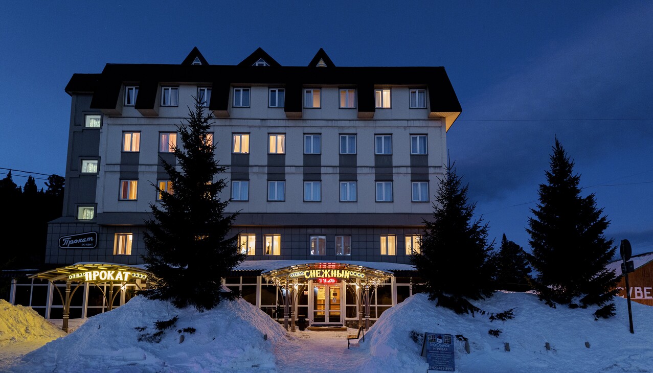 Четырехзвездочный отель «Снежный» расположен на популярном сибирском курорте Шерегеш у подножия горы Зеленой, в шаговой доступности от склонов и горнолыжных подъемников – Спортотель и Шория-тур. Работающий сезонно отель хорошо подходит любителям активного отдыха, как компаниям друзей и парам, так и семьям с детьми. Пятиэтажное здание отеля возвышается в северной части поселка на подъезде к горе.