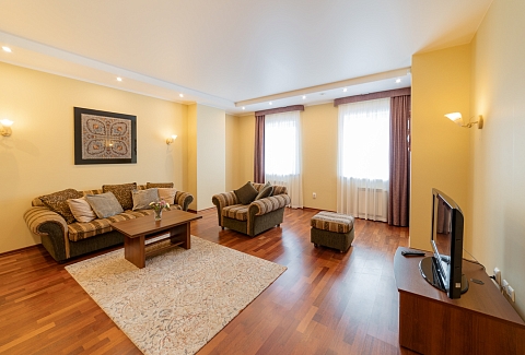 В номере: диван раскладной, кресло, кровати полутороспальные, кровать двуспальная, прикроватные тумбочки, стол, столик журнальный, стул, шкаф, сейф, телевизор, холодильник