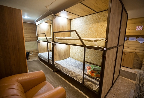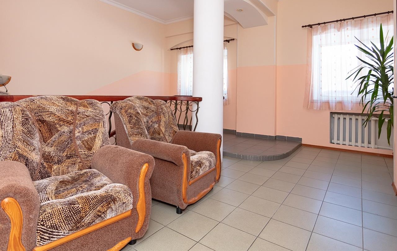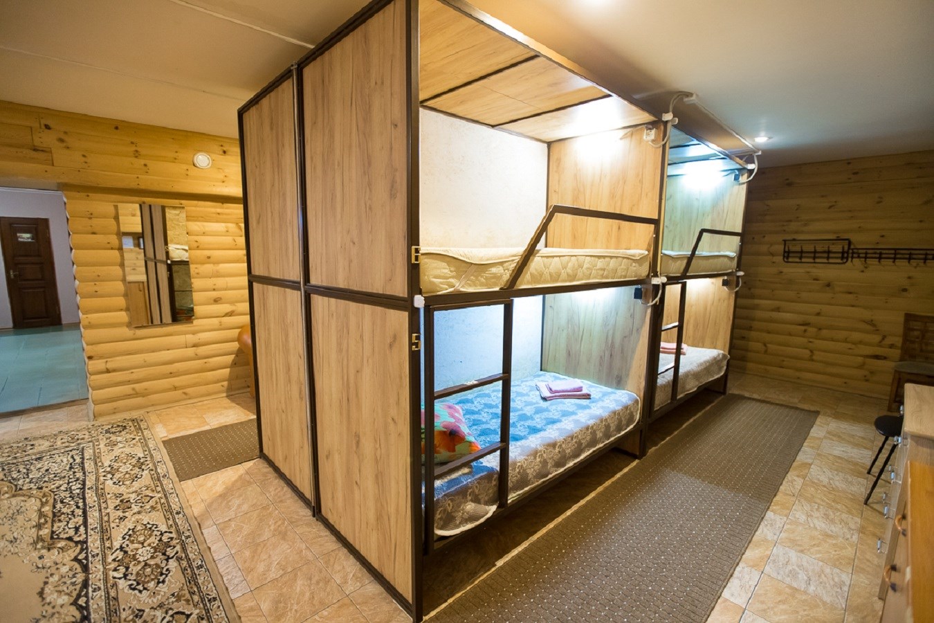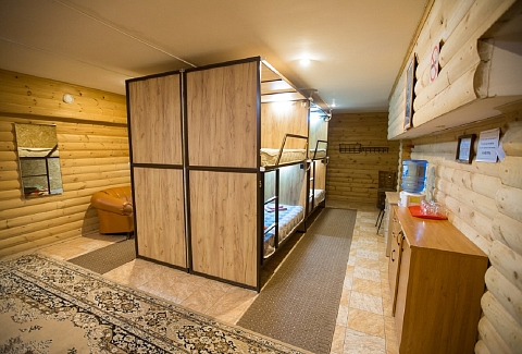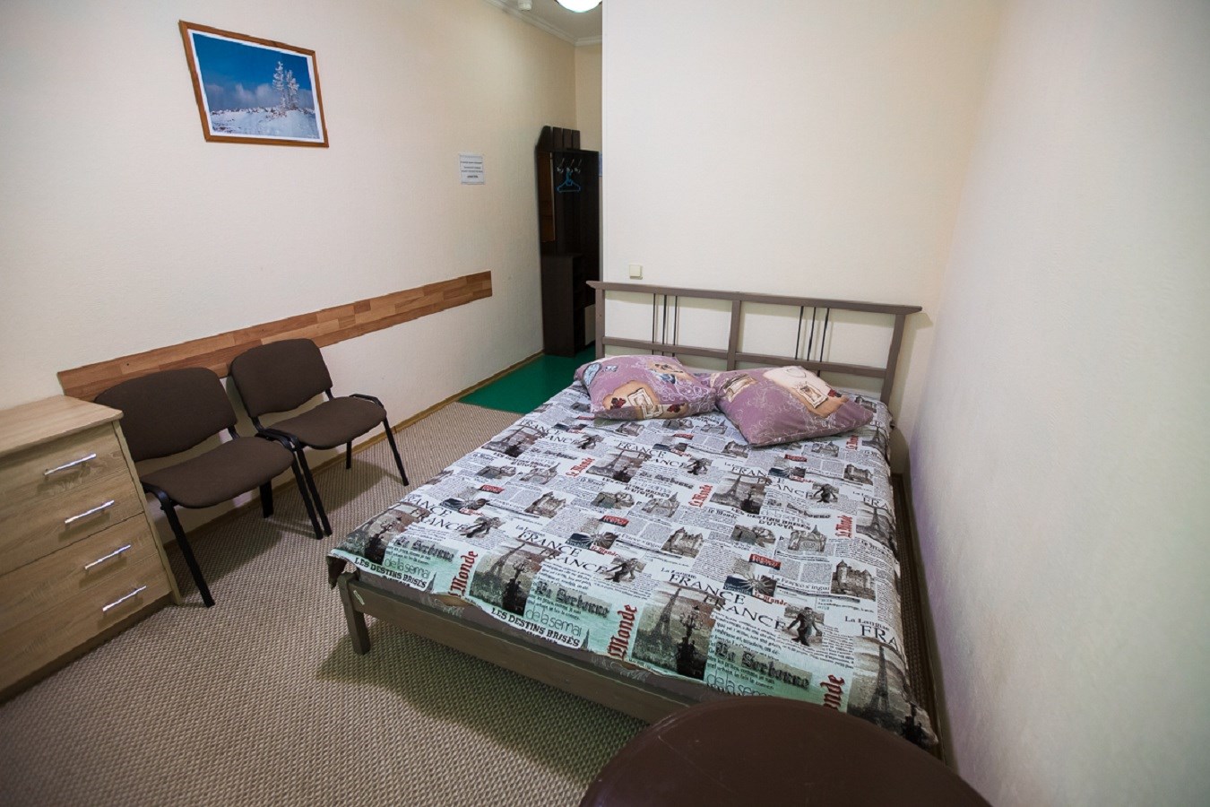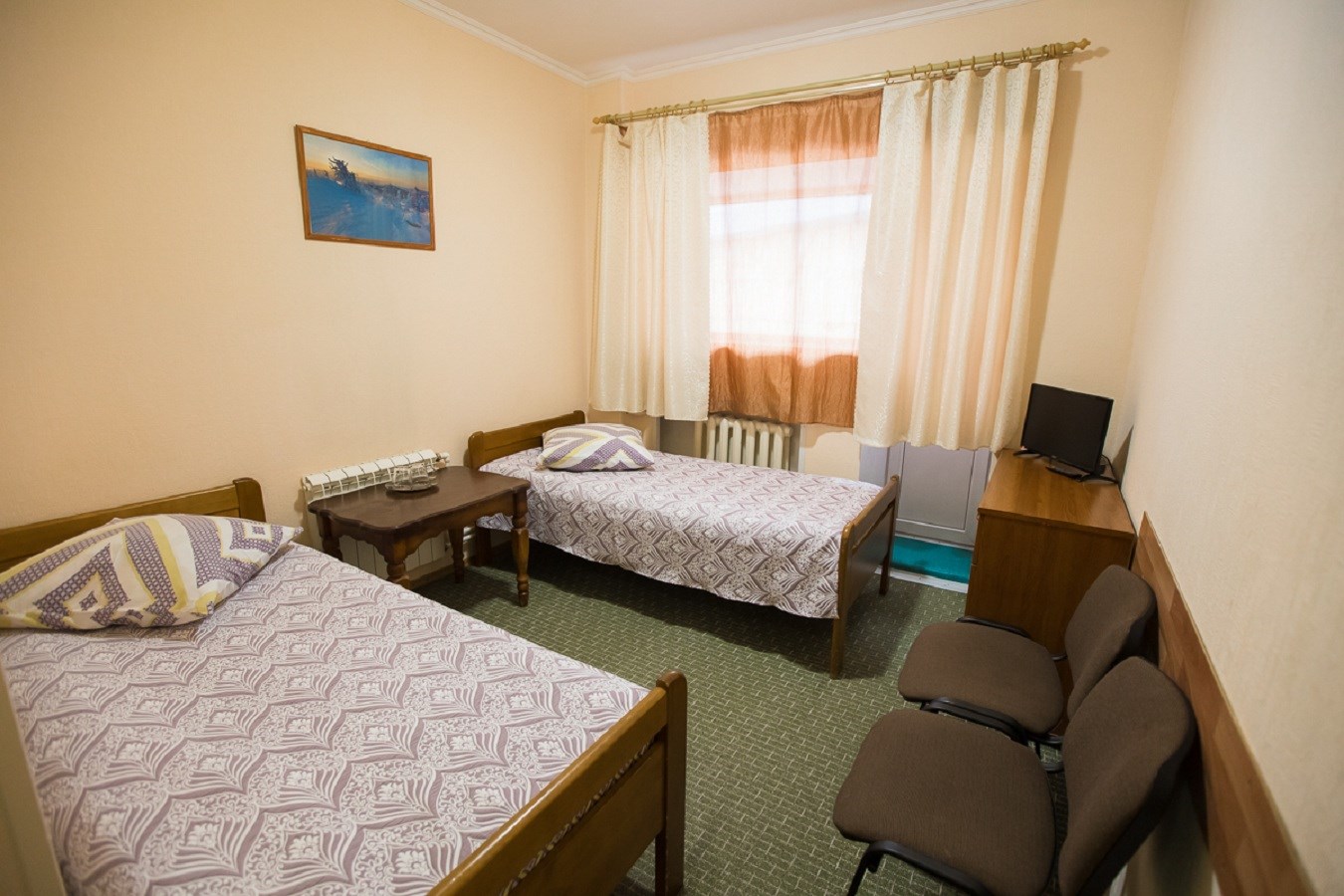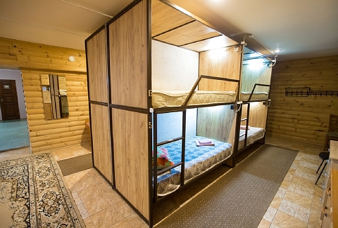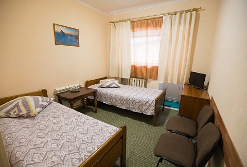 В номере: вешалка, диван, зеркало, кресла, кровать двухъярусная, стол, стулья, шкаф, набор посуды, телевизор, холодильник