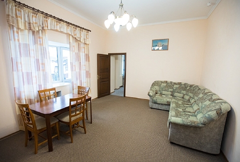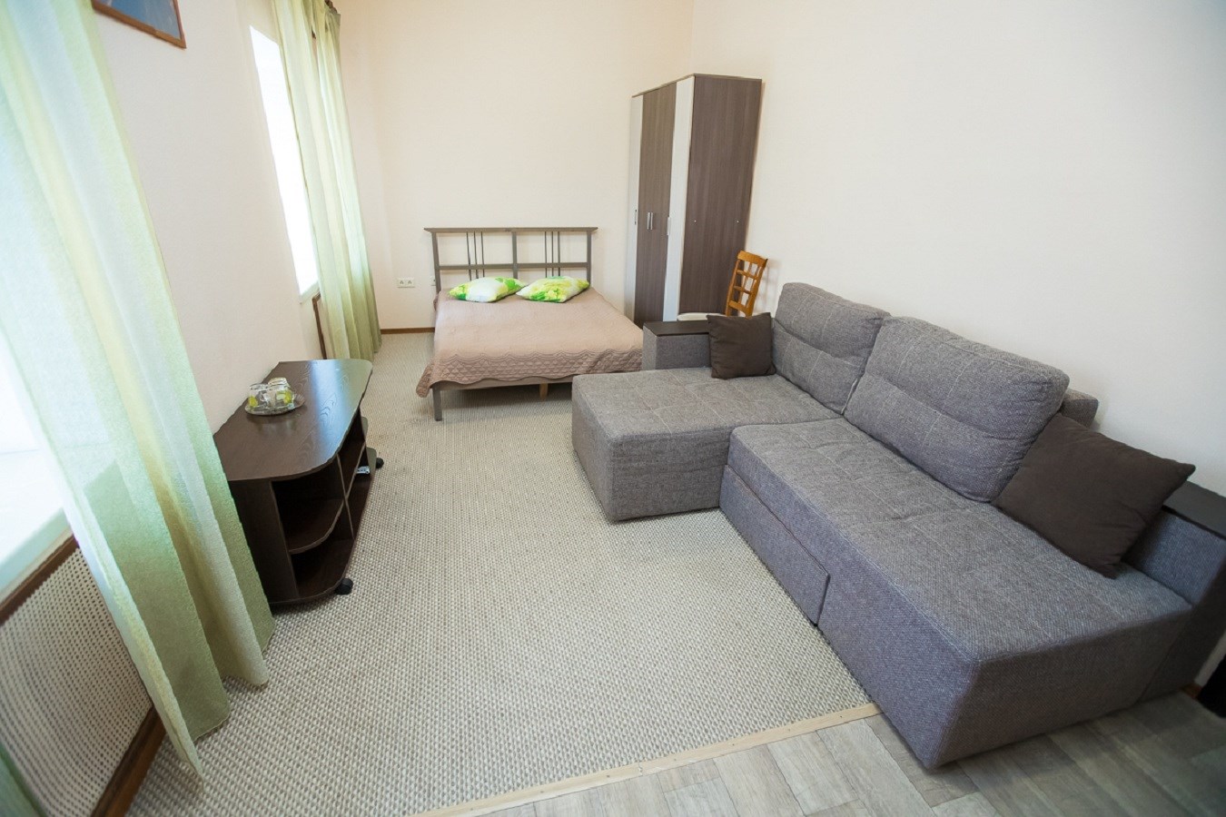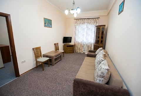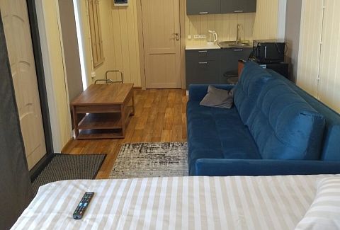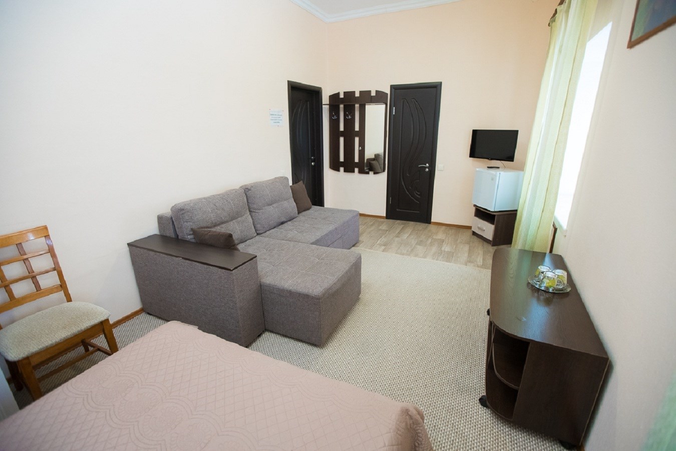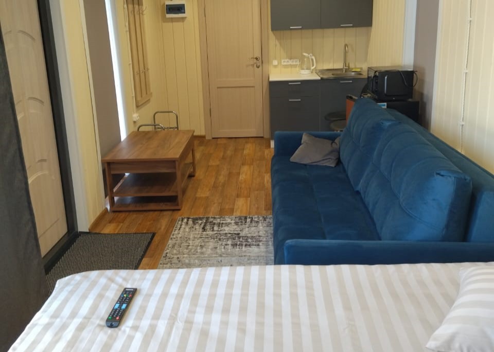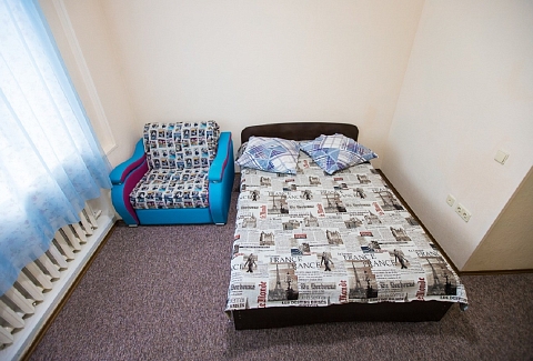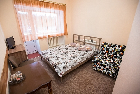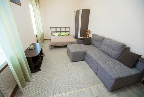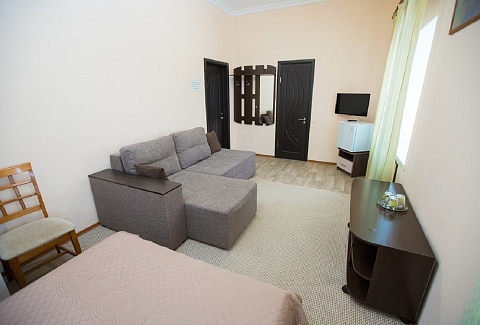 В номере: вешалка, диван раскладной, кровати односпальные /одна двуспальная кровать, стол, стулья, микроволновая печь, мини-холодильник, набор посуды, телевизор ЖК, электрочайник
