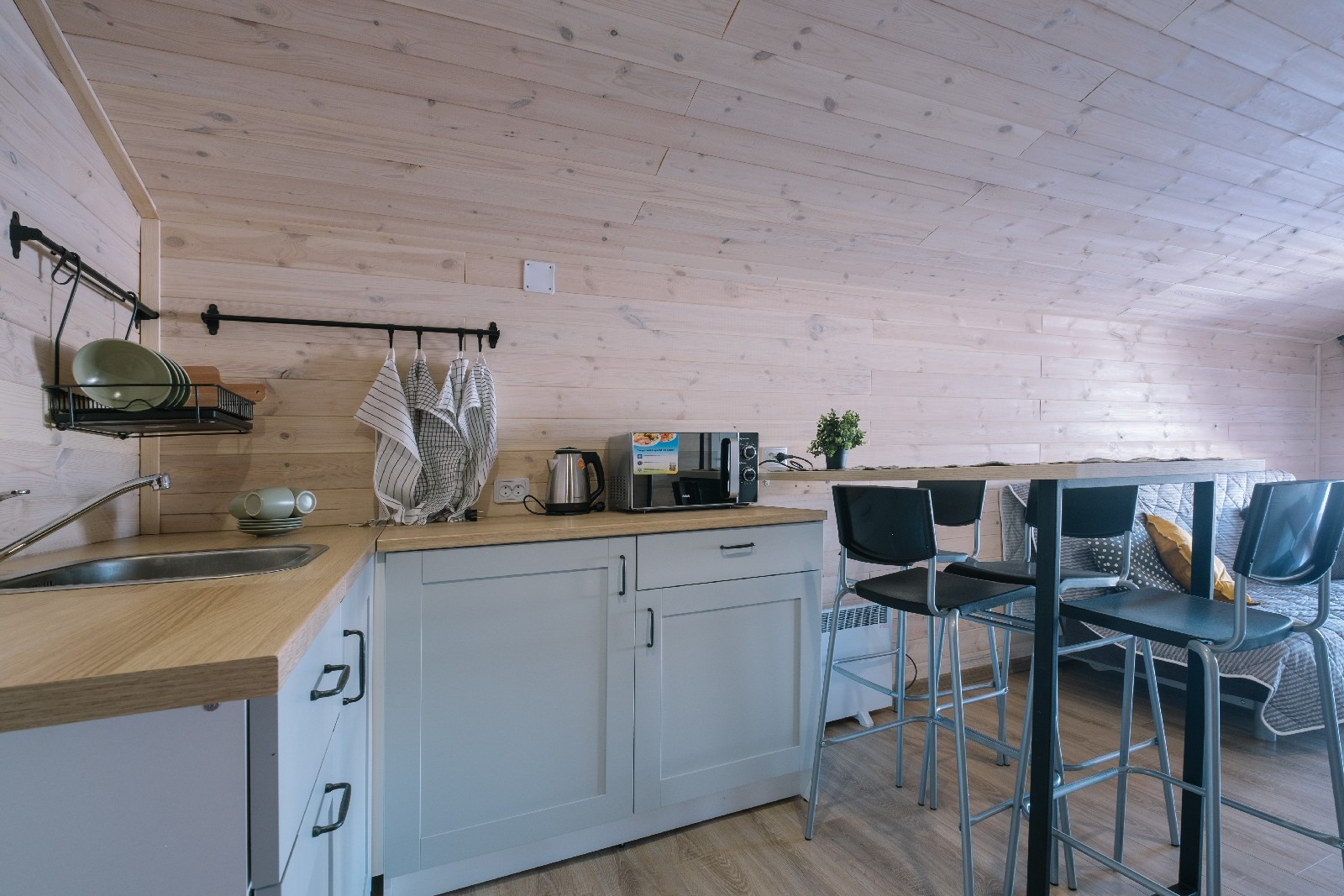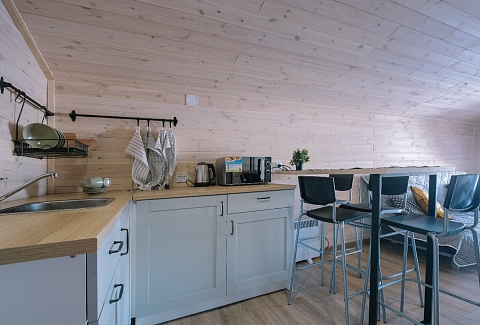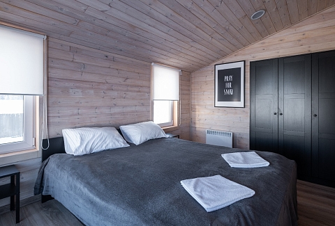 В номере: диван, кровати односпальные, кровать двуспальная, кухонная мебель, прикроватные тумбочки, стол, стулья, шкаф, микроволновая печь, мини-холодильник, набор посуды, телевизор, электрочайник
