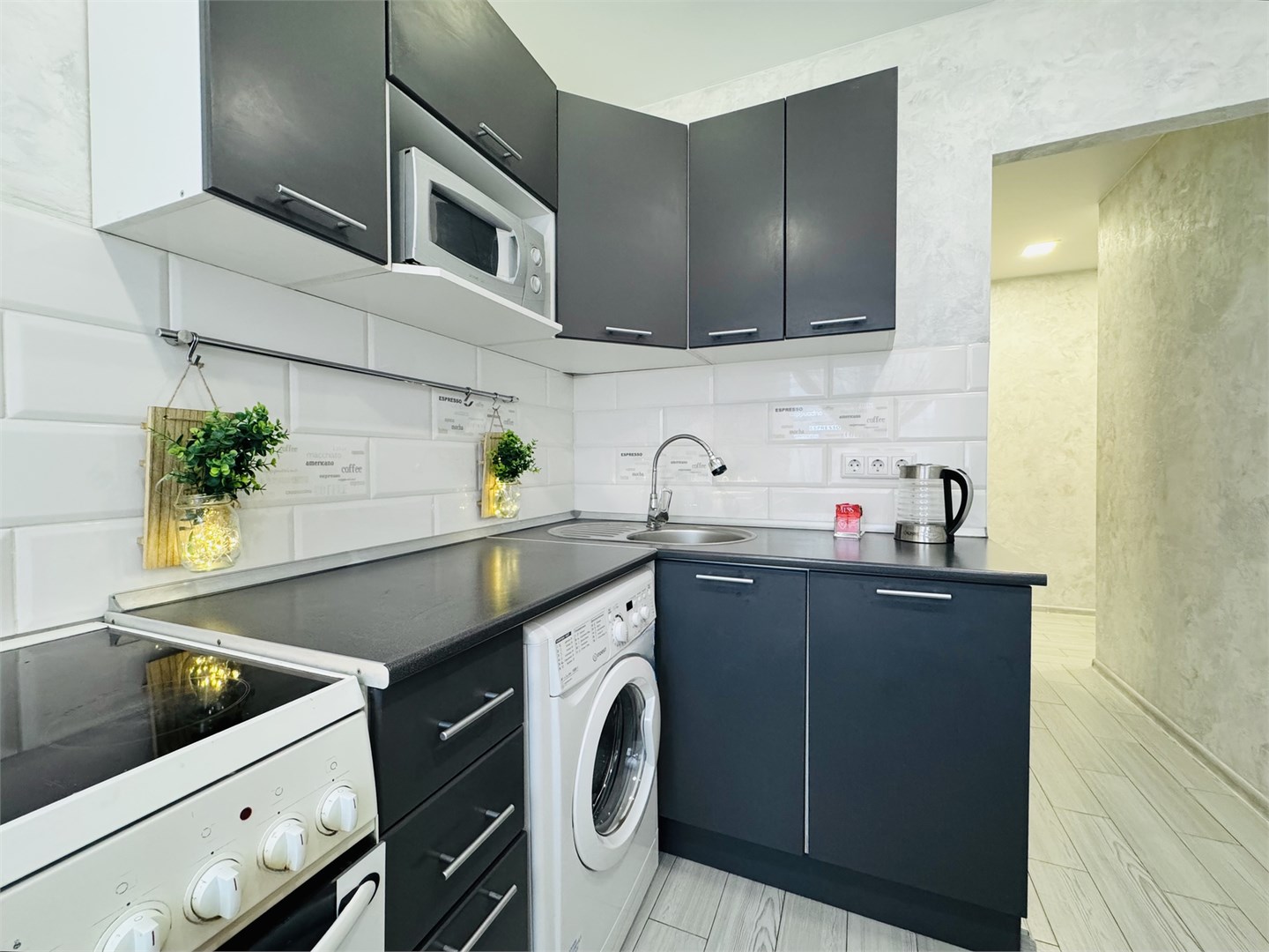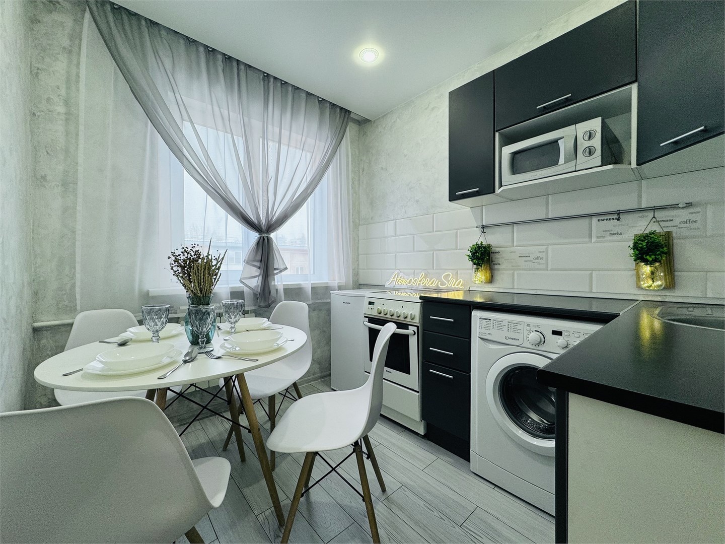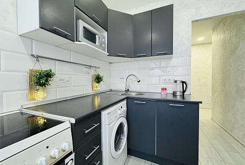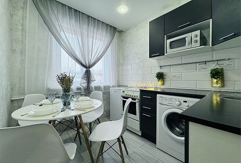 Благодаря такому оснащению готовка станет простым и приятным занятием. В санузле установлены все необходимые удобства, а стиральная машина позволит не беспокоиться о стирке.Расположение апартаментов удобно для тех, кто хочет легко добраться до центра города. Здесь создана атмосфера уюта и спокойствия, идеально подходящая для отдыха после активного дня.
