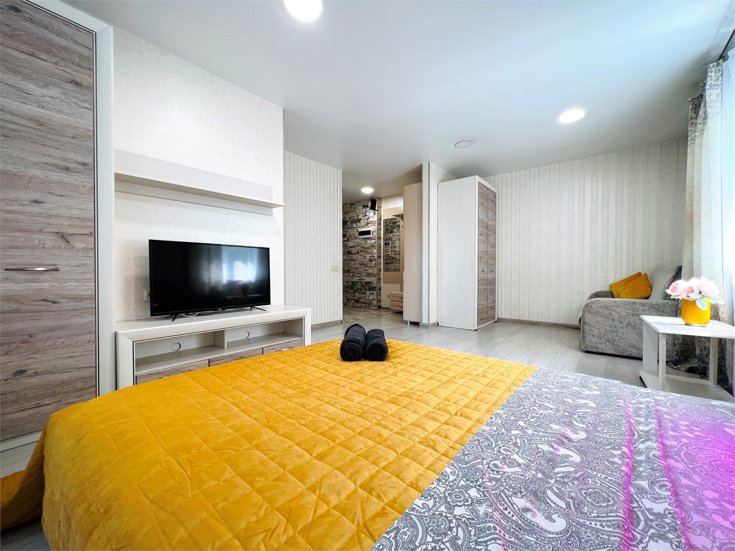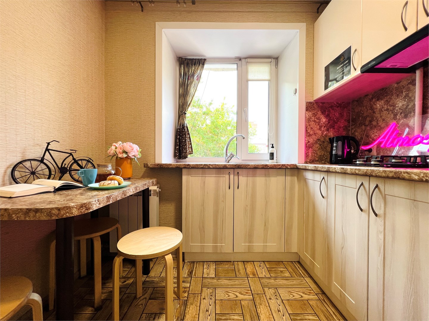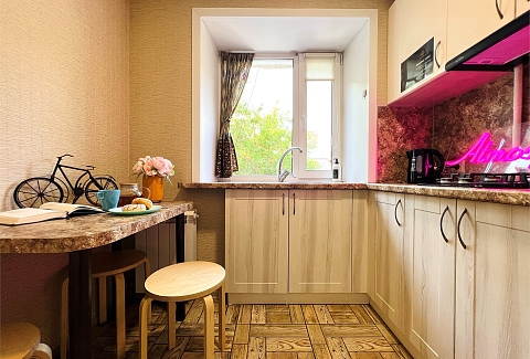 Благодаря такому оснащению готовка станет простым и приятным занятием. В санузле установлены все необходимые удобства, а стиральная машина позволит не беспокоиться о стирке.Расположение апартаментов удобно для тех, кто хочет легко добраться до центра города. Здесь создана атмосфера уюта и спокойствия, идеально подходящая для отдыха после активного дня.