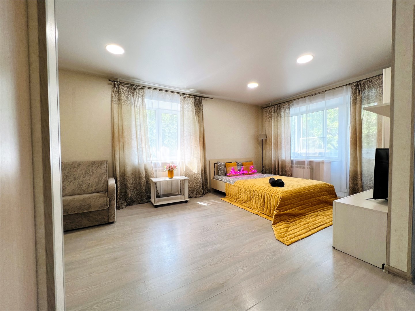 Добро пожаловать в апартаменты «Атмосфера Сна на Ленина»! Эти уютные апартаменты идеально подходят для комфортного проживания. В апартаментах имеется бесплатный Wi-Fi, что позволяет оставаться на связи и работать удалённо.Отдельная кухня оборудована всем необходимым для приготовления пищи: имеется холодильник, плита, микроволновая печь и набор посуды.