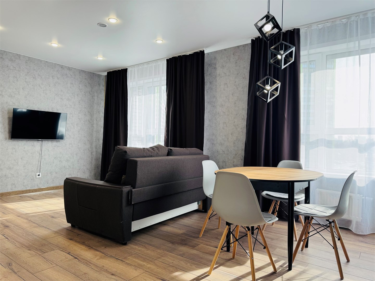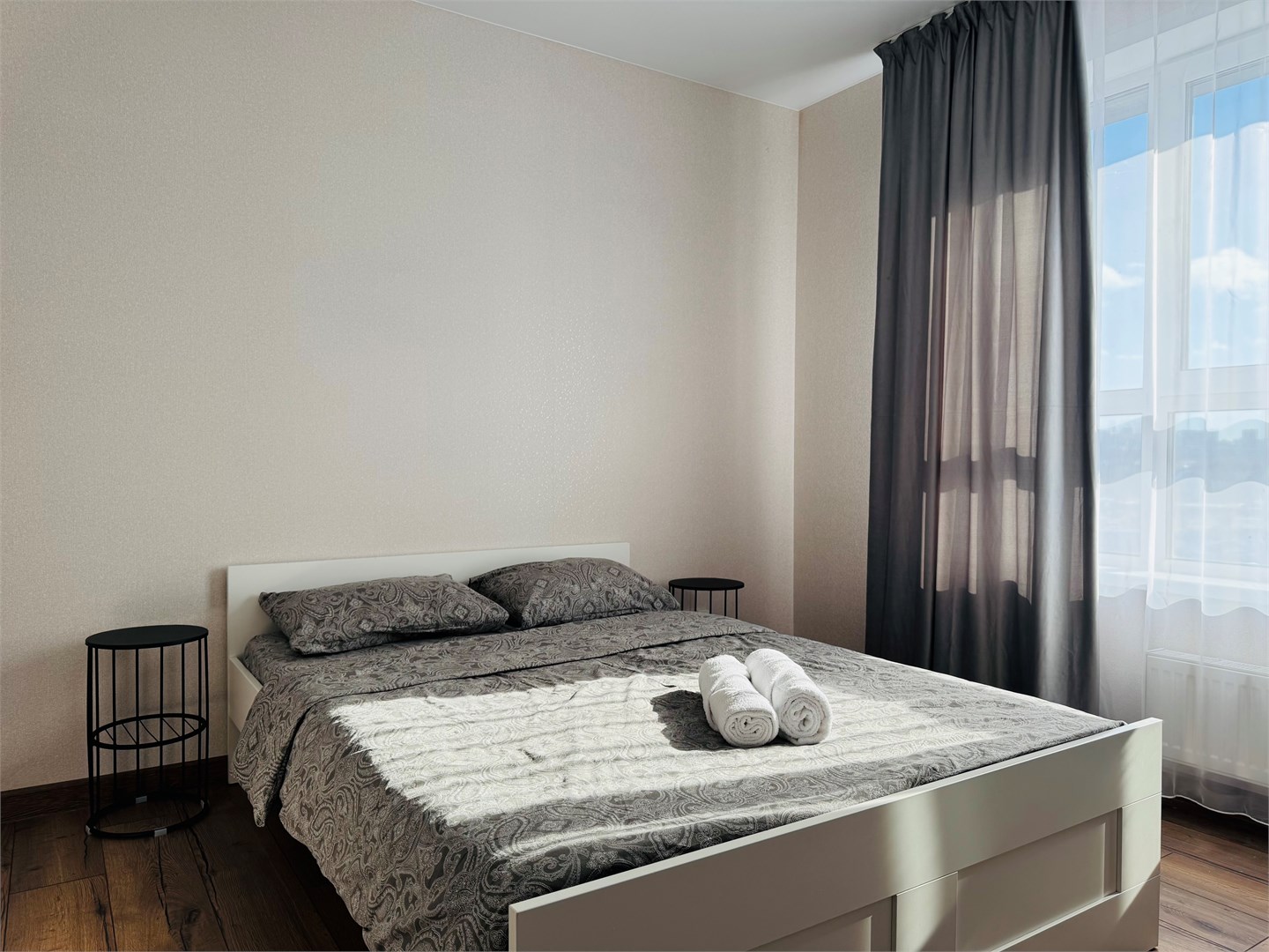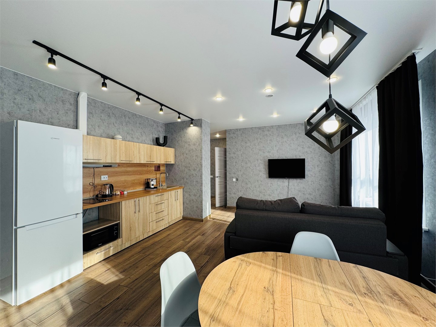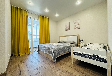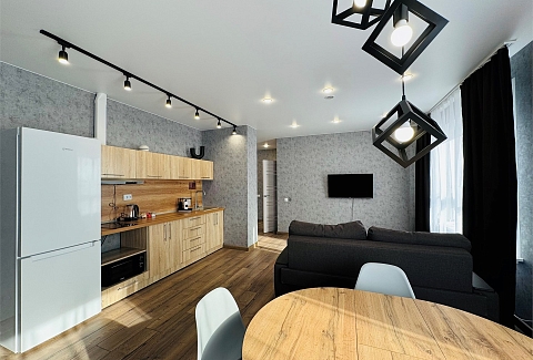 В апартаментах имеется бесплатный Wi-Fi, что позволяет оставаться на связи и работать удалённо.Отдельная кухня оборудована всем необходимым для приготовления пищи: имеется холодильник, плита, микроволновая печь и набор посуды. Благодаря такому оснащению готовка станет простым и приятным занятием. В санузле установлены все необходимые удобства, а стиральная машина позволит не беспокоиться о стирке.Расположение апартаментов удобно для тех, кто хочет легко добраться до центра города. Здесь создана атмосфера уюта и спокойствия, идеально подходящая для отдыха после активного дня.
