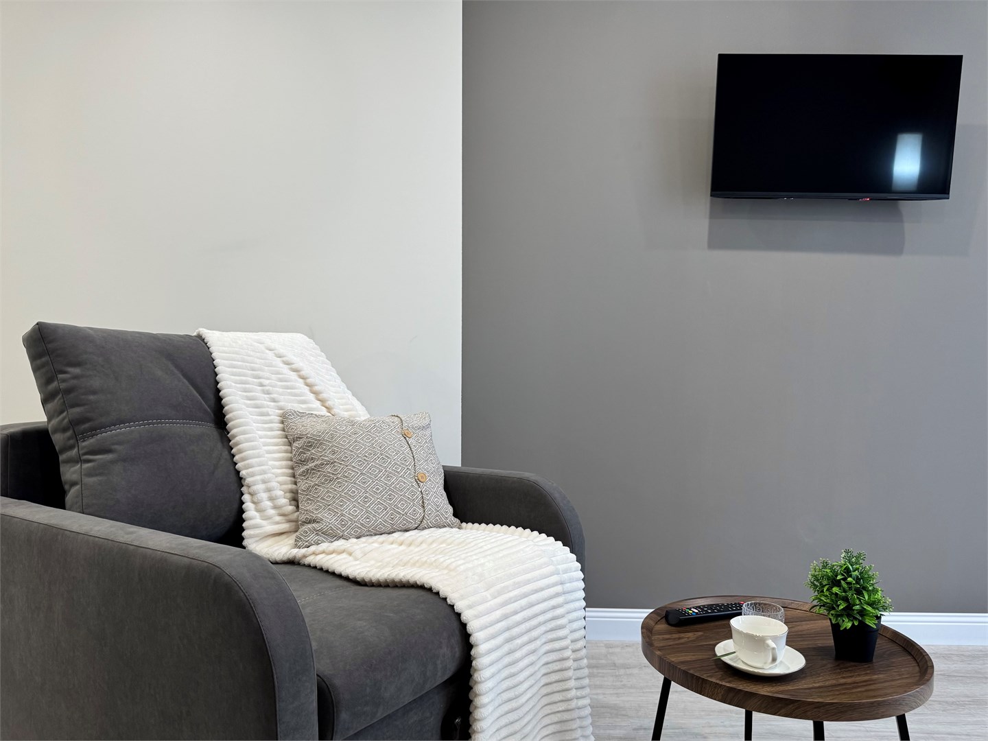 В номере: диван, кровать двуспальная, стол, стулья, шкаф, гладильная доска, микроволновая печь, набор посуды, плита электрическая, стиральная машина, телевизор, утюг, холодильник, чайник