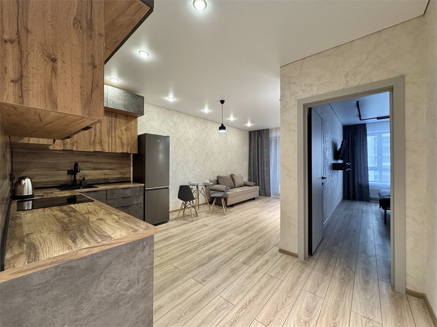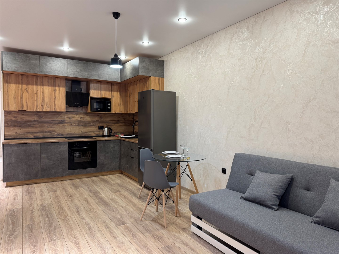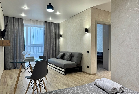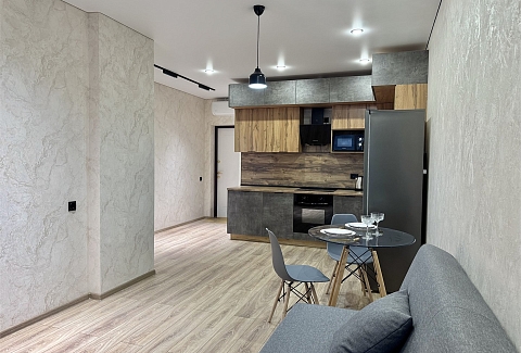 Благодаря такому оснащению готовка станет простым и приятным занятием. В санузле установлены все необходимые удобства, а стиральная машина позволит не беспокоиться о стирке.Расположение апартаментов удобно для тех, кто хочет легко добраться до центра города. Здесь создана атмосфера уюта и спокойствия, идеально подходящая для отдыха после активного дня.