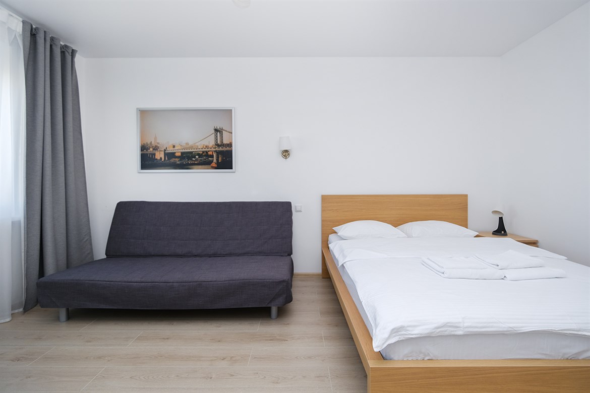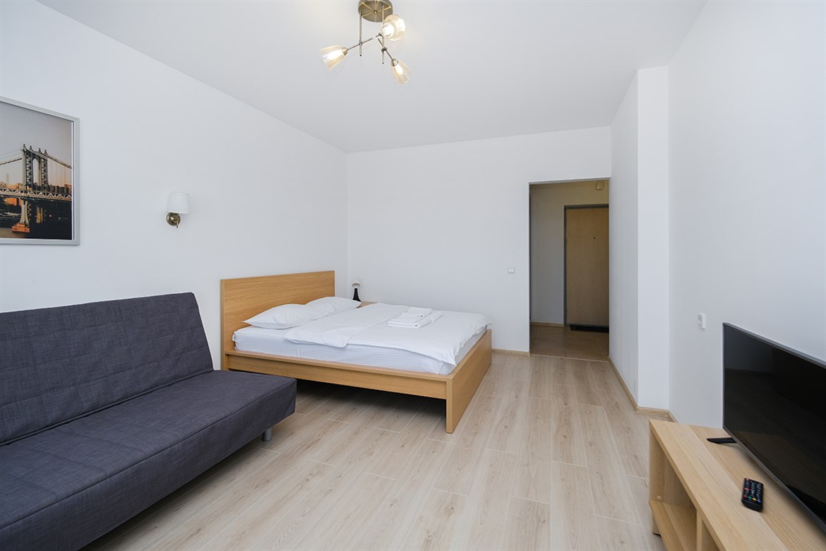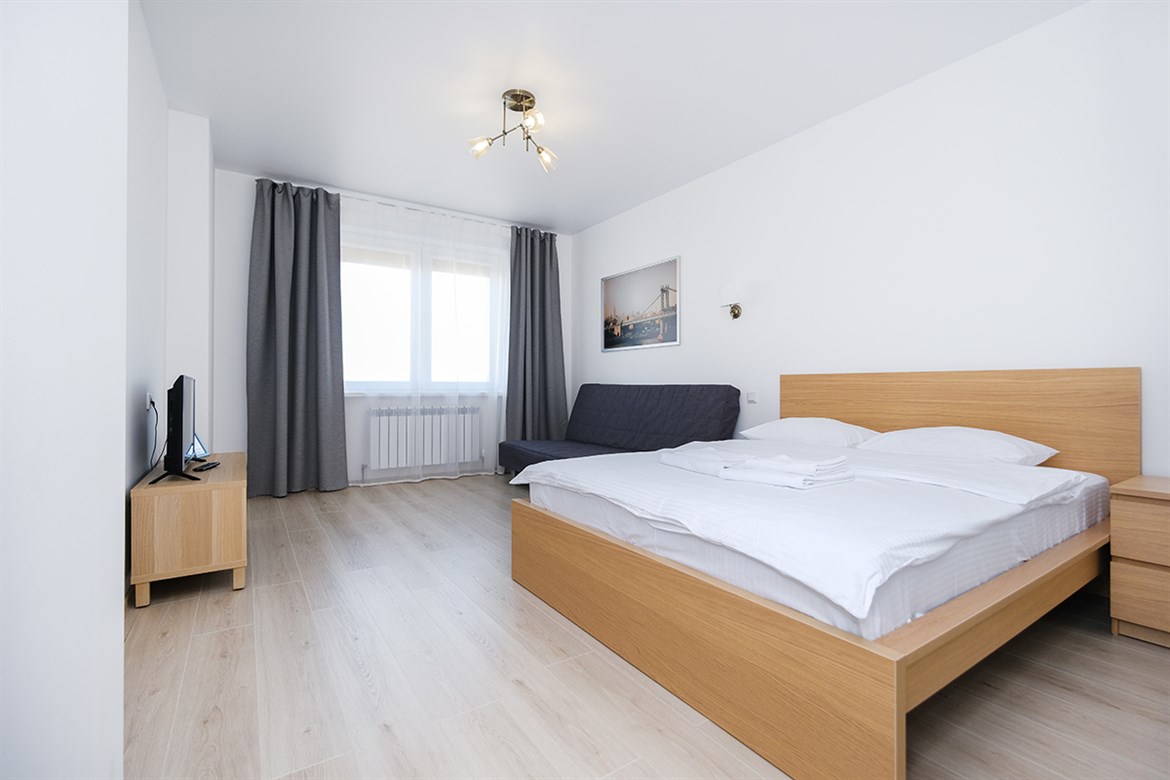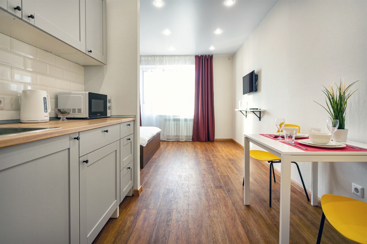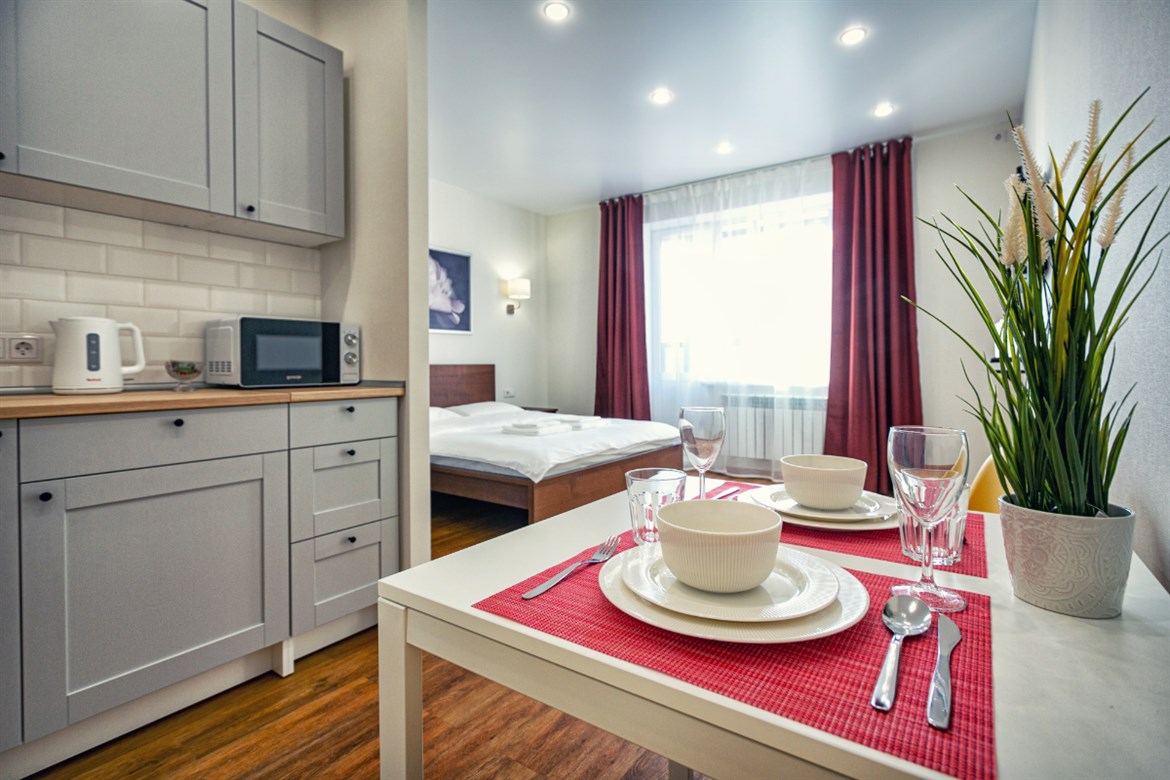 Двор закрытый, оборудован игровым снаряжением и парковочными местами. В здании работают суши-бар и магазин пива. Жилой фонд включает студию на 2 гостей и однокомнатные апартаменты на 4 человек. Обе категории оснащены удобными спальными местами, функциональным кухонным пространством, санузлом с ванной. Постояльцам сети доступно подключение к Wi-Fi.