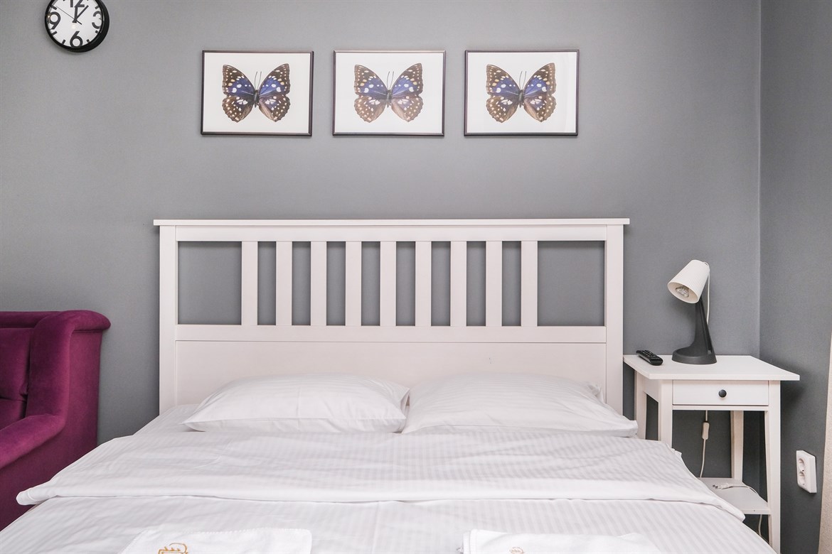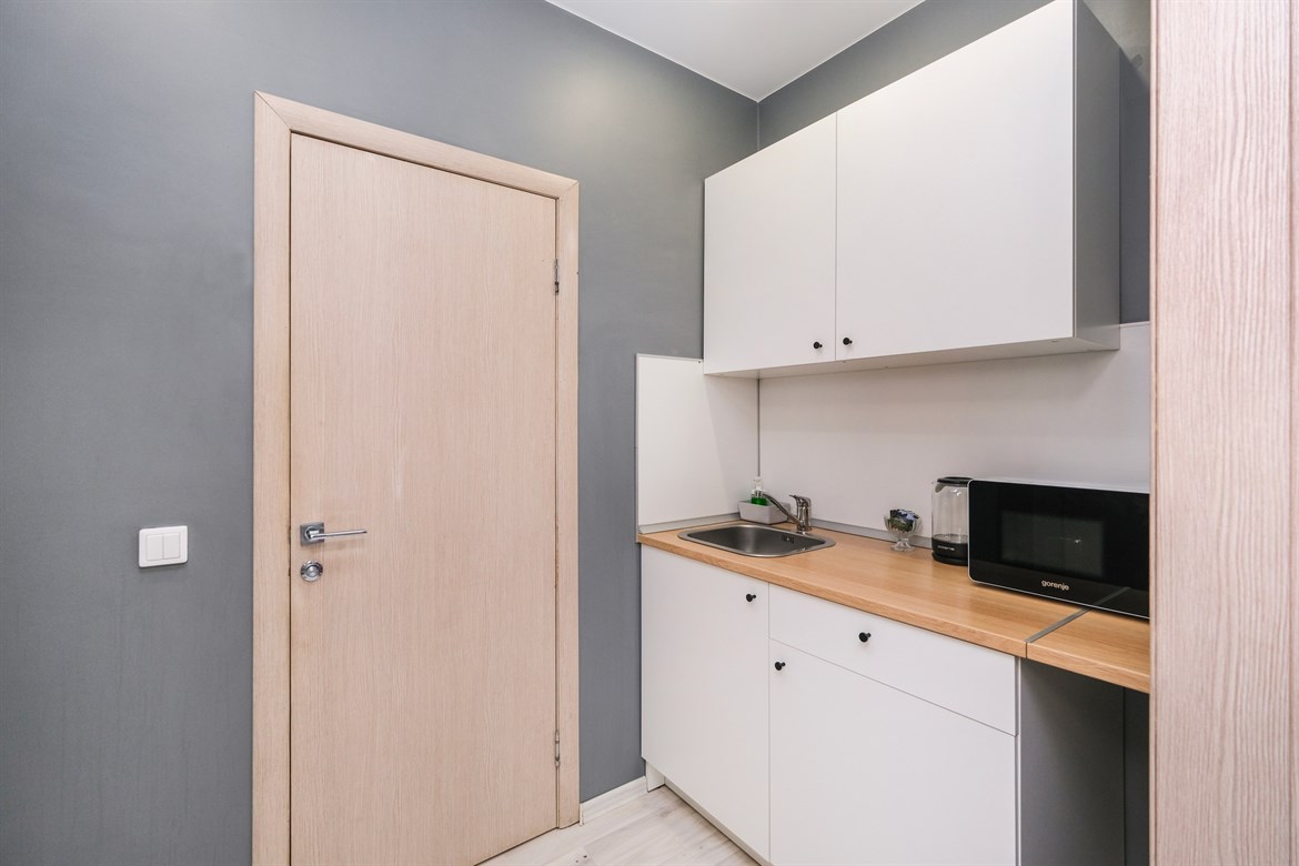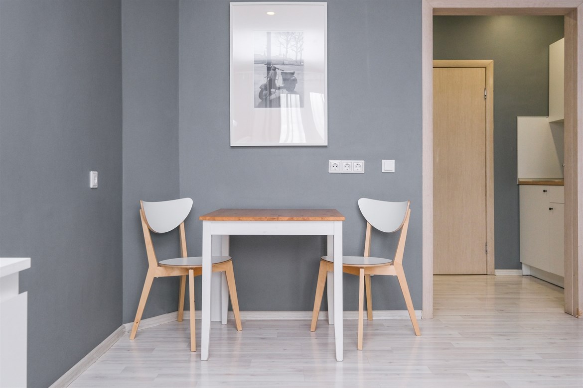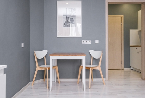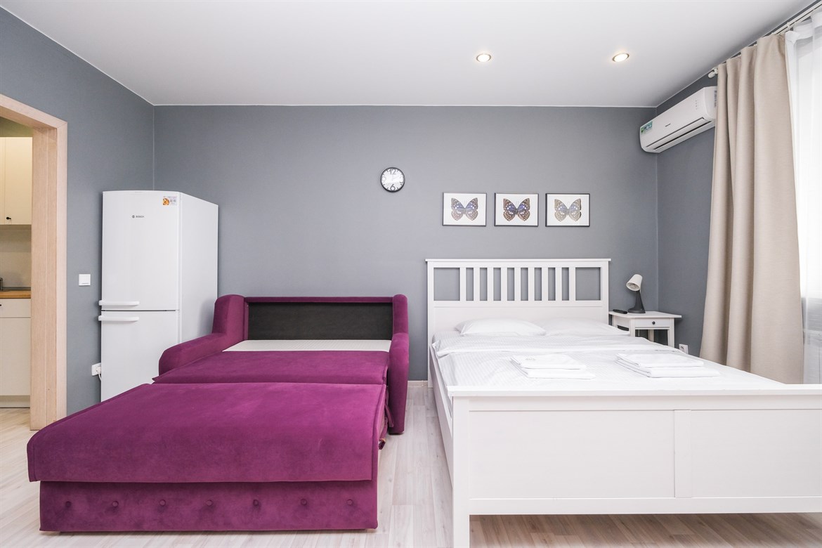 Просторный внутренний двор располагает спортивным и игровым оборудованием, парковочными местами. В здании работает продуктовый магазин. В апартаментах могут разместиться 4 гостя: жилая комната оснащена кроватью и диваном. Есть выход на застекленный балкон. Небольшая, но функциональная кухня установлена в прихожей. Совмещенный санузел оборудован ванной, стиральной машиной. Гости могут подключиться к Wi-Fi. Доступно заселение с питомцем.
