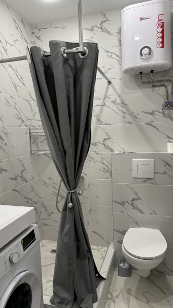 Санузел: бойлер, с душевой кабиной, тапочки, туалетные принадлежности, фен, халат
