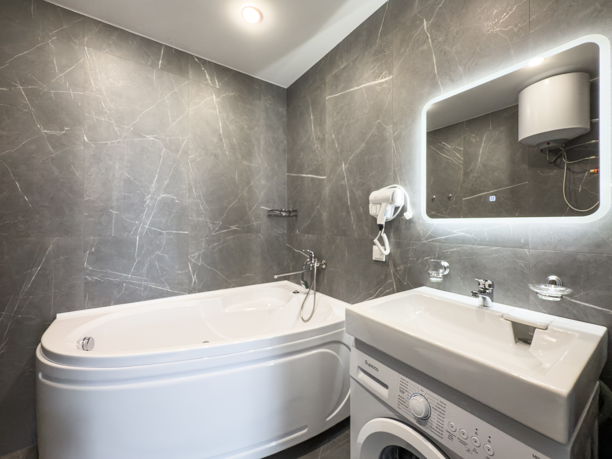 Санузел: с душем или ванной, туалетные принадлежности, фен