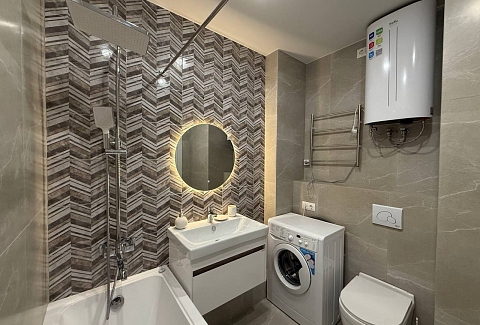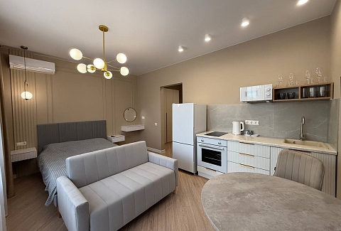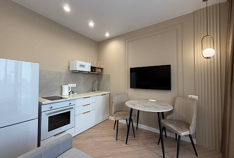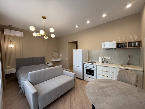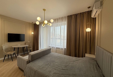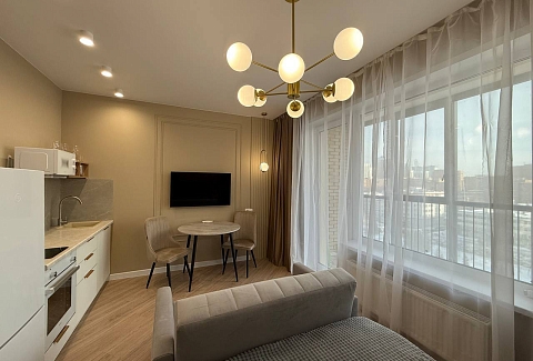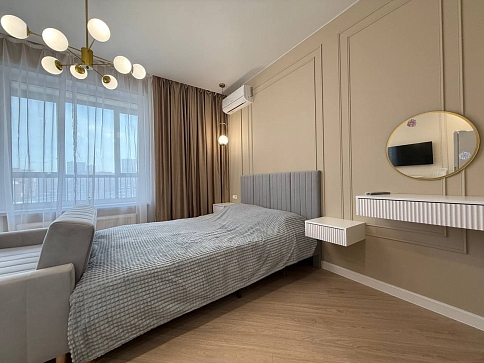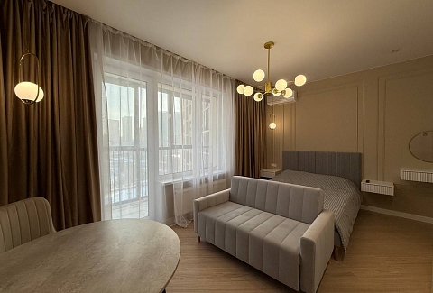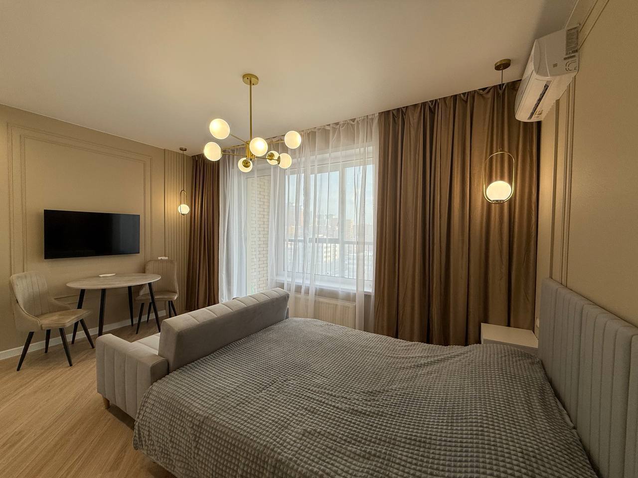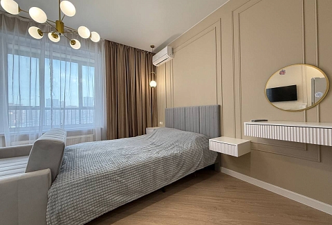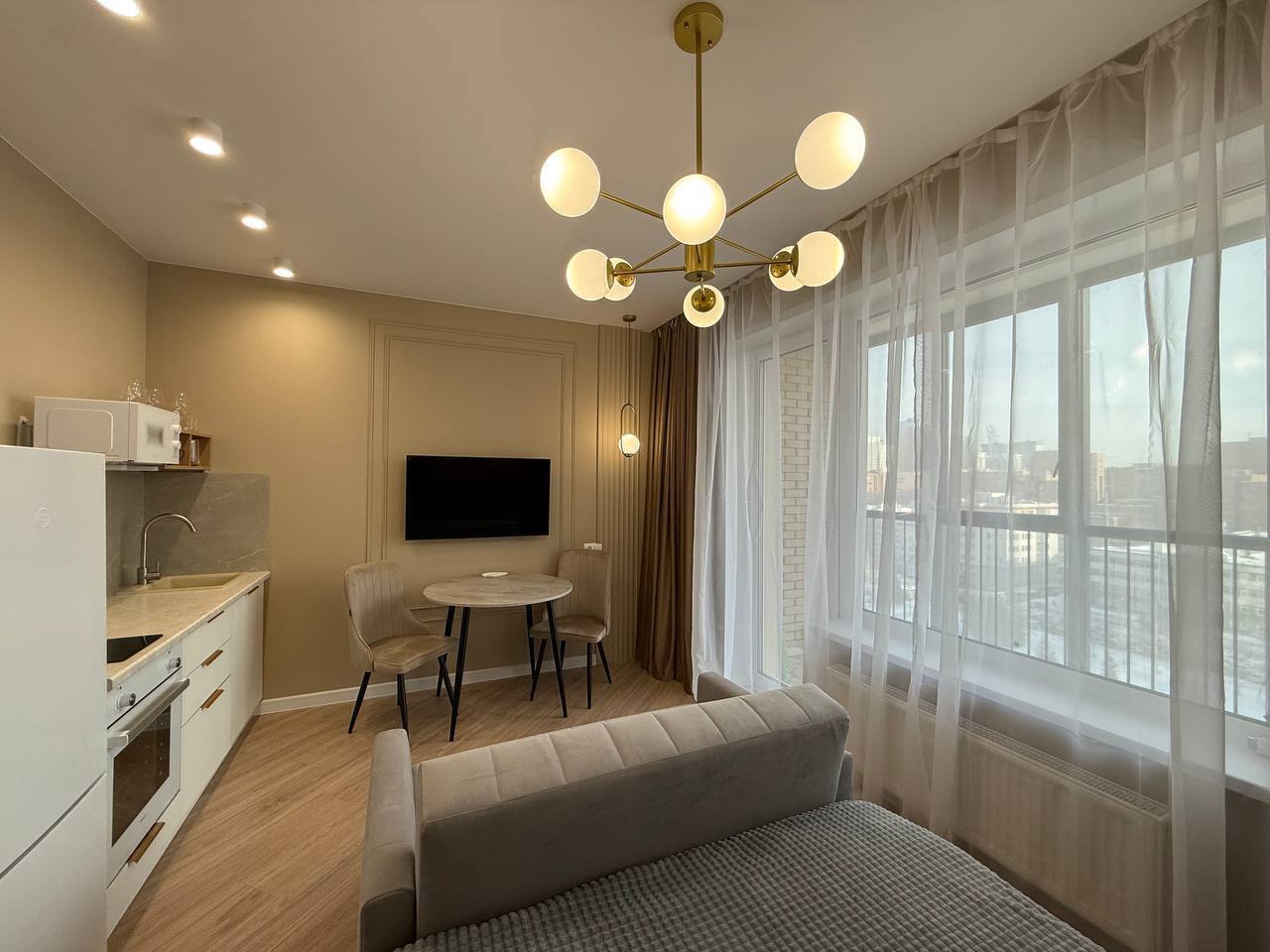 Квартира-СтудияПлощадь 30 м²Этаж 11/26Кровать + диван4 гостя В квaртиpe:- постельные принадлежности, полотенца;- шaмпунь, гeль для душа;- набор посуды и кухонной утвари для готовки;- фeн;- утюг + гладильнaя доcка;-бойлер;- стиральнaя мaшинa;-кондиционер;- холодильник;- плита;- микровoлнoвая печь;- чайник;- телевизор;- бecплaтный Wi-Fi;️ Парковка возле дома. Правый берег- Центр города-НИИТО- ТЦ Аура- Локомотив-Арена Метро Площадь Ленина в 5 минутах ходьбы. Самый центр города.