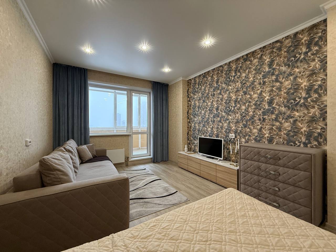 Однокомнатная квартира Площадь 40 м²Этаж 5/16Кровать + Диван4 гостя В квaртиpe: - постельные принадлежности, полотенца; - шaмпунь, гeль для душа; - набор посуды и кухонной утвари для готовки; - фeн; - утюг + гладильнaя доcка; -бойлер;- стиральнaя мaшинa; - холодильник; - плита; - микровoлнoвая печь; - чайник; - телевизор; - бecплaтный Wi-Fi; ️ Парковка возле дома в свободном доступе. Правый берегНабережнаяТЦ АураРечпортПединститут Метро Октябрьская в 30 минутах ходьбы. Большое количество торговых и развлекательных центров для проведения досуга (ТЦ Аура, Галилео), рестораны, кинотеатры и тд. До центра города, площади Ленина, Оперного театра 10 минут езды. Круглосуточное заселение Стандартное время заезда - после 15:00 Стандартное время выезда - до 12:00 Условия более раннего заселения и позднего выезда оговариваются индивидуально. Для командировочных гостей мы предоставляем полный пакет отчётных документов. Квартира не может быть использована для шумных застолий и вечеринок. Стоимость проживания зависит от продолжительности проживания и количества человек