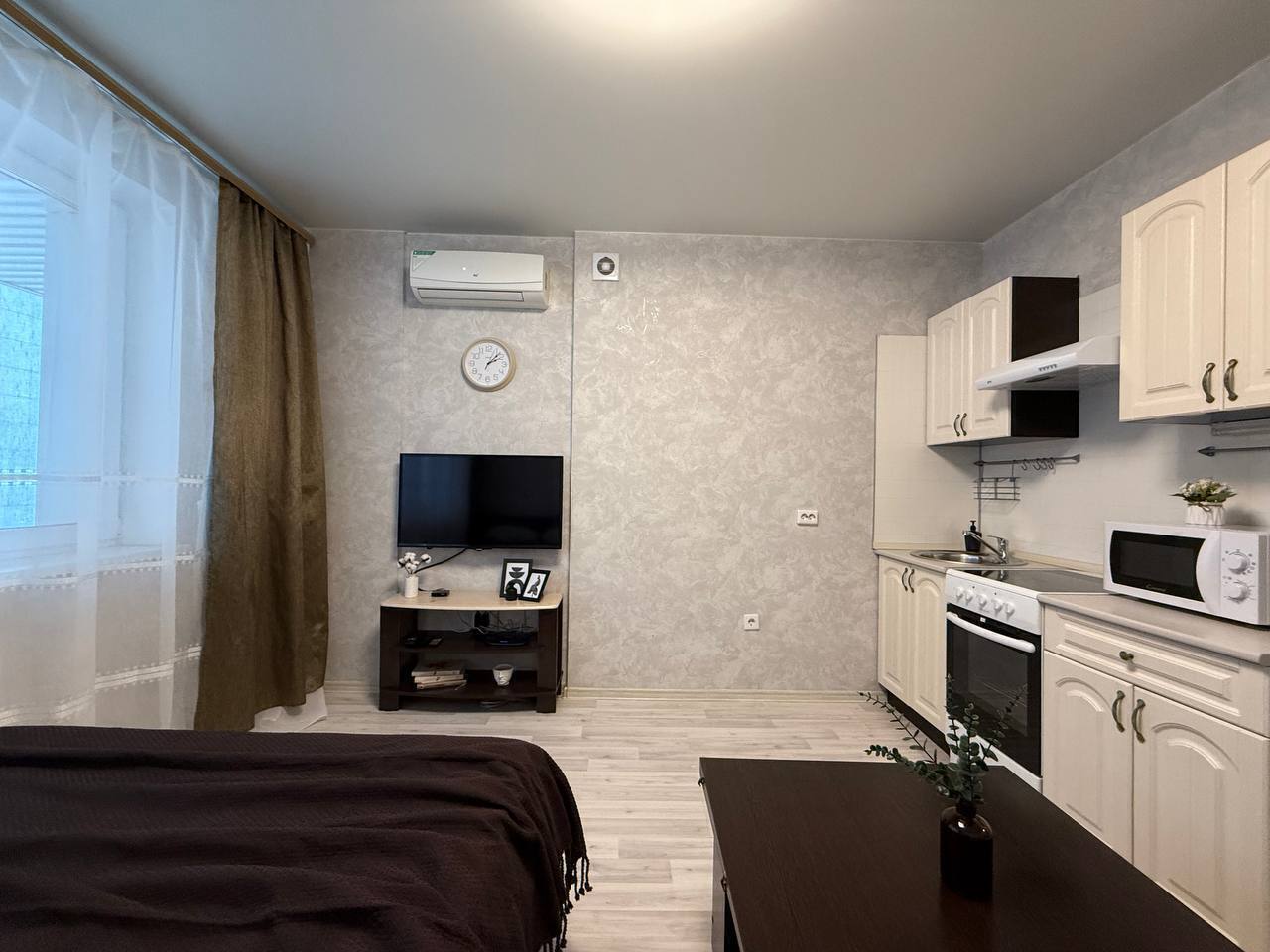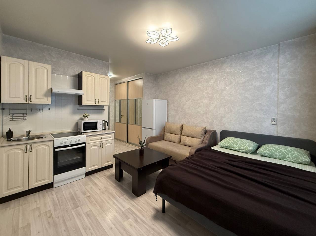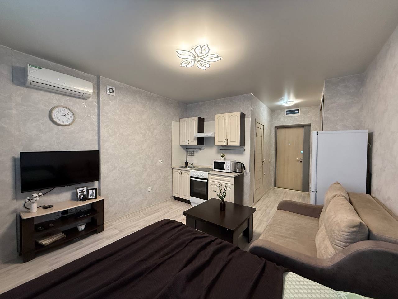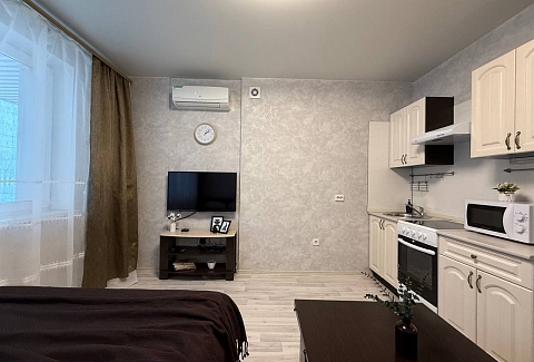 Квартира - студия Площадь 30 м2Этаж 3/17Кровать + диван4 гостя В квaртиpe: - постельные принадлежности, полотенца; - шaмпунь, гeль для душа; - набор посуды и кухонной утвари для готовки; - фeн; - утюг + гладильнaя доcка; - стиральнaя мaшинa; - кондиционер;- холодильник; - плита; - микровoлнoвая печь; - чайник; - телевизор; - бecплaтный Wi-Fi; ️ Парковка возле дома в свободном доступе. Правый берег - ЖД Вокзал- РЖД больница - Зоопарк- Заельцовский парк Метро Гагаринская в 10 минутах ходьбы. Большое количество торговых и развлекательных центров для проведения досуга ( ТЦ Ройял Парк, ТЦ Галерея, Золотое яблоко), рестораны, кинотеатры и тд.