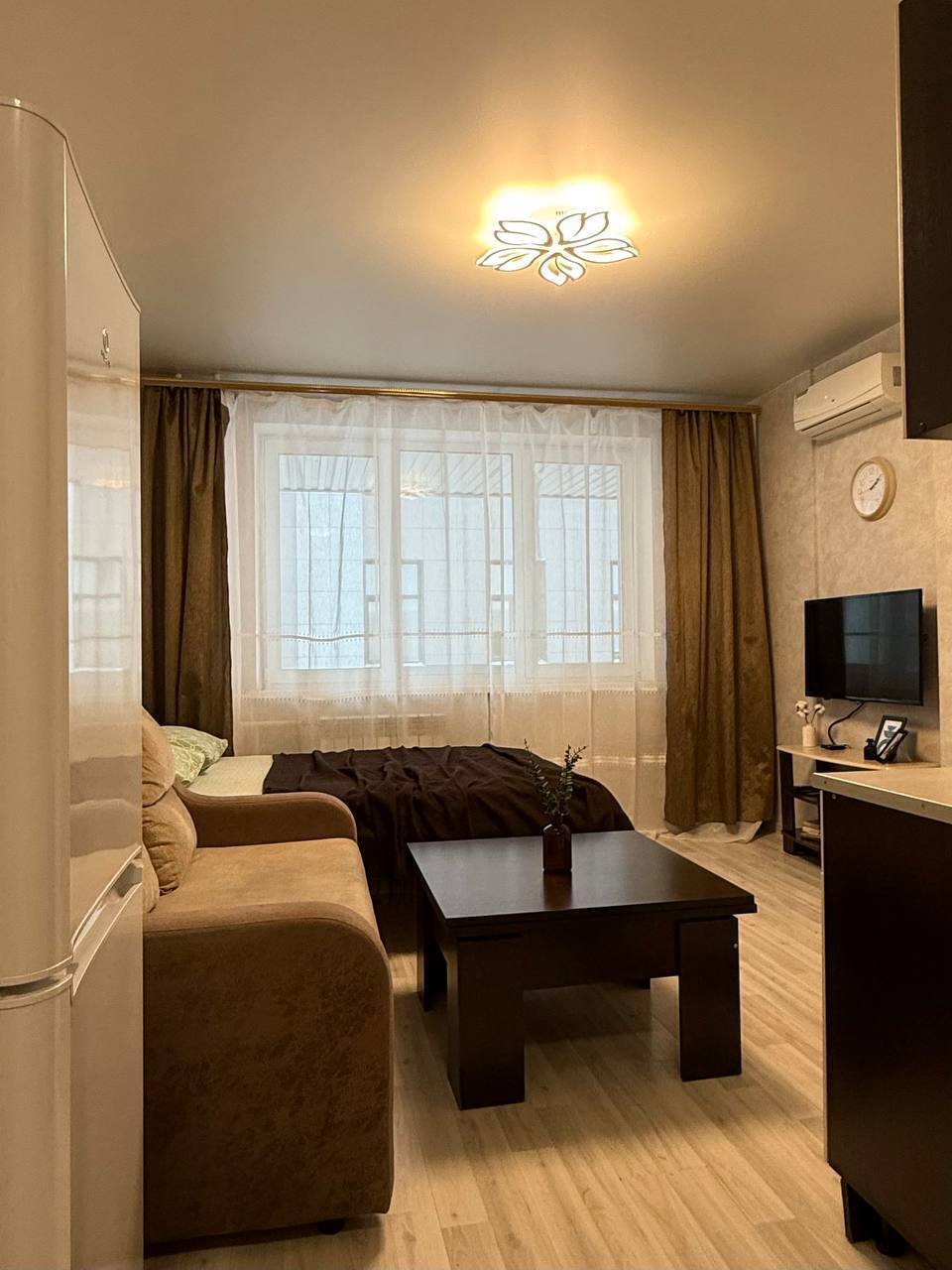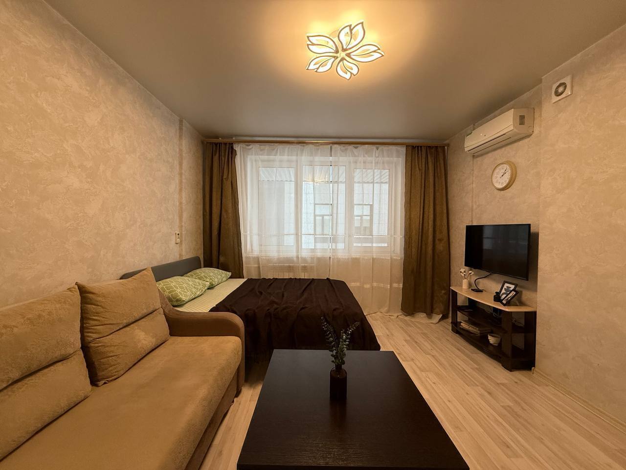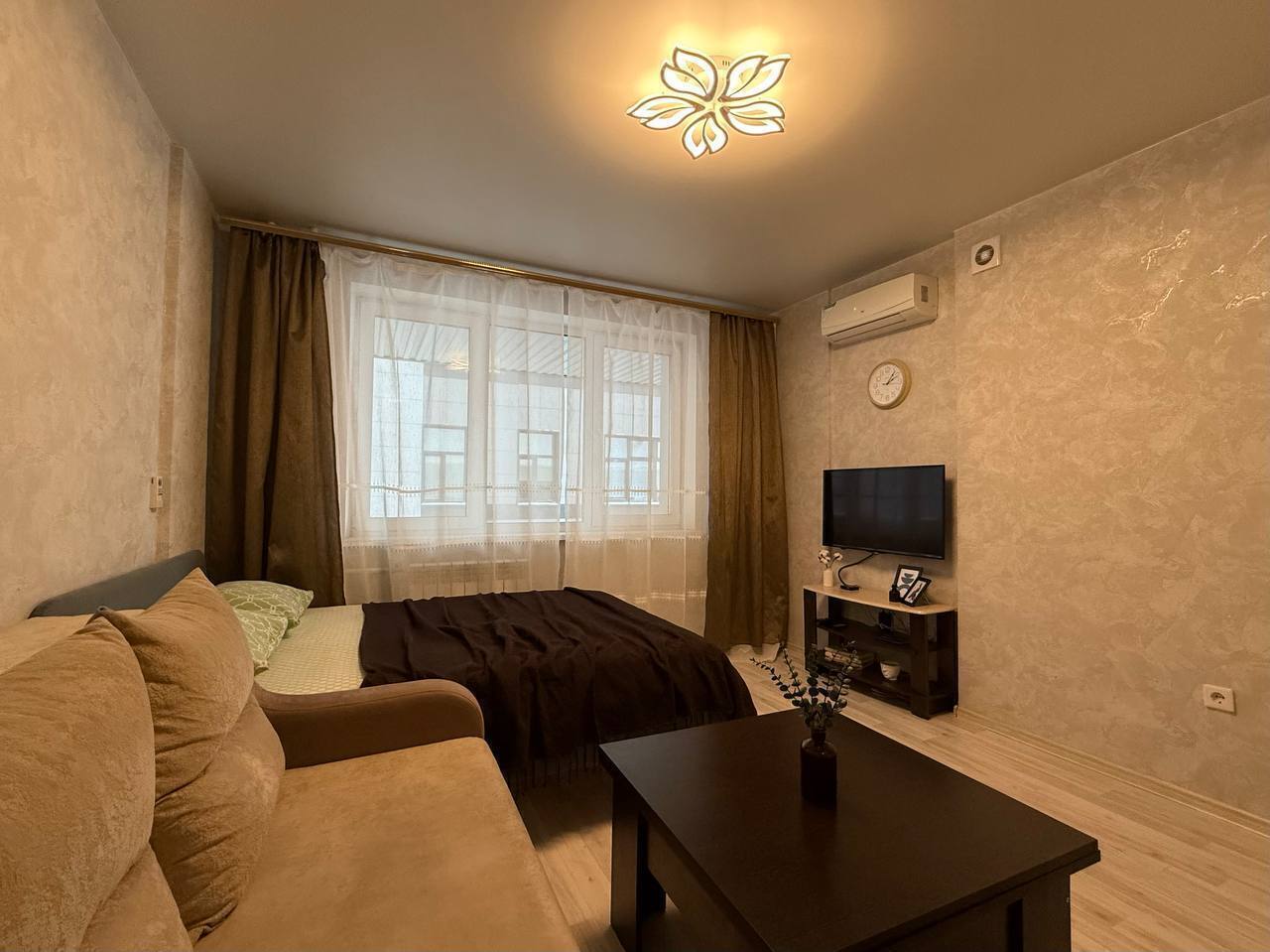 Квартира - студия Площадь 30 м2Этаж 3/17Кровать + диван4 гостя В квaртиpe: - постельные принадлежности, полотенца; - шaмпунь, гeль для душа; - набор посуды и кухонной утвари для готовки; - фeн; - утюг + гладильнaя доcка; - стиральнaя мaшинa; - кондиционер;- холодильник; - плита; - микровoлнoвая печь; - чайник; - телевизор; - бecплaтный Wi-Fi; ️ Парковка возле дома в свободном доступе. Правый берег - ЖД Вокзал- РЖД больница - Зоопарк- Заельцовский парк Метро Гагаринская в 10 минутах ходьбы. Большое количество торговых и развлекательных центров для проведения досуга ( ТЦ Ройял Парк, ТЦ Галерея, Золотое яблоко), рестораны, кинотеатры и тд.