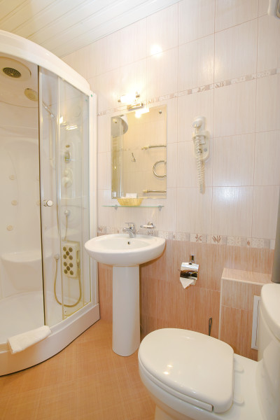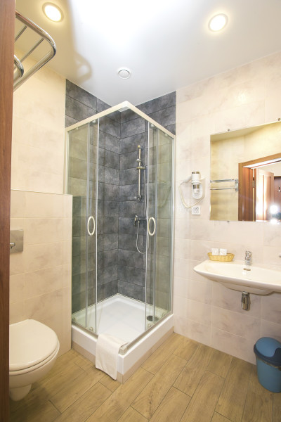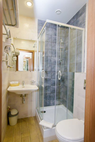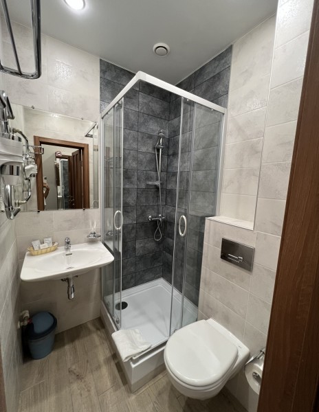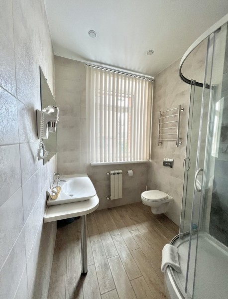 Санузел: с душем, тапочки, туалетные принадлежности, фен