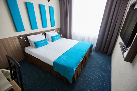 Расстояние до аэропорта составляет 21 километр. Добраться до железнодорожного вокзала можно за 15 минут на автомобиле. Номерной фонд разного уровня комфорта и вместимости расположился в 12-этажном панельном здании. В комнатах выполнен дизайнерский ремонт с яркими элементами. Номера оснащены необходимой мебелью, кондиционером, телевизором, мини-холодильником. Санузел с душем или ванной. Гостям предоставляются тапочки, полотенца и туалетные принадлежности. На территории отеля работает ресторан, где подают блюда средиземноморской и сибирской кухни. Доступен заказ еды и напитков в номер. В круглосуточном лобби-баре можно насладиться напитками и великолепным видом на город. Гости имеют возможность посетить хаммам с бассейном, а также тренажерный зал. В салоне красоты предоставляют парикмахерские услуги. Для деловых встреч в отеле есть бизнес-центр, оснащенный всем необходимым. Для маленьких постояльцев обустроена детская комната с сухим бассейном, полосой препятствий и другими развлечениями.