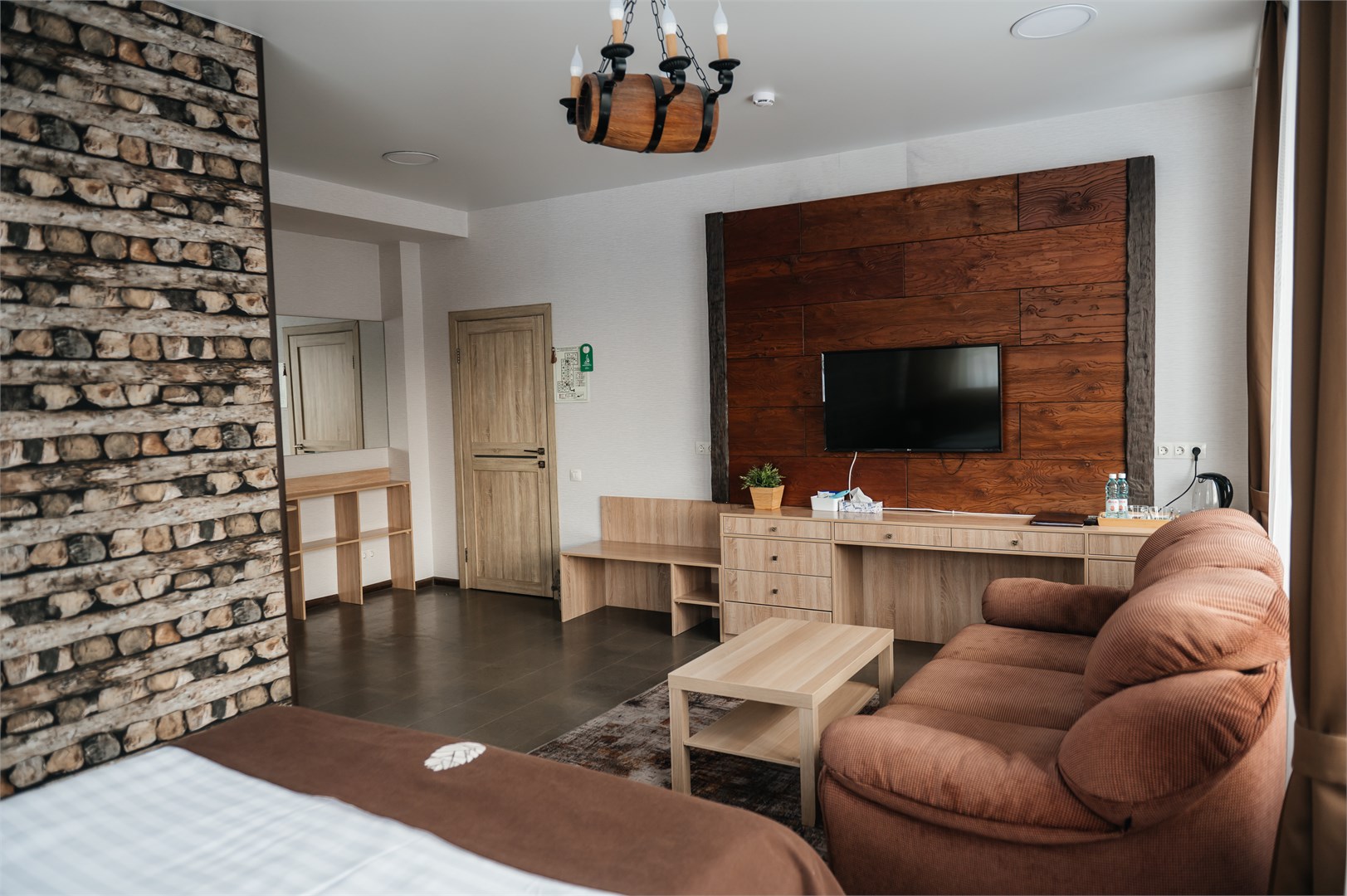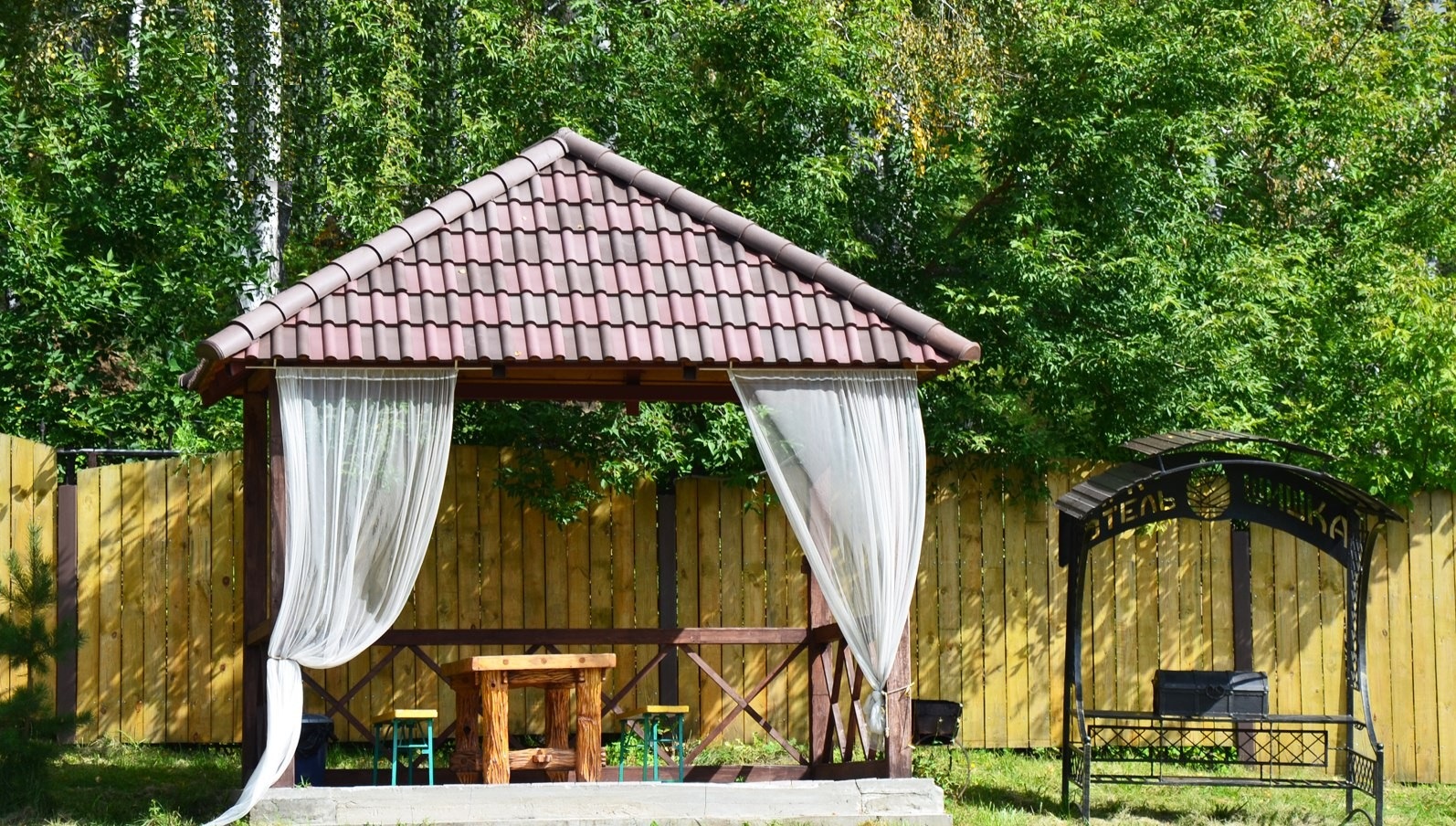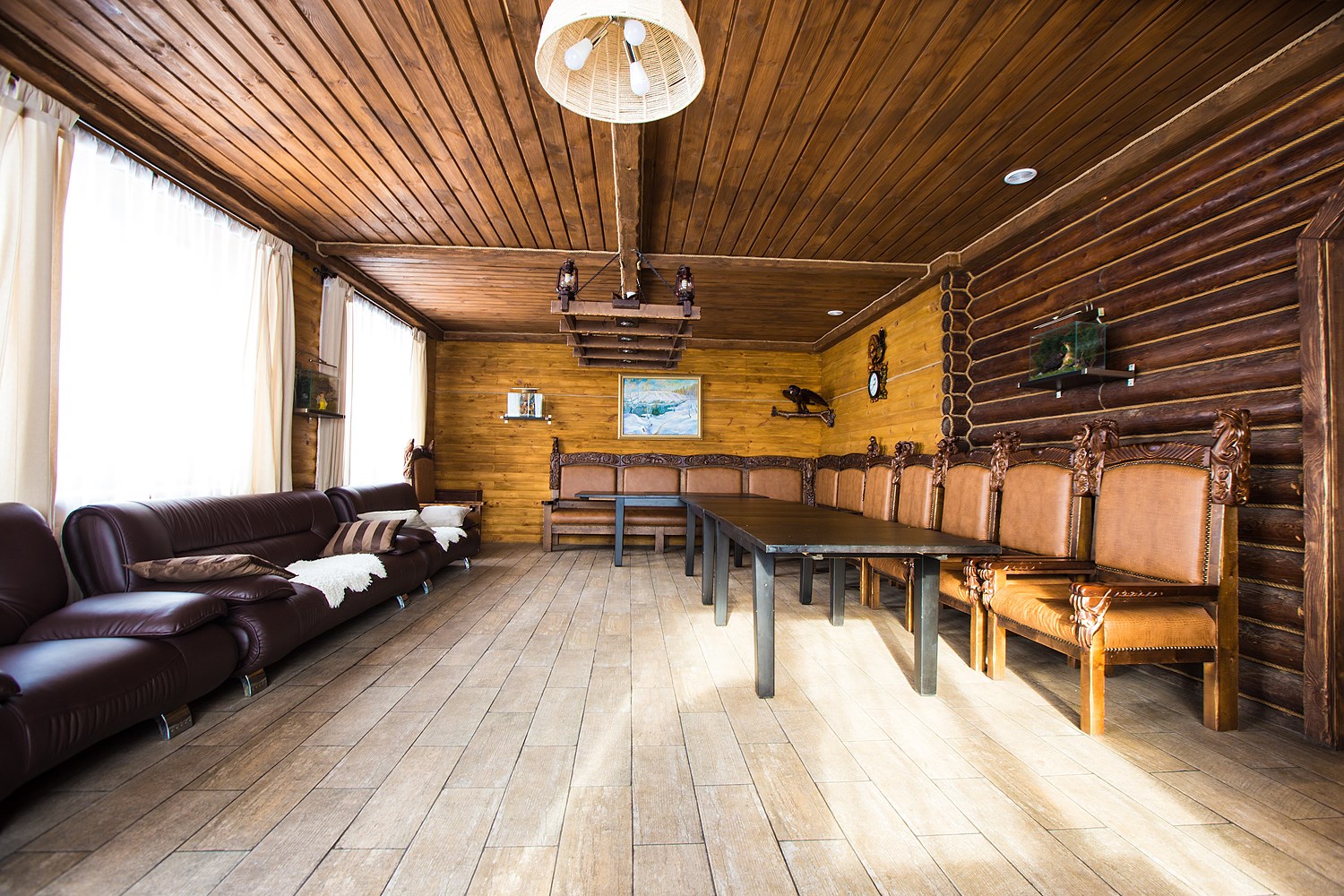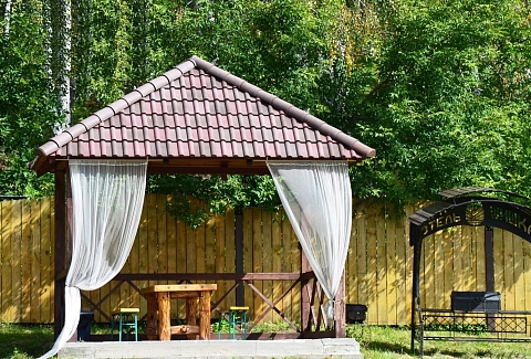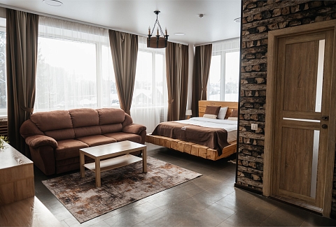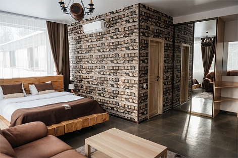 Для размещения гостей предусмотрена просторная парковая территория с продуманным ландшафтом. Для проживания предлагается 17 комфортабельных номеров, а также два отдельных коттеджа. В номерах - мягкая мебель, кондиционер, телефон, ЖК-телевизор, доступ к интернету. Спальни оформлены в спокойных теплых тонах, располагающих к отдыху. Санузлы оснащены душевыми кабинами или ванной, предоставляются средства гигиены. Коттеджи полностью оснащены для автономного проживания. В коттедже «Охотничий» — финская и турецкая парные, бассейн, просторная гостиная, кухня и мангальная зона. Интерьер выполнен в соответствующем названию стиле, создающем особую атмосферу. В коттедже «Финский» в распоряжении гостей будет русская парная на дровах, бассейн, гостиная с камином, кухня и мангальная зона с печью для барбекю. Ресторанный комплекс отеля представлен несколькими залами общей вместимостью до 300 человек. Панорамный зал на 80 посадочных мест выполнен в приятных пастельных оттенках, оснащен современной системой кондиционирования и имеет отдельный выход на террасу. В летнее время работает открытая веранда, где можно насладиться свежим воздухом и ароматом леса. Для деловых встреч и презентаций предусмотрен конференц-зал. На территории отеля работает сауна-терма с финской парной, гидромассажной ванной, лаунж-зоной, вертикальным солярием, музыкальным центром и телевизором. Гости также могут арендовать беседку и воспользоваться мангальными зонами для приготовления мяса. Для маленьких гостей оборудована детская игровая площадка. Для личного транспорта отдыхающих оборудована охраняемая парковка.