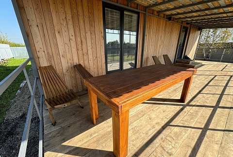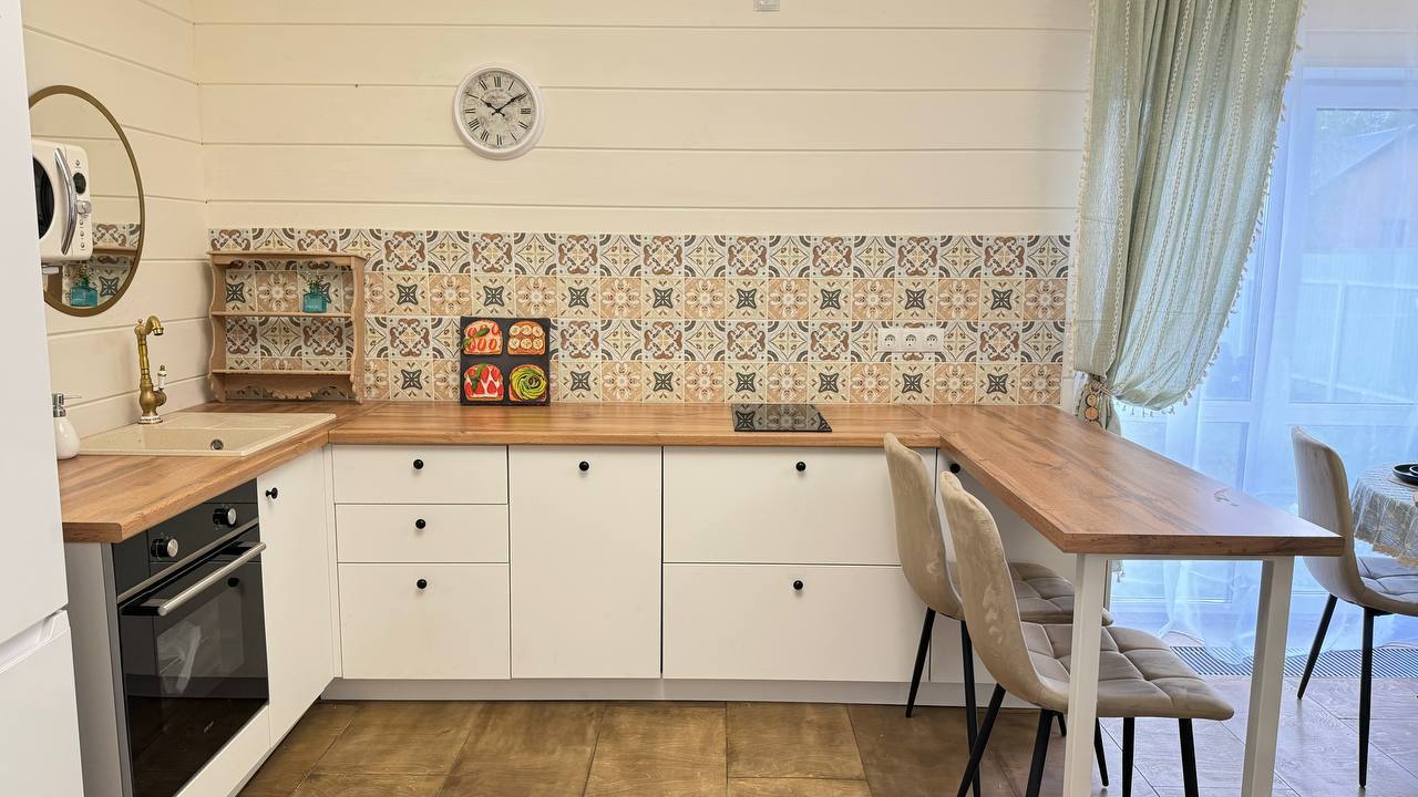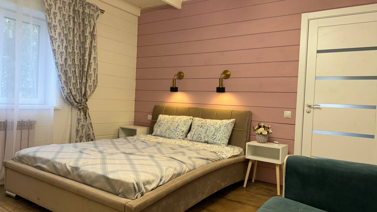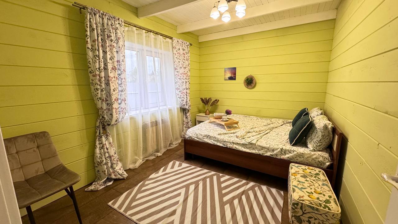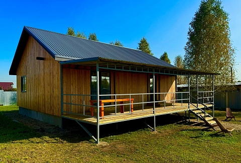 Одноэтажный коттедж с террасой разместился на благоустроенной закрытой территории площадью 10 соток. Четырехкомнатный дом полностью оснащен для комфортного отдыха и включает в себя три спальни и гостиную с кухней. В коттедже – уютные комнаты с современным ремонтом и теплым полом, гостиная с ЖК-телевизором и обеденной зоной, кухня с электроплитой, холодильником и посудой, совмещенный санузел с ванной и туалетными принадлежностями. В свободном доступе безлимитный интернет wi-fi. Коттедж оборудован террасой и мангальной зоной у дома. Принадлежности для барбекю, шампура и казан предоставляются. Также к услугам отдыхающих мини-парковка на территории, вмещающая до 5 автомобилей.