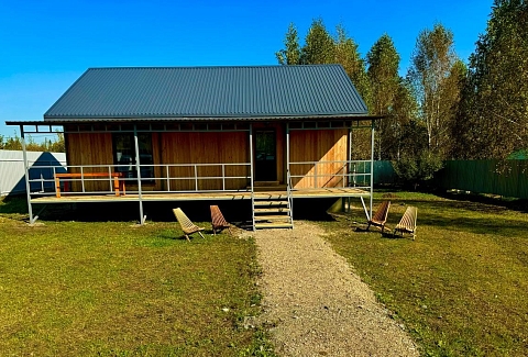 Самолетом до аэропорта Толмачево г. Новосибирска, далее на автобусе №111э до ж/д вокзала Новосибирск-Главный, далее пройти 300 м до станции метро «Площадь Гарина-Михайловского», далее на метро до станции «Берёзовая Роща», далее пройти 300 м до остановки «ПКиО Берёзовая Роща», далее на автобусе №203 до остановки «Поселковый совет», далее 1,5 км до коттеджа.