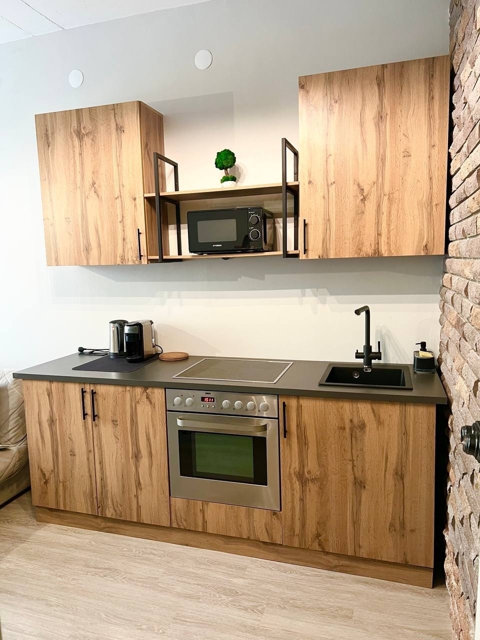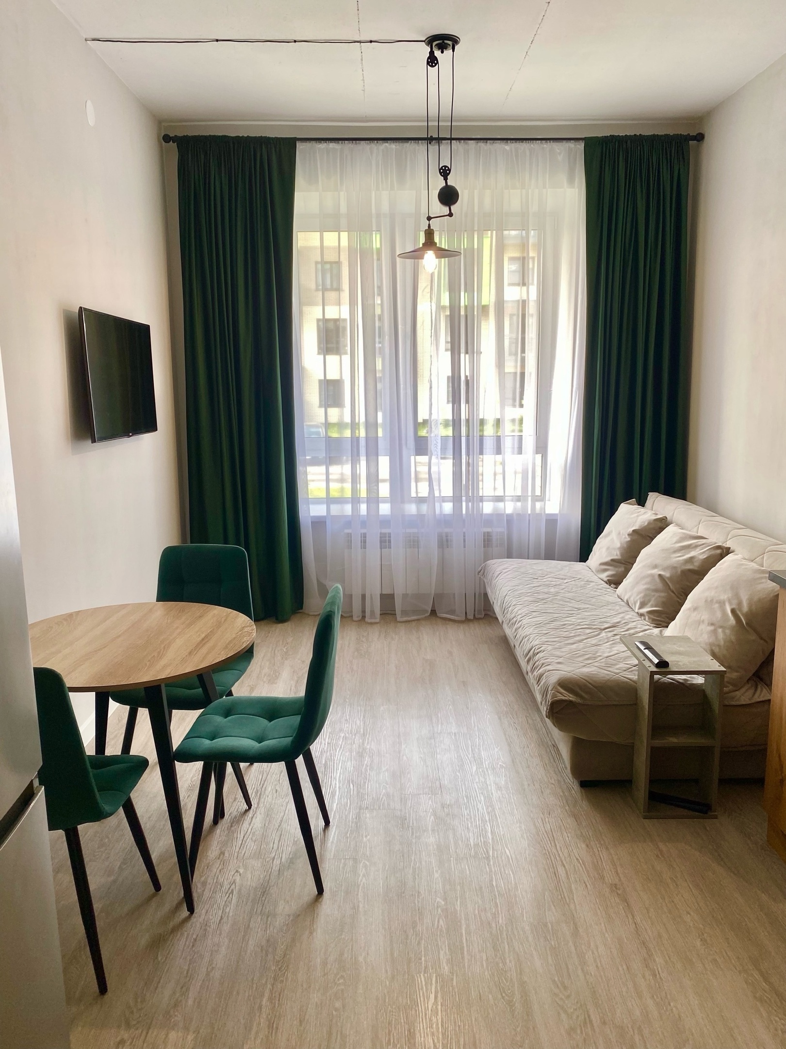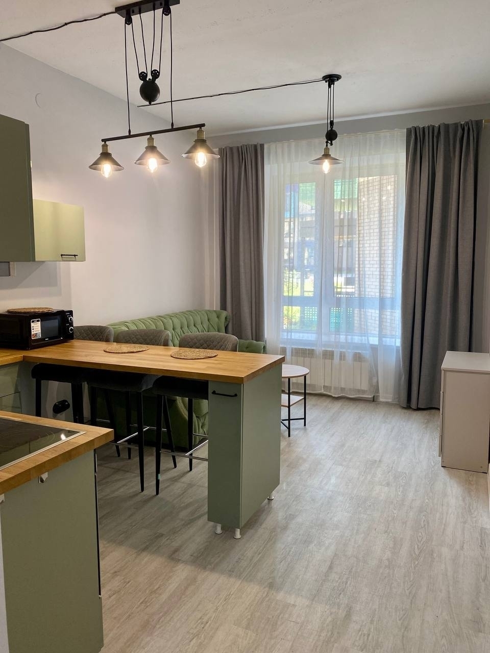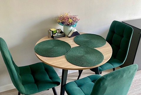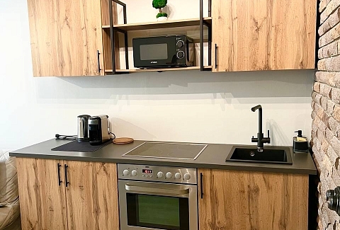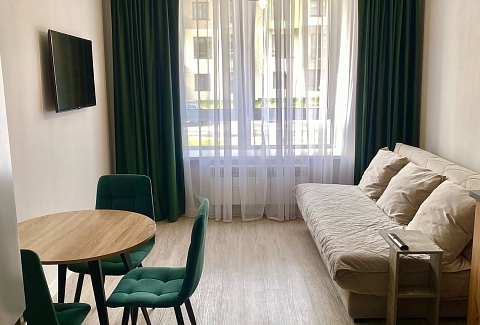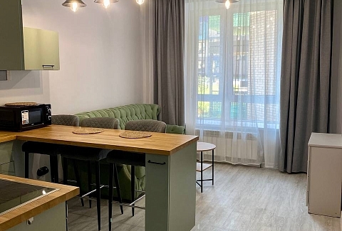 Гостям предлагаются две уютные студии, оформленные в стиле лофт и полностью оснащенные для комфортного проживания. В апартаментах установлено удобное спальное место в виде дивана-кровати с уникальной конструкцией раскладки. Уютная кухня укомплектована всей необходимой посудой и бытовой техникой: есть микроволновая печь, чайник, холодильник и кофемашина. Для досуга предусмотрен ЖК-телевизор с функцией Smart TV: можно с удовольствием провести вечер за просмотром любимых фильмов и сериалов. Высокая скорость Wi‑Fi обеспечит бесперебойный доступ в интернет. В ванной комнате гостей ждут фен, полотенца и предметы гигиены. Также в распоряжении постояльцев стиральная машина и гладильные принадлежности. Бойлер гарантирует бесперебойную подачу горячей воды в любое время. Тщательная уборка после каждого гостя обеспечивает безупречную чистоту и порядок, а запрет на курение и проведение шумных мероприятий создаёт спокойную атмосферу для полноценного отдыха.