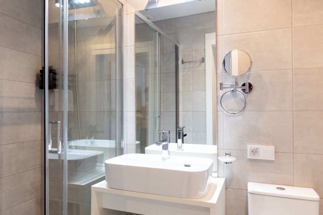Санузел: с душем, туалетные принадлежности, фен