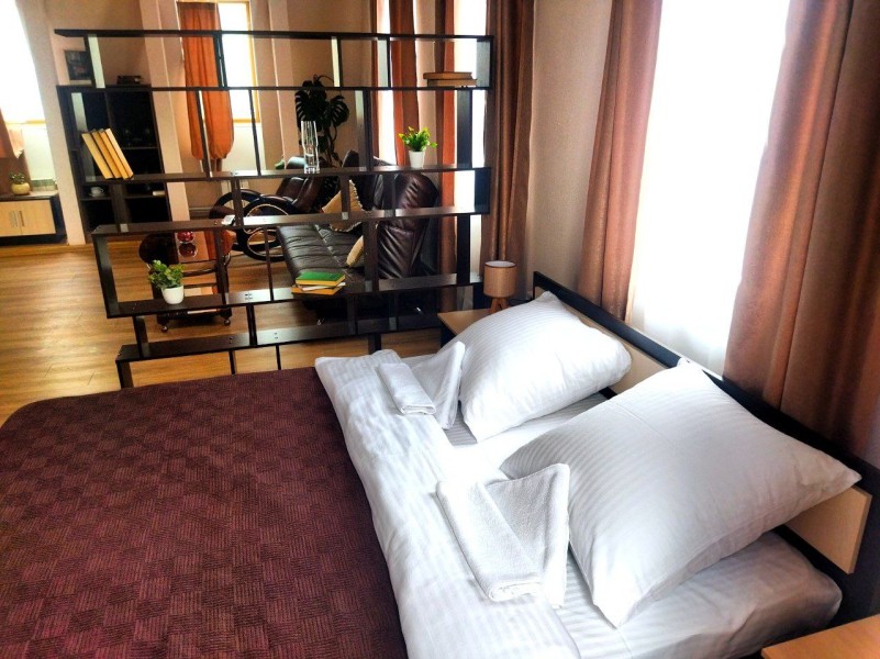 Расстояние до аэропорта составляет 95 километров. Добраться до железнодорожного вокзала можно за 7 минут прогулочным шагом. Номерной фонд разного уровня комфорта и вместимости расположился в 2-этажном здании. В комнатах выполнен современный ремонт в светлых оттенках, установлена удобная мебель для отдыха, есть места для хранения одежды. К услугам гостей телевизор с плоским экраном, вентилятор, электрический чайник, Wi-Fi. Санузел индивидуальный или общий на этаже, с душем, полотенцами, туалетными принадлежностями. Гости имеют возможность воспользоваться стиральной машиной. Для личного транспорта отдыхающих предусмотрена парковка.