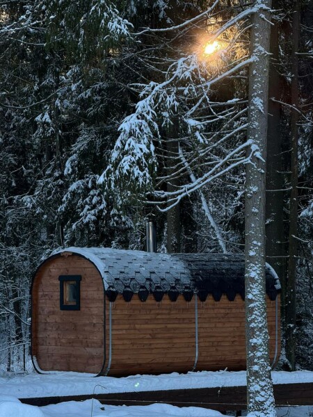 Кухня с любовью укомплектована всем необходимым — от белоснежного фарфора до ароматных специй, чая и кофе. Даже в самые холодные вечера дом сохраняет нежное тепло благодаря подогреву пола, даря ощущение надежного укрытия.Вечерами здесь особенно хорошо: можно растопить мангал, приготовленный специально для гостей, и слушать, как потрескивают дрова. А для тех, кто хочет смыть усталость последней рабочей недели, на территории ждет настоящая русская баня — та, что топится по-настоящему, жаром и углями, даря ни с чем не сравнимое чувство обновления. Шум мегаполиса здесь сменяется звонкой тишиной, и именно ради таких минут хочется уезжать за город.