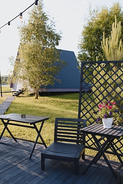 Для того чтобы насладиться природой, не установили в домиках телевизоры, но отлично работает Wi-Fi. Кондиционер, который расположен в гостиной, работает как на охлаждение, так и на обогрев. Алиса умеет включать и выключать теплый пол, установлены обогреватели.У каждого домика есть мангал и решетки и шампура могут быть, но необходимо покупать свои, так как не всем нравятся ранее использованные решетку, пусть даже почищенные. Дрова, угли и розжиг можно приобрести у администратора, но очень просим заранее уточнить о наличии.Есть индивидуальные предметы в каждом домике.В Провансе - кофемашина с капучинатором, а в Звездном небе - телескоп.Около двух домов есть подогреваемые купели, доступны для бронирования при выборе домика Прованс или Рейкьявик.Одна топка рассчитана на 4 часа комфортного плавания, заказать купель нужно заранее.Вода после каждого гостя сливается, купель проходит обработку.