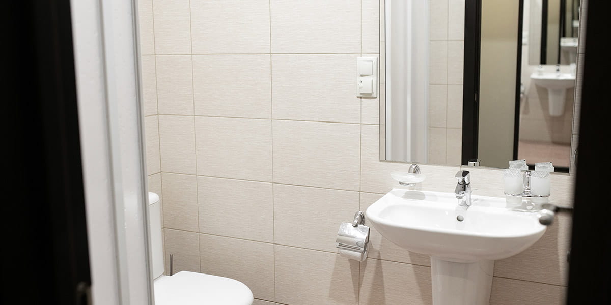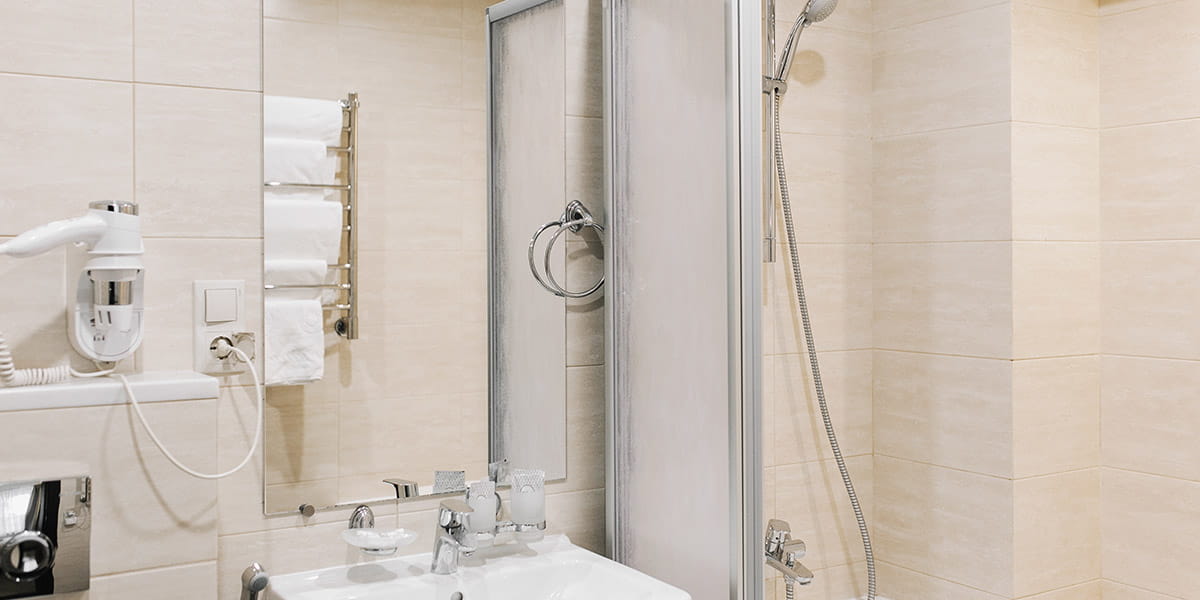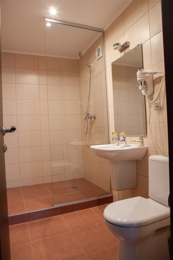 Санузел: с душем, туалетные принадлежности, фен