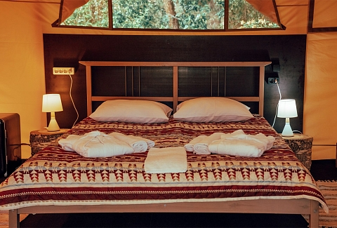 Жилой фон рассчитан на 200 человек и предлагает отдыхающим одноместные и двухместные Стандарты, двухместные номера Полулюксы и Люксы. Каждый номер оборудован санузлом с ванной или душем, оснащен телевизором и мини-холодильником.В парк-отеле работает ресторан, организована барбекю-зона с мангалами. В распоряжении гостей спа с баней и сауной, желающие могут сплавиться на каяках. Актер-Руза отлично подходит и для проведения деловых мероприятий — в отеле есть оснащенный конференц-зал на 100 приглашенных. Кроме того, на всей территории доступен беспроводной интернет, для автовладельцев оборудована парковка.