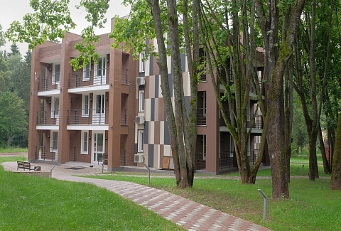 Самолетом до аэропорта Внуково г. Москвы, далее на аэроэкспрессе до Киевского вокзала, далее на метро от ст. Киевская до ст. Славянский бульвар, далее электричкой до ст. Тучково, далее пересесть на автобус №21 (26/21, 455, 62/21) до остановки Санаторная, далее пройти до 1,3 км до отеля.