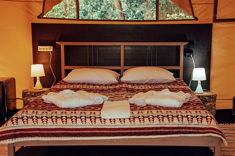 В номере: вешалка, зеркало, кровати односпальные /одна двуспальная кровать, прикроватные тумбочки, стол, стул, шкаф, кондиционер, мини-холодильник, сейф, телевизор, телефон, чайная станция, чайный набор посуды