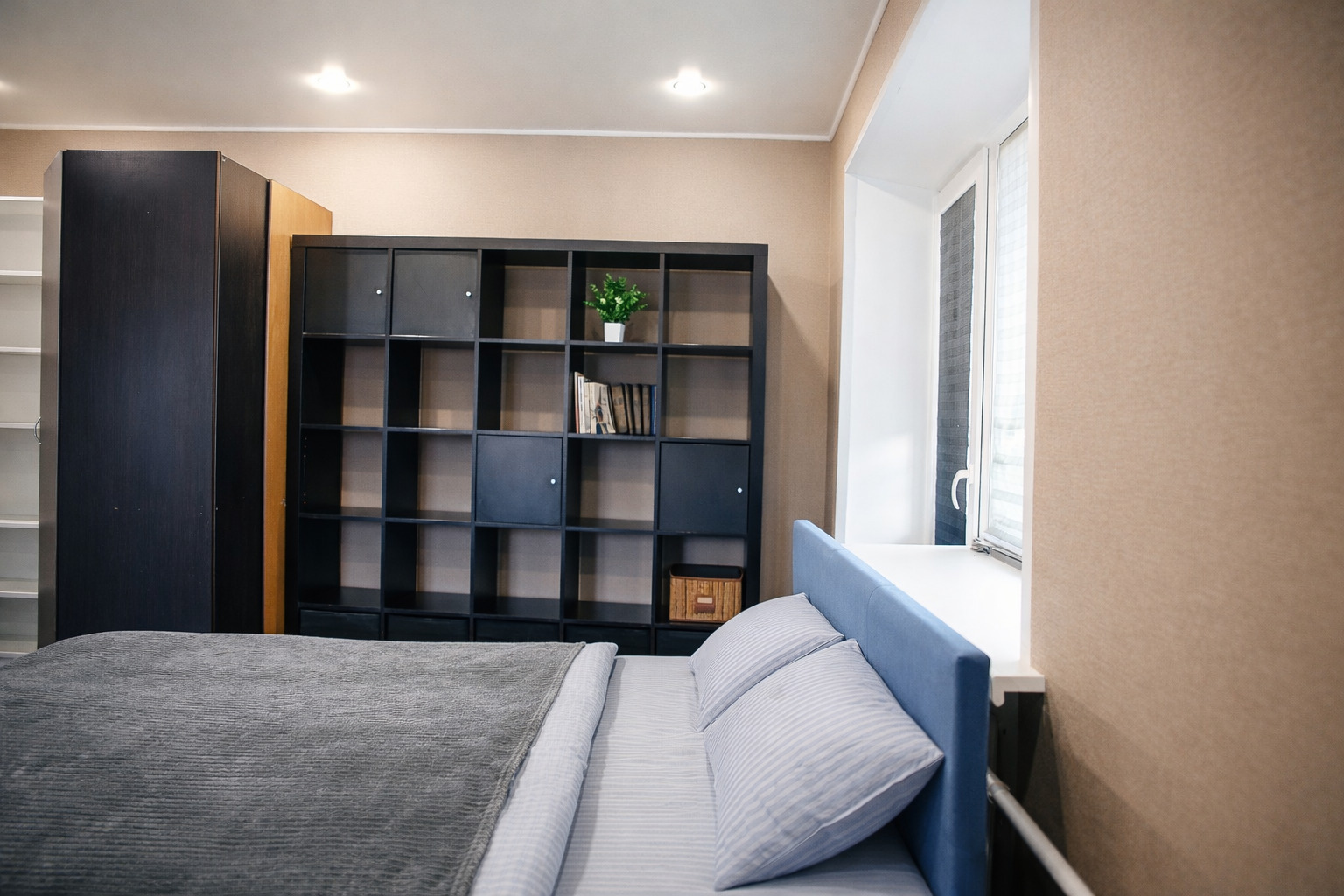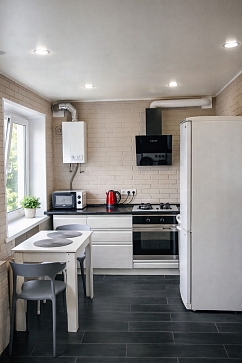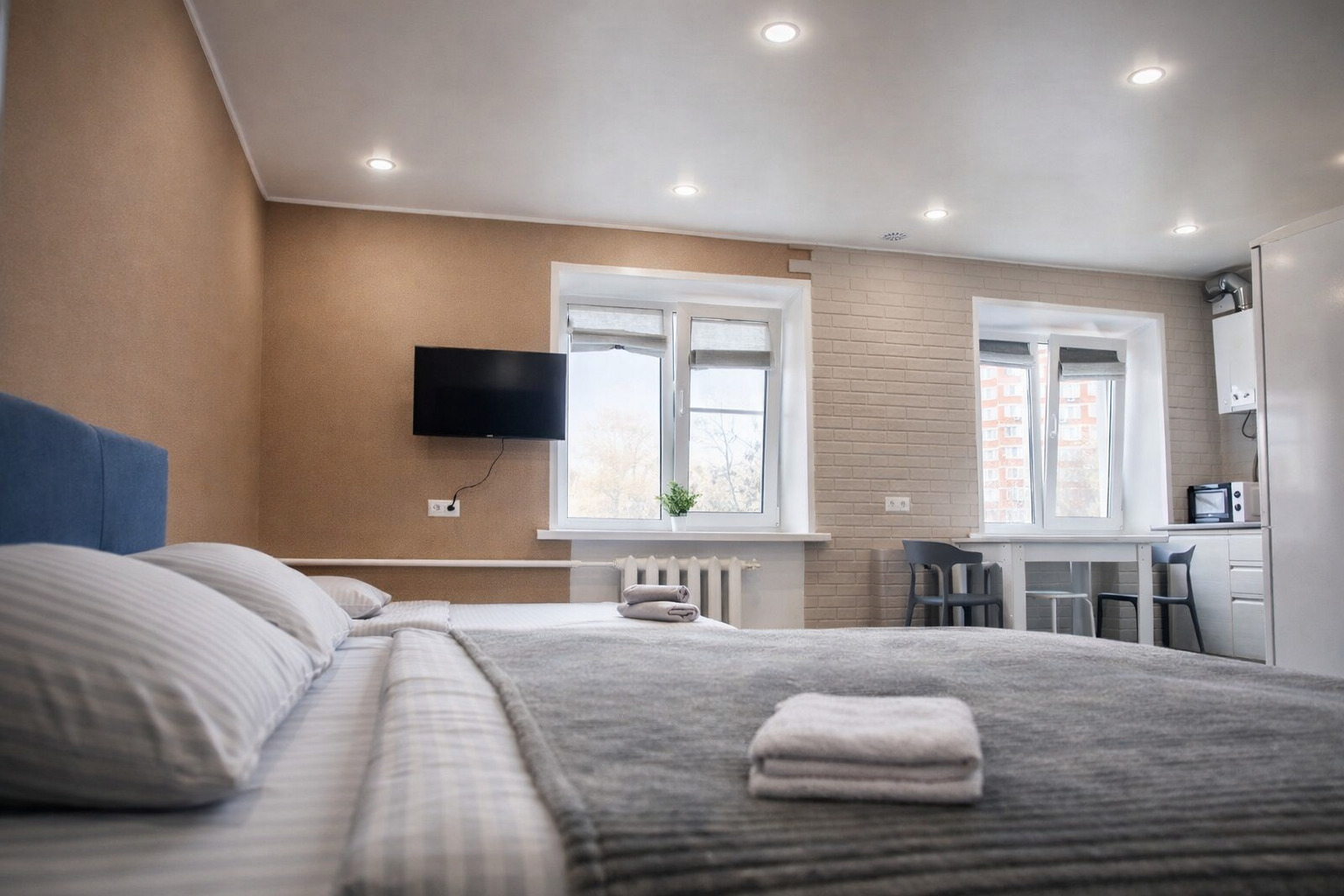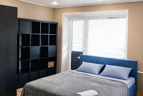 Всё необходимое для повседневной жизни и досуга — под рукой.Пространство продумано для комфортного размещения трёх-четырёх гостей. В распоряжении — двуспальная кровать и раскладной диван, обеспечивающие два раздельных спальных места. Кухня полностью оснащена: холодильник, плита, микроволновая печь, духовой шкаф, чайник и полный набор посуды. Для гостей приготовлены чай, кофе и сахар. В совмещённом санузле — душевая кабина, стиральная машина, фен и средства гигиены. В апартаментах есть открытый балкон, телевизор со Smart TV, онлайн‑кинотеатр и бесплатный Wi‑Fi.Это пространство создано для тех, кто ценит спокойствие, удобство и продуманные детали. Здесь одинаково комфортно останавливаться на время командировки, короткого отдыха или более длительного пребывания.