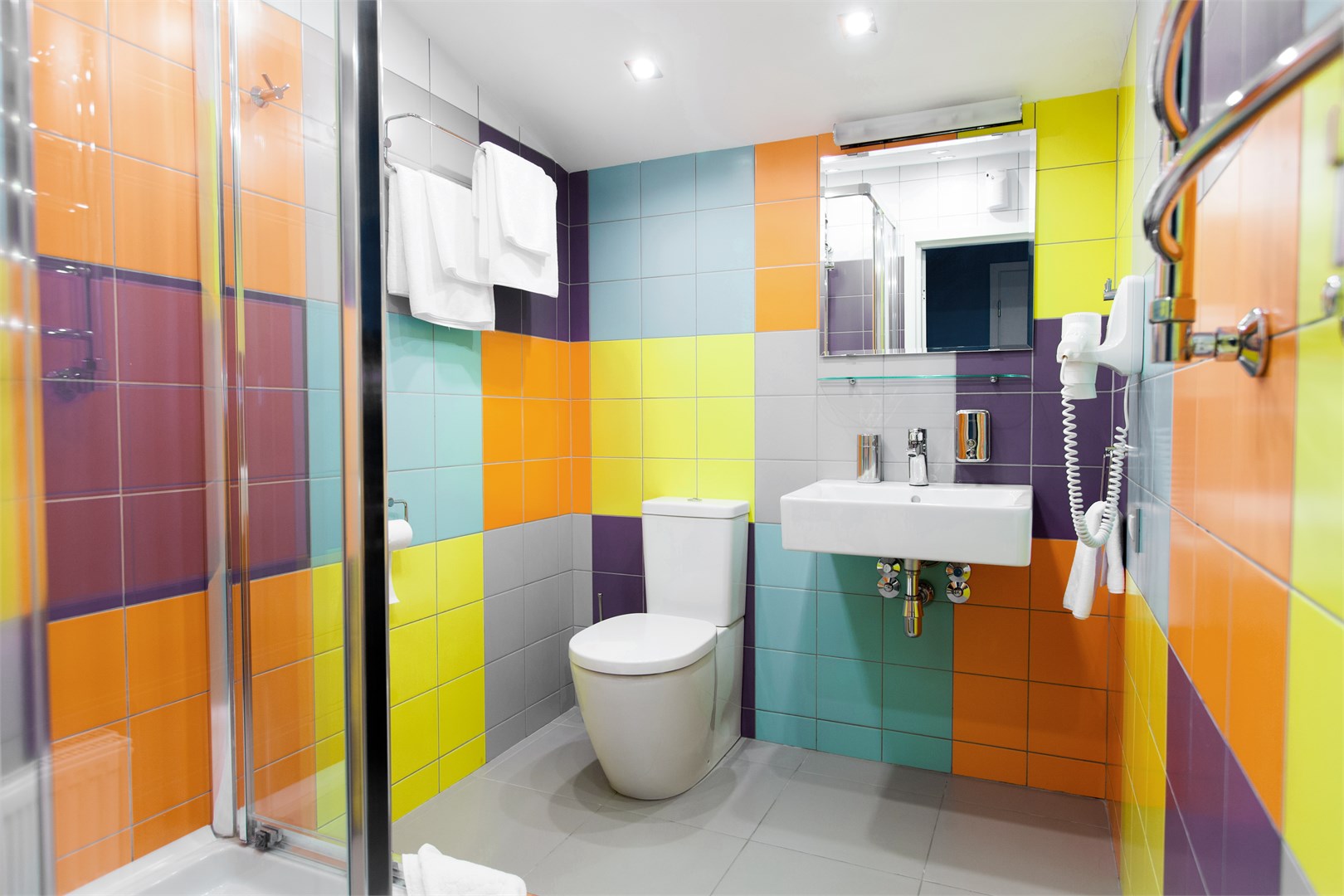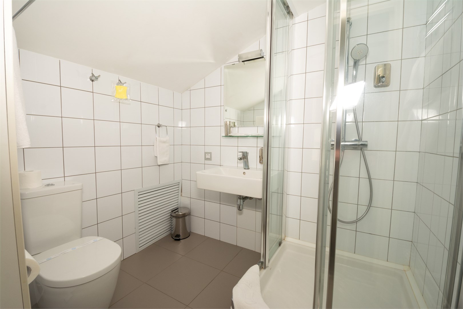 Санузел: с душем, туалетные принадлежности, фен
