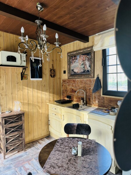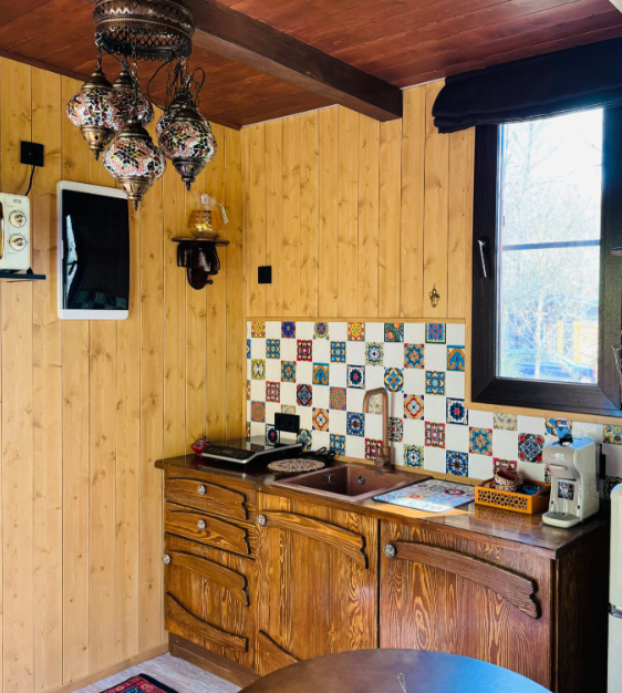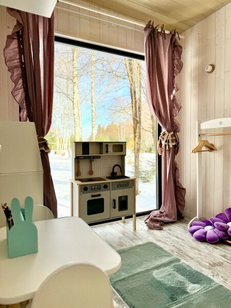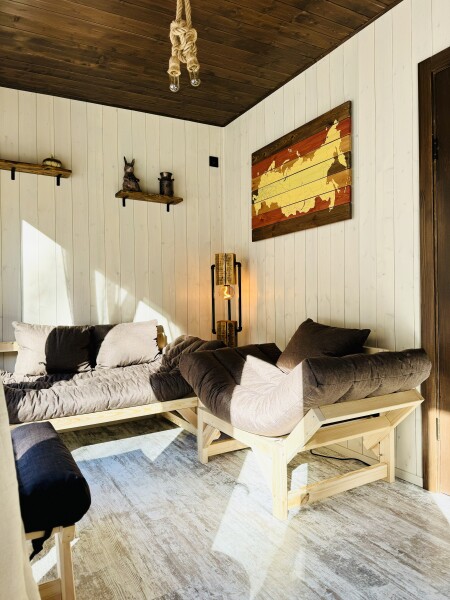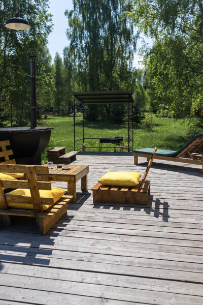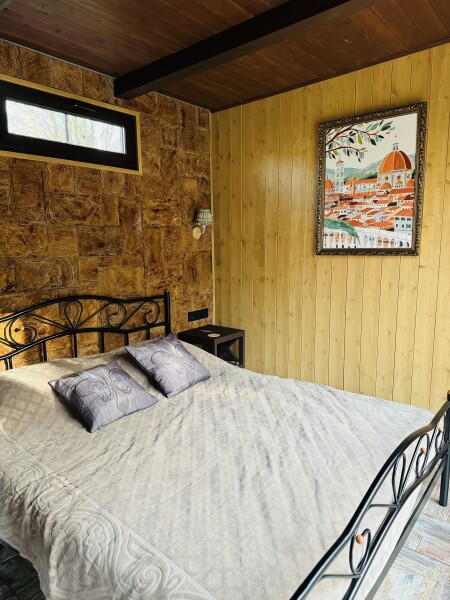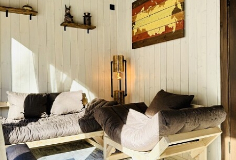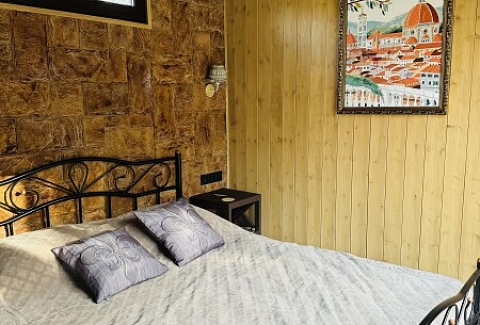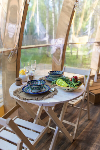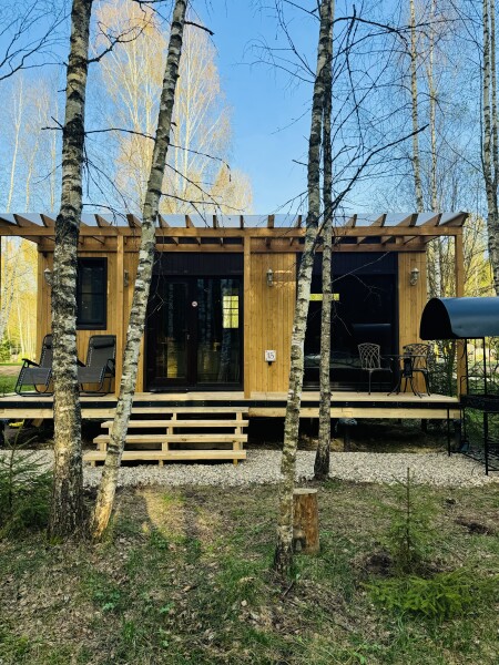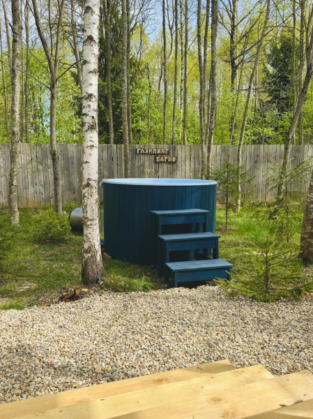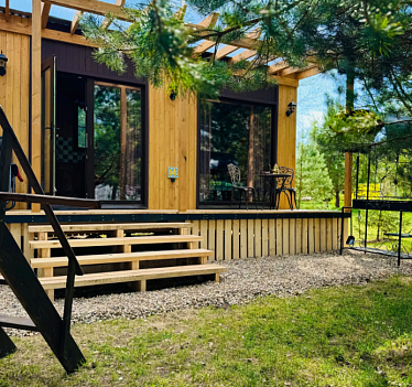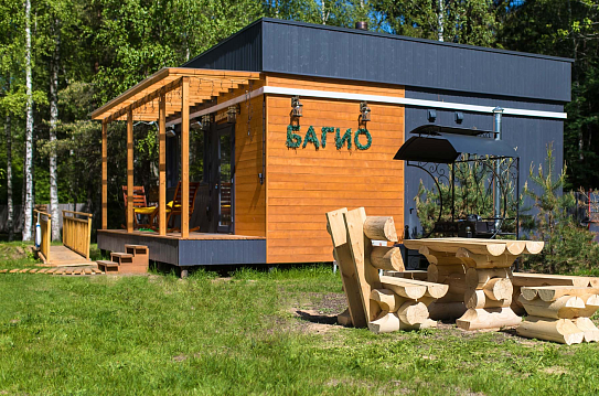 В номерах есть: кухня со всей необходимой техникой и посудой, кофемашина + капсулы, чай, фен, полотенце, постельное бельё, косметика для душа, большая терраса с мангальной зоной, шезлонг. Для маленьких детей предоставляется кровать-манеж. Из каждого панорамного окна открывается изумительный вид на лес, которым можно любоваться на террасе или прямо из кровати. Утро в «Багио» начинается с чашечки ароматного кофе под пение птиц, а вечером можно наблюдать за звездным небом.На территории также расположена русская баня на дровах, уютные зоны отдыха, пруд и бассейн. Для любителей активного образа жизни предусмотрена спортивная площадка с брусьями и скамьей для пресса, теннисный стол, волейбольная площадка. Также гости смогут покататься на велосипедах или взять в аренду сапы. А еще есть бадминтон, фрисби, футбольный мяч и дартс.