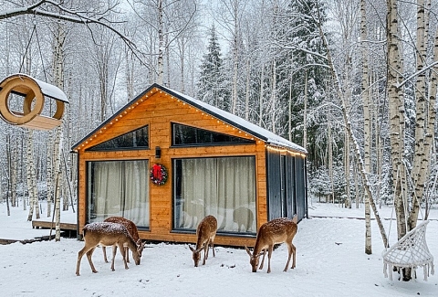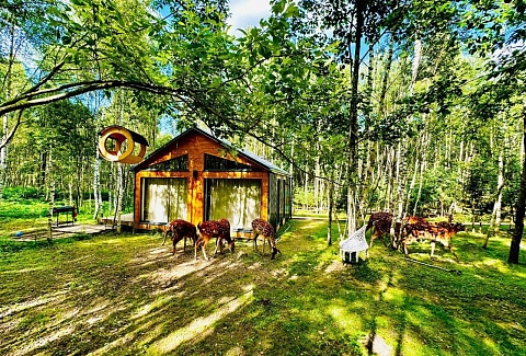 В тихом уголке Волоколамского района, среди подмосковных лесов, притаилась особая территория покоя и общения с природой. «Бэмби Лэнд» — это больше, чем просто база отдыха, это настоящая оленья ферма, где гости могут отстраниться от городской суеты. Небольшие уютные домики гармонично вписываются в пейзаж СНТ «Тихая Горка», создавая ощущение уединённого убежища.Здесь проживание в комфортабельном номере становится лишь началом путешествия.