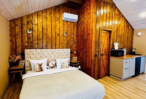 Утро можно начать с прогулки по территории эко-фермы, где в естественных условиях живут ручные животные, а день посвятить активному отдыху на свежем воздухе. Для гостей доступны велосипеды и сапборды в тёплый сезон, а зимой мир замирает под белым покрывалом, открывая возможности для катания на снегоходах. После дня впечатлений особенно приятно погрузиться в расслабляющую атмосферу собственного банного комплекса с традиционной парной и банным чаном.На территории работает уютное кафе, где готовят простые и вкусные блюда. Для семей с детьми здесь создана особая атмосфера: малыши могут безопасно играть на специальной площадке, знакомиться с доброжелательными обитателями фермы или отправиться на прогулку на лошадках. Тем, кто ищет адреналина, предлагаются маршруты на квадроциклах, а ценителям тишины — рыбалка в окрестных водоёмах. Для создания памятных моментов можно заказать фотосессию с животными или организовать особое мероприятие на лоне природы. Гостевой опыт дополняют детали: охраняемый паркинг и доступ в интернет, позволяющий при необходимости оставаться на связи, не нарушая при этом общую гармонию этого спокойного места.